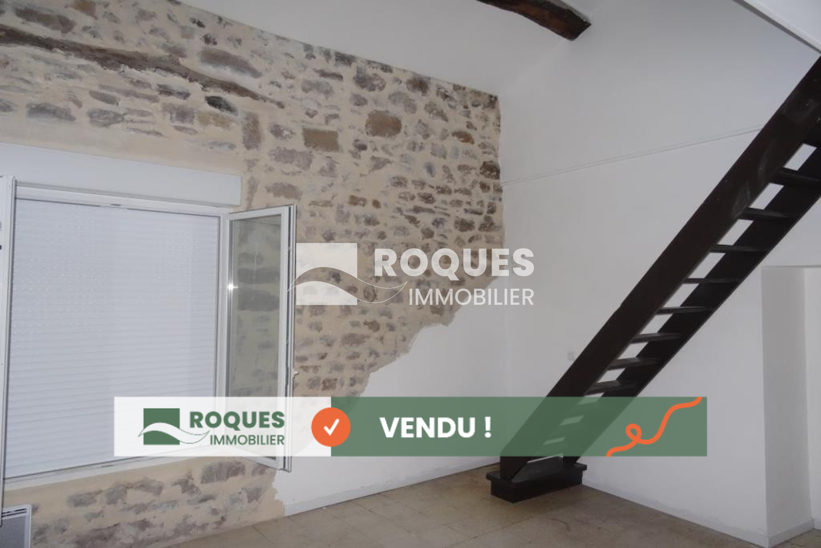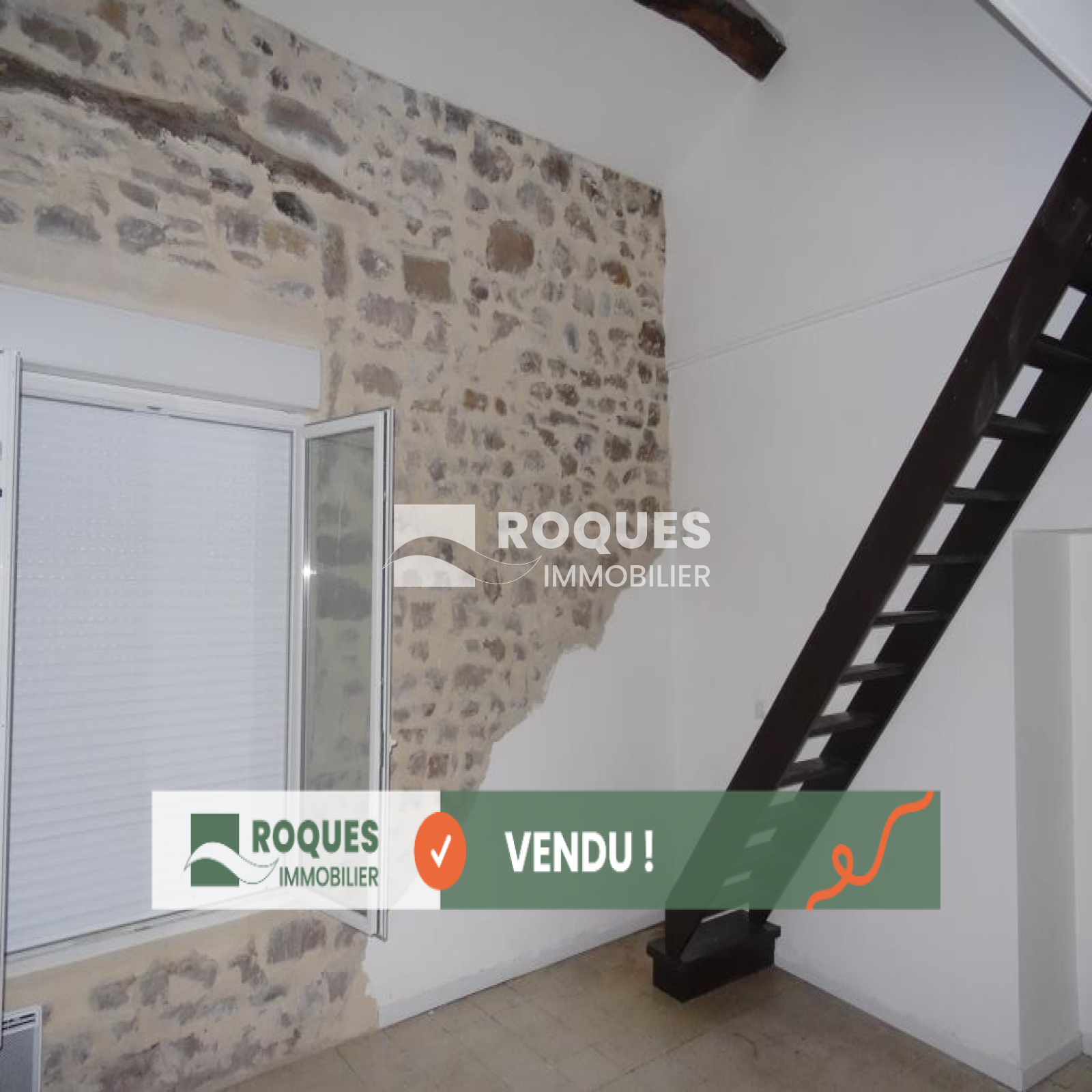 Proche Lunas dans hameau, maison de village de type 2 plus mezzanine, 50 m² habitables, bon état général et comprenant :