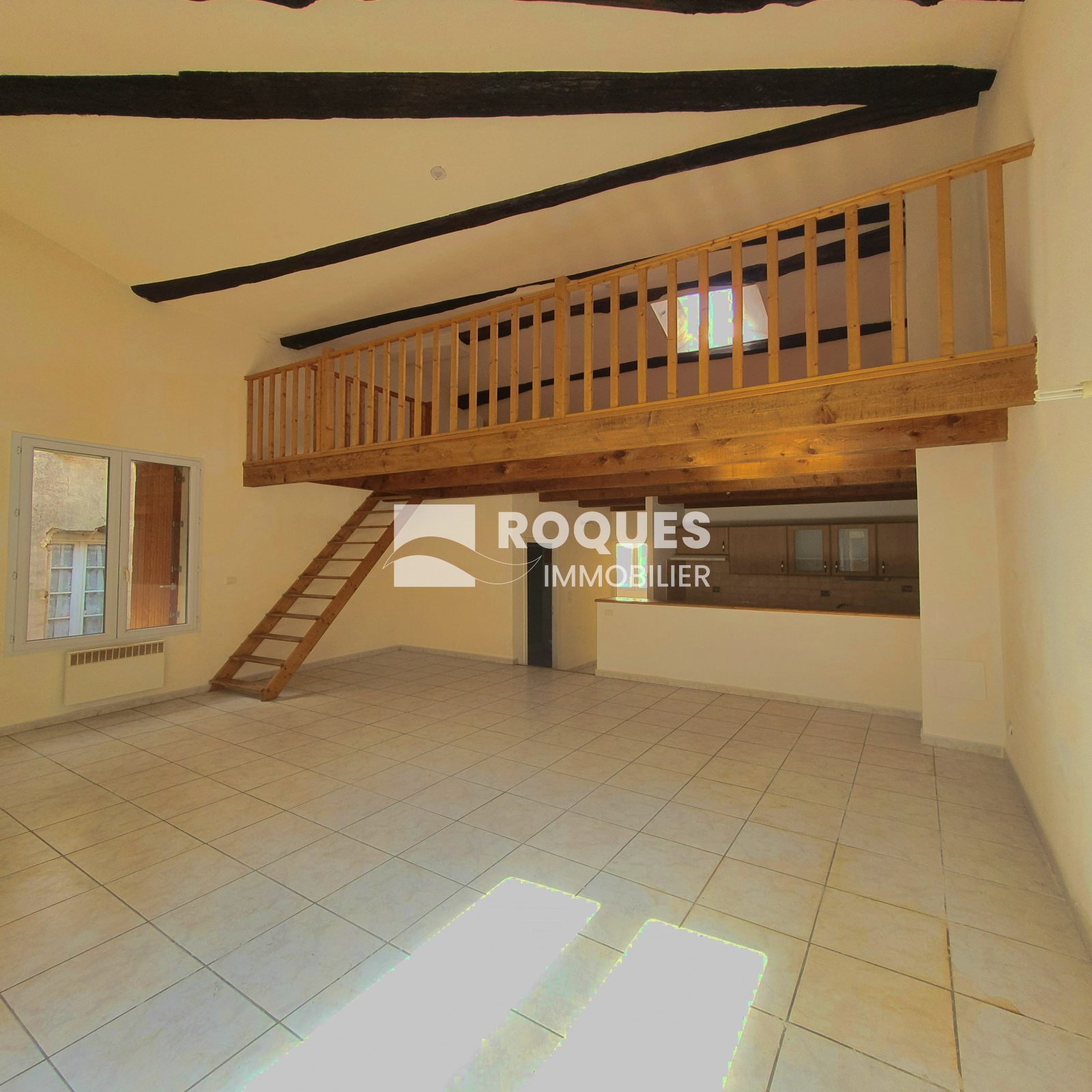 L'appartement est composé d'un coin cuisine/séjour + une mezzanine (chambre d'appoint), une chambre, salle de bains + wc