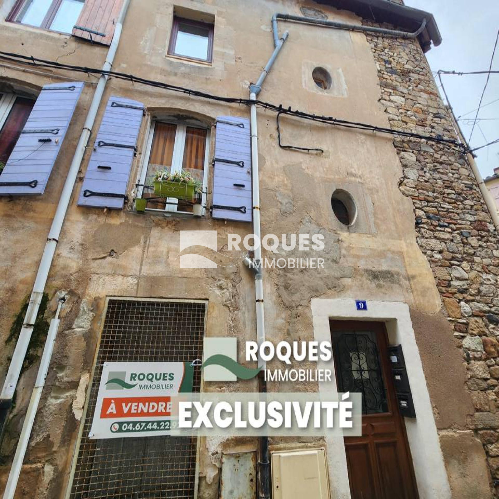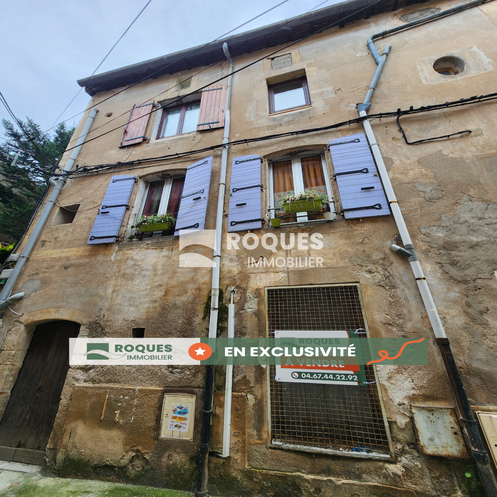 Lodève centre ville, immeuble, R+3, d'une surface totale de 104.53 m² habitables composé de trois appartements et cave comprenant :