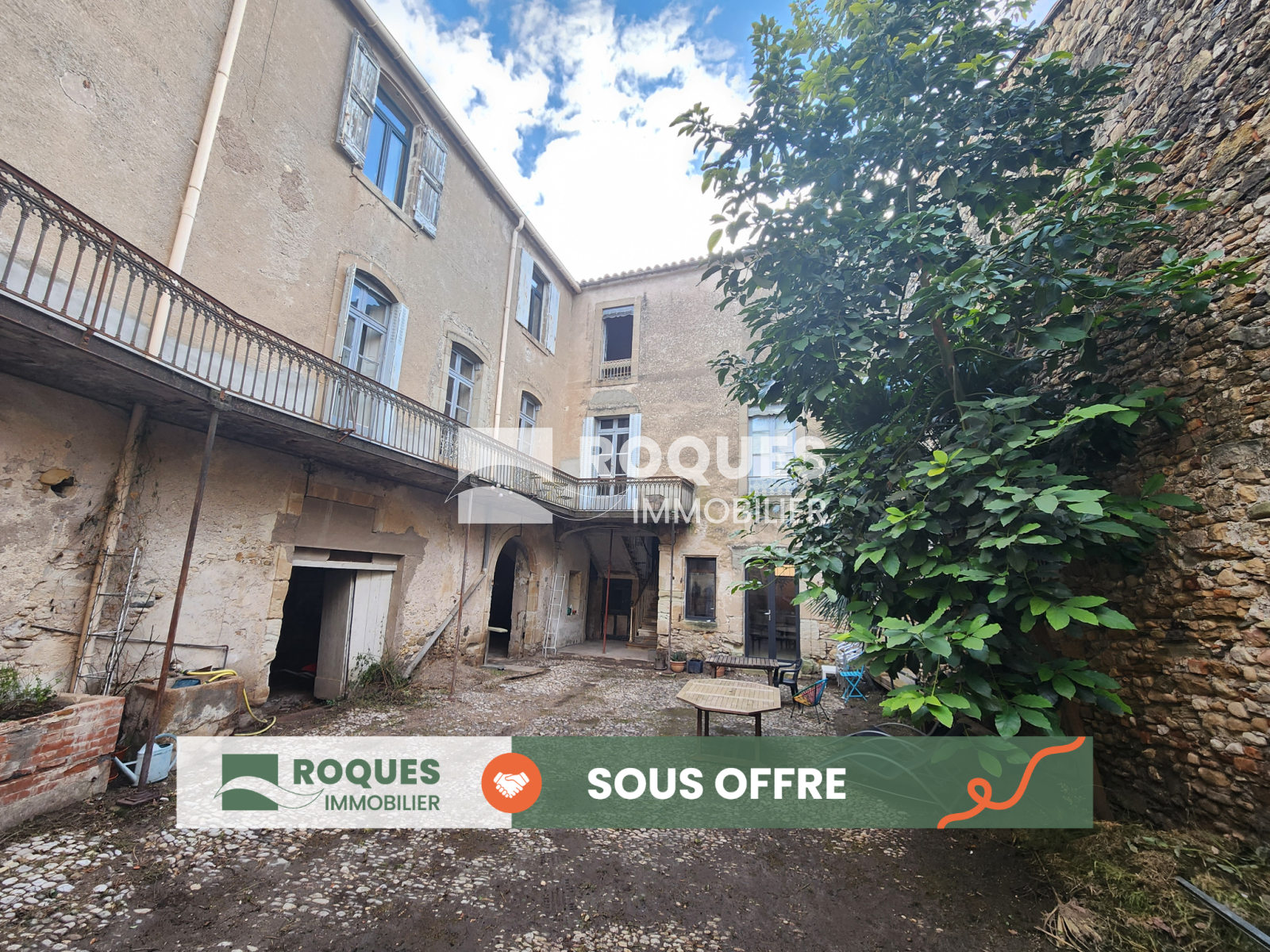 Lodève centre, immeuble de caractére, R+2, 379 m² de surface utile plus cour fermée de 116 m², en partie à rénover, et comprenant :