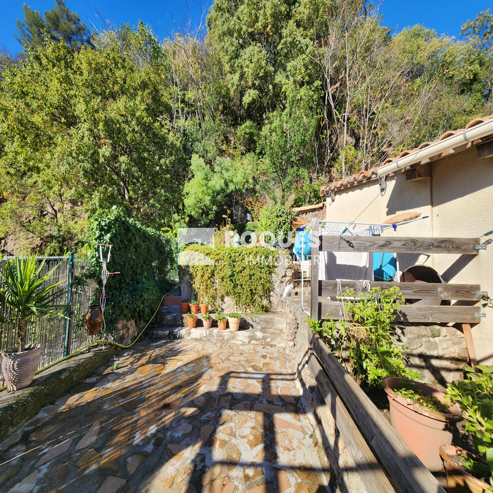 2 ème étage : 1 appartement T3 de 60 m² avec terrasse de 16 m² et jardinet abri, loué 450€/mois