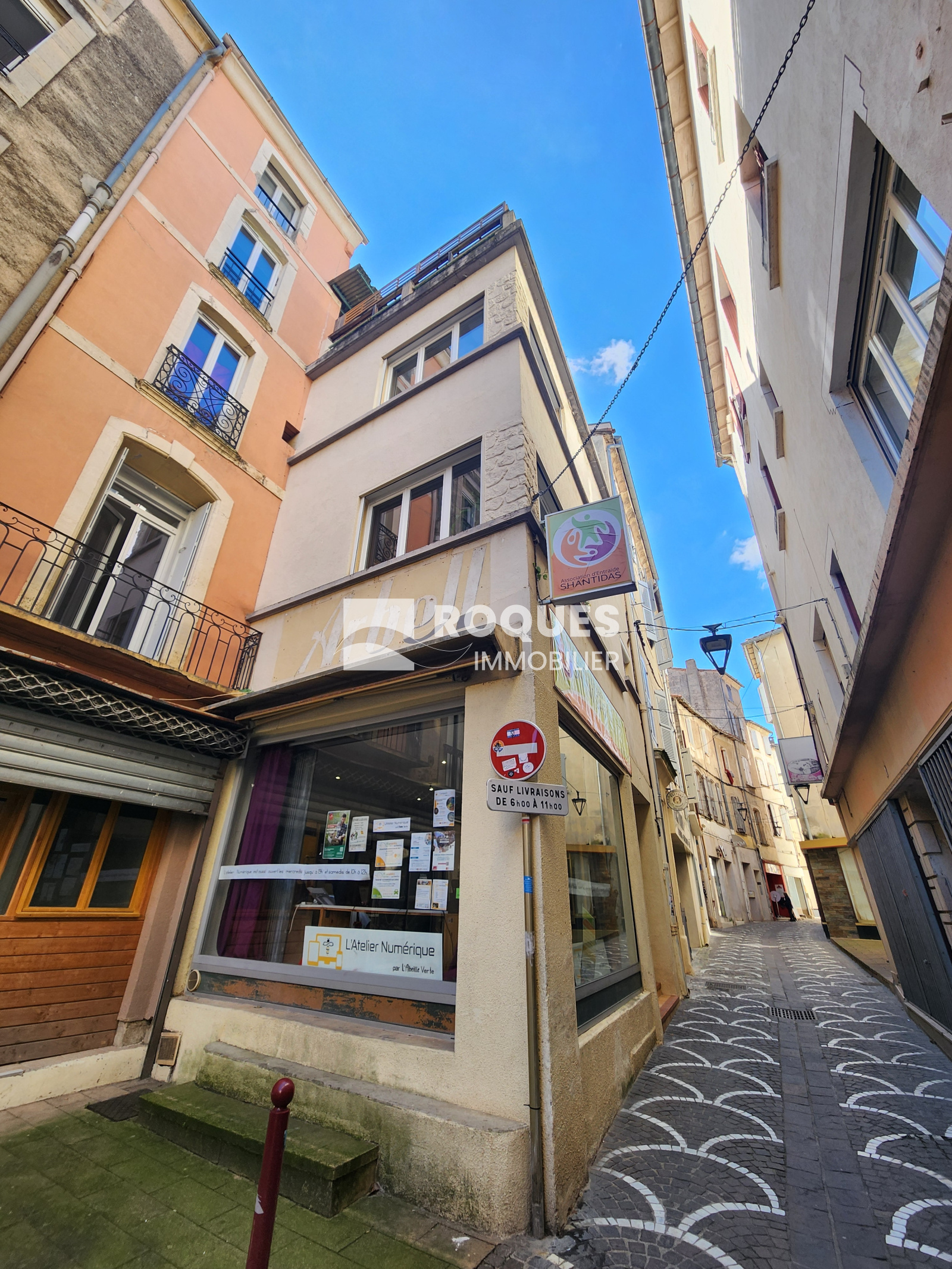 Idéalement situé au centre ville de Lodève, immeuble d’habitation élevée de trois étages sur rez-de chaussée comprenant :
