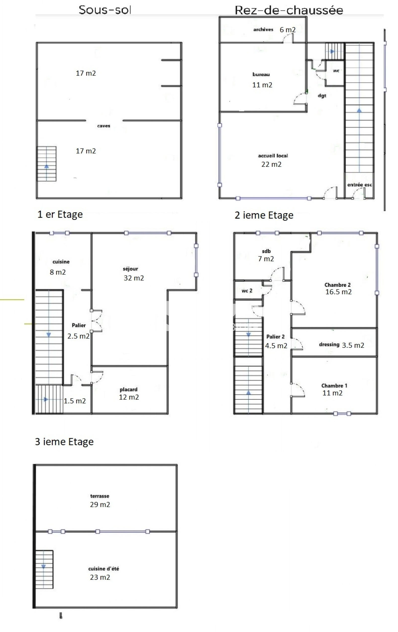 Sous sol : Deux caves de 17.61 m² et 17.14 m².