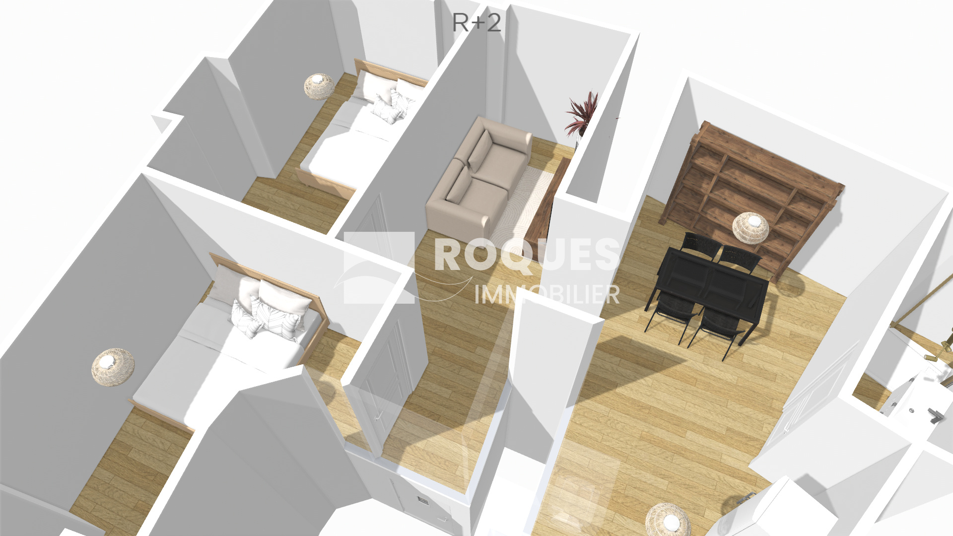- Ensemble élevé de trois étages sur rez-de-chaussée avec grenier comprenant : Un appartement au premier étage, 3 pièces de 57 m² et un appartement au deuxième étage, 3 pièces de 58 m².