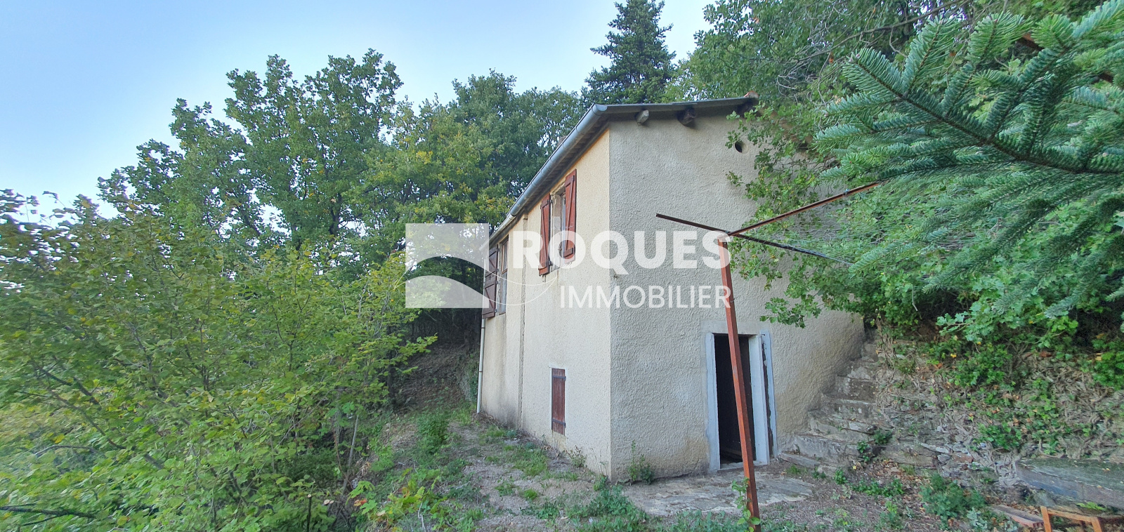 Lodève, dans un environnement isolé, petit mazet de 31 m² utile, sur 7498 m² de terrain en étagères, boisé, non constructible et peu exploitable comprenant :
