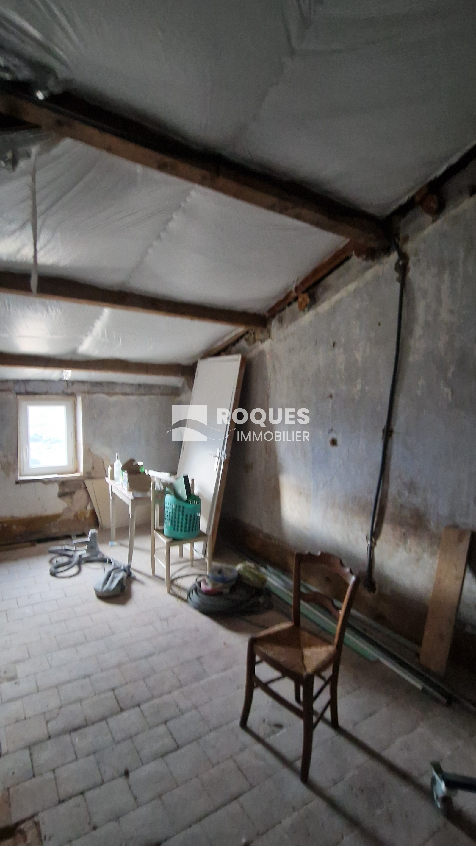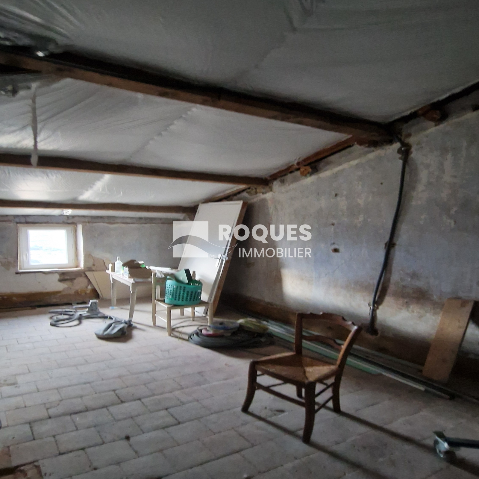 1e étage (Niveau N+1) : grenier aménageable de 95 m², salle de bains de 9 m²