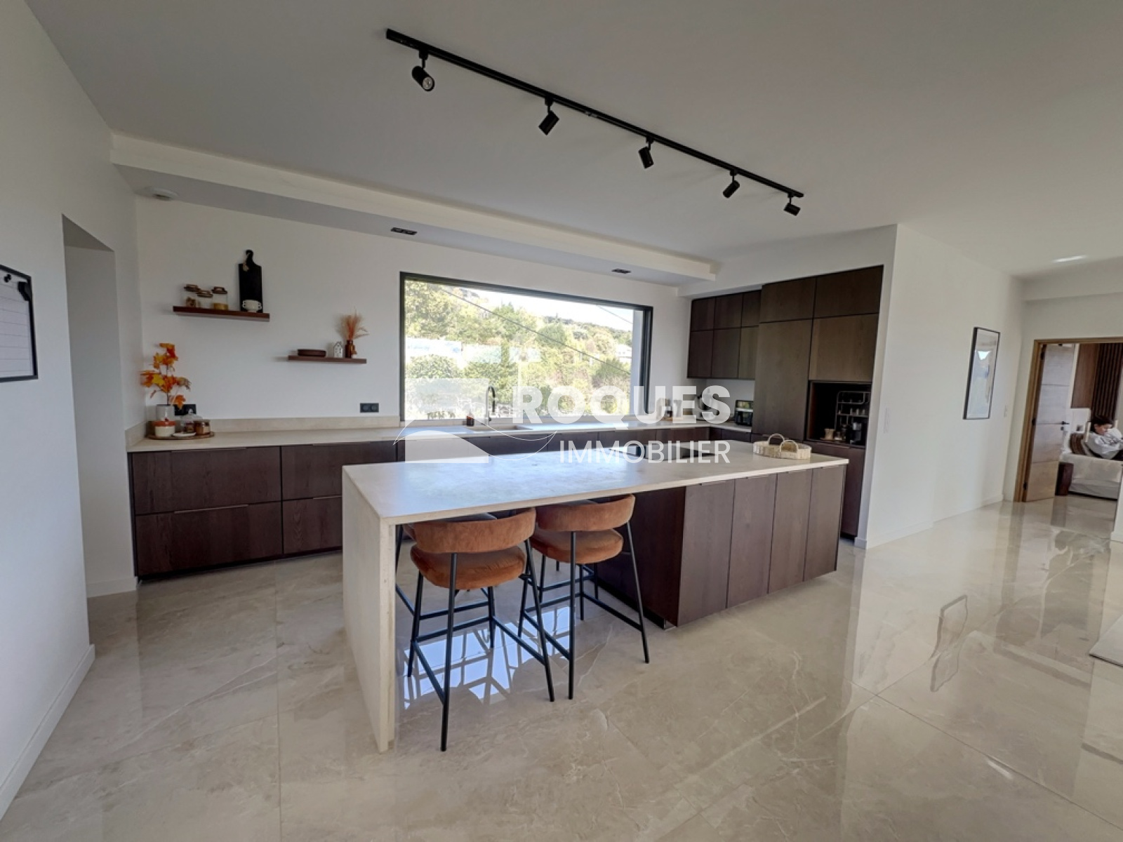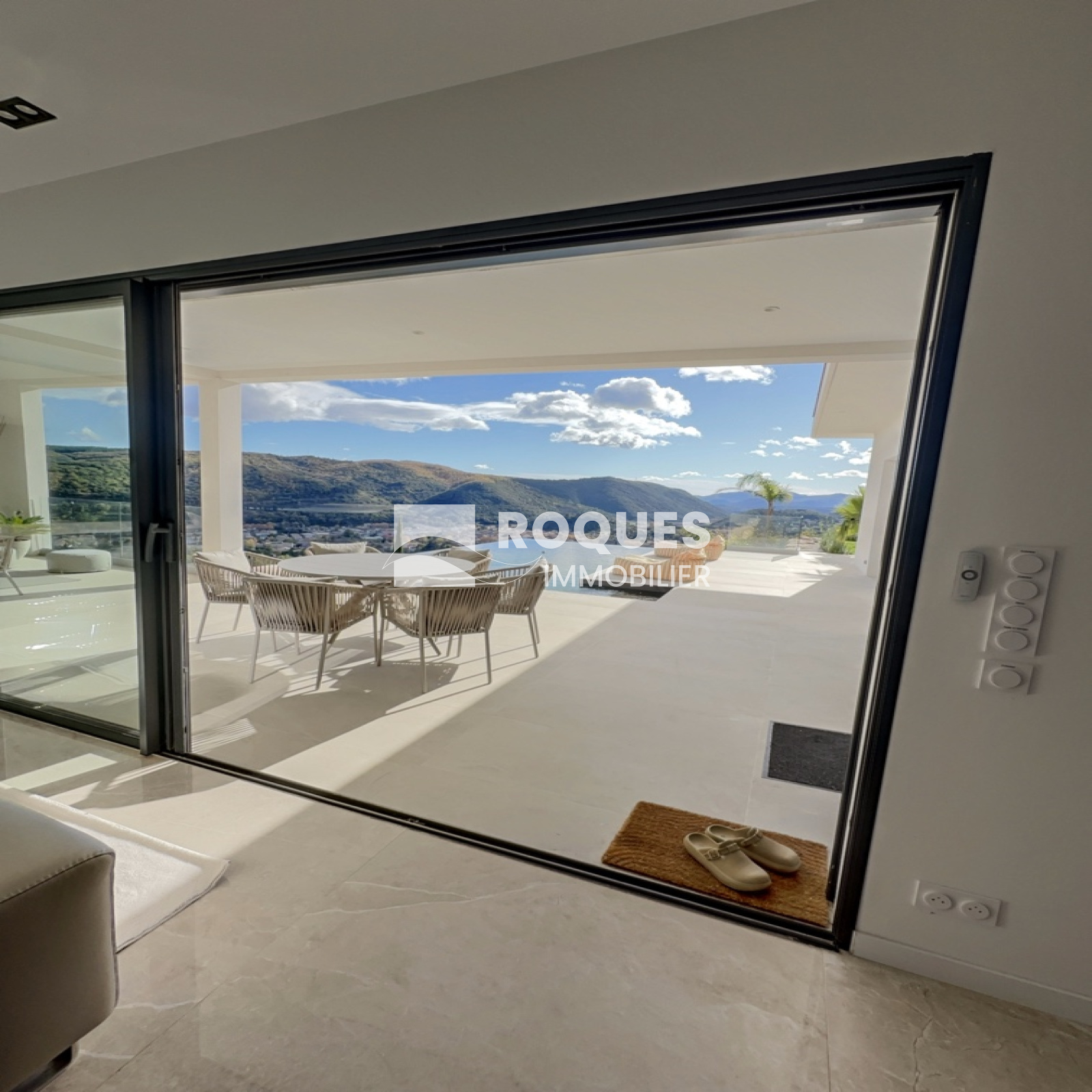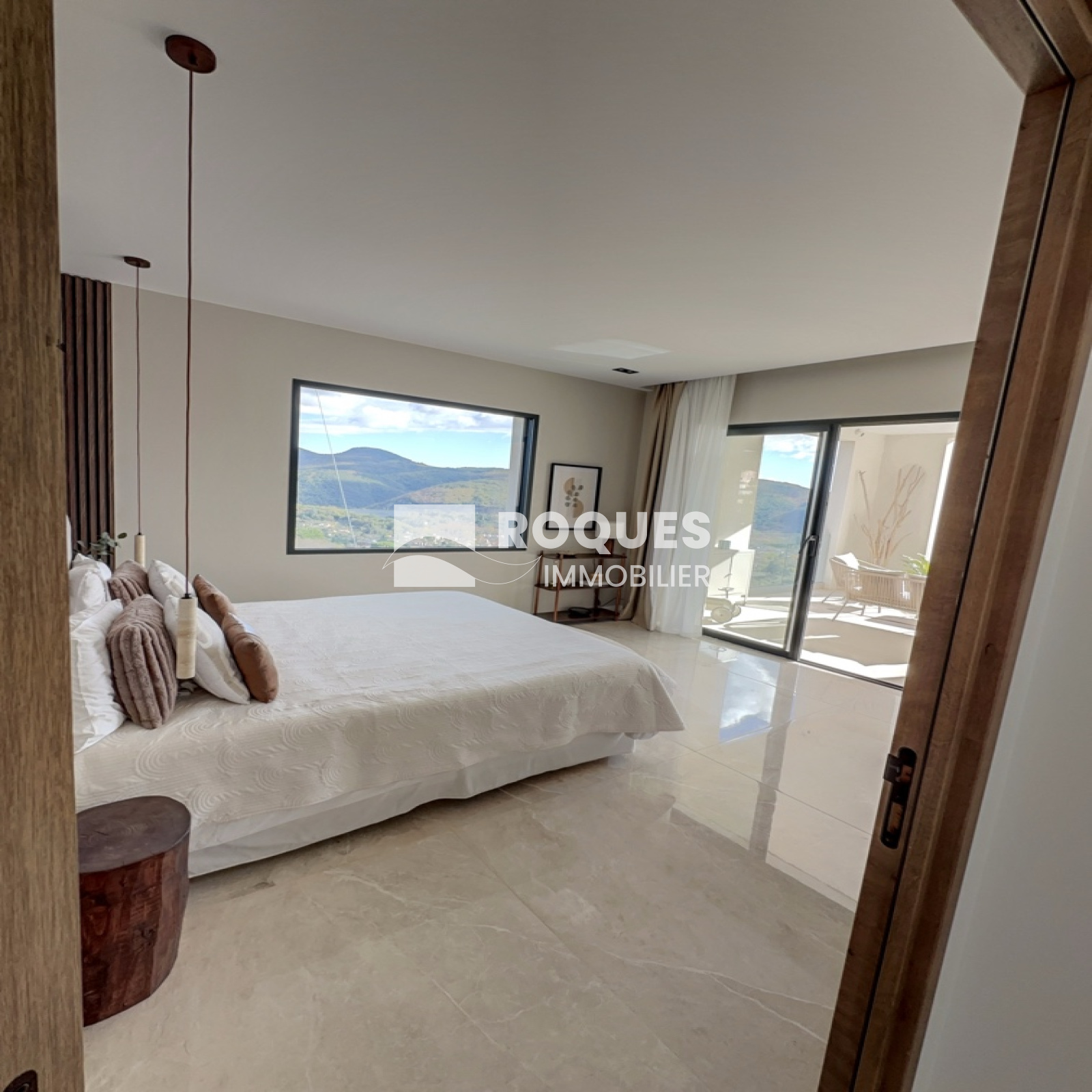 D'une surface habitable de 165 m², elle se compose d'un espace entrée, d'une spaciause pièce de vie de plus de 60 m² avec cuisine américaine entièrement équipée ouverte sur le vaste séjour lumineux, insert à bois et grande baie vitrée donnant sur une vue panoramique unique.
