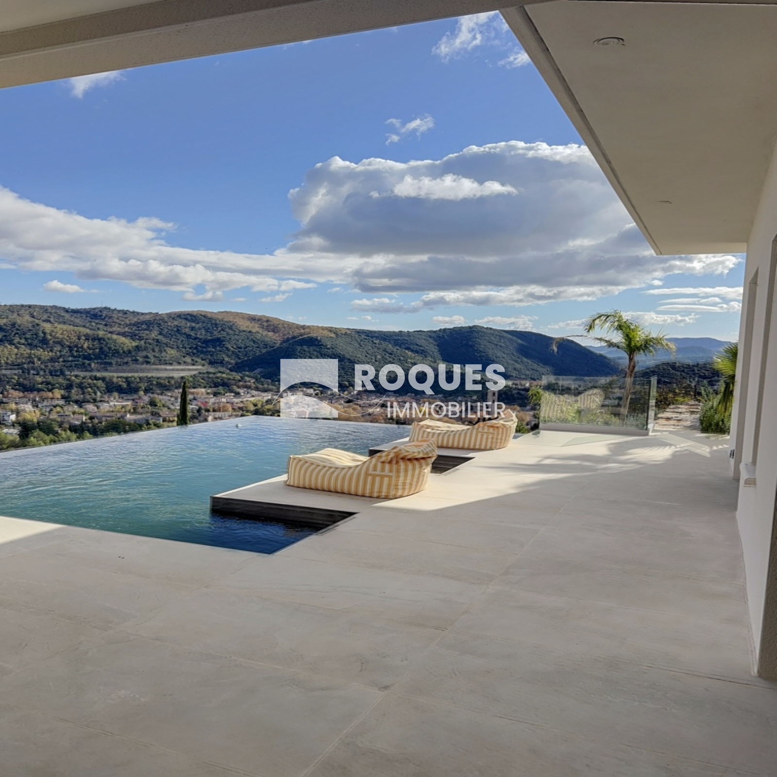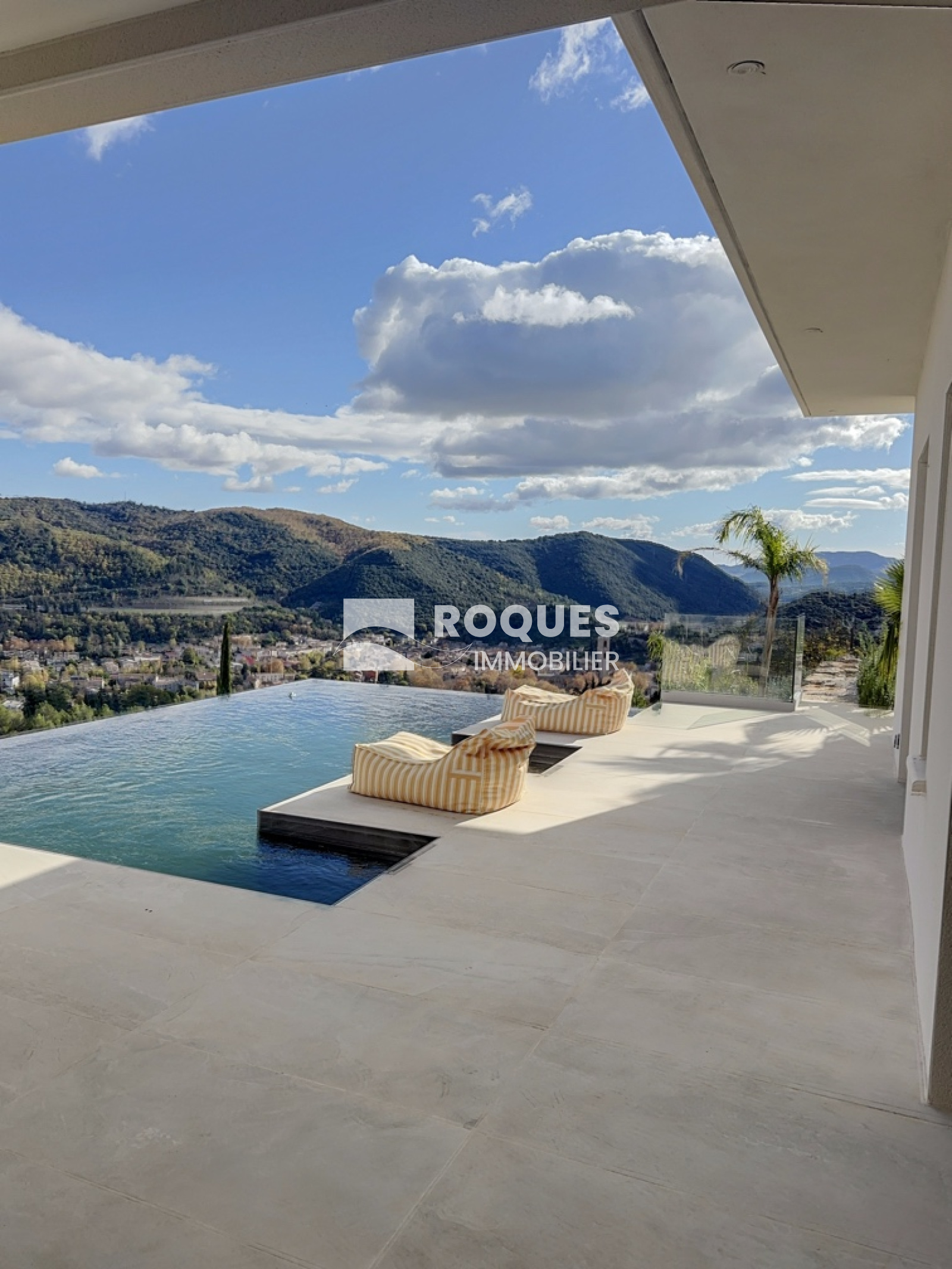 A l'extérieur, vous profiterez d'un terrain de plus de 3 000 m², cloturé avec pelouse, arboré et aménagé, d'un garage attenant de 29 m², d'une magnifique piscine à débordement exposée plein sud avec une vue imprenable sur les environs.