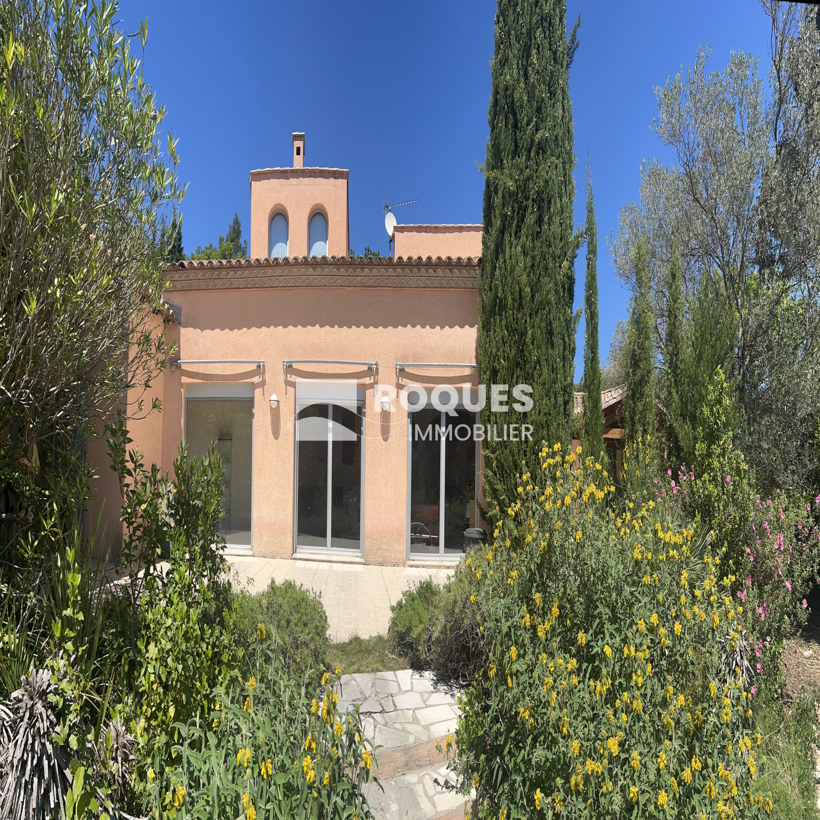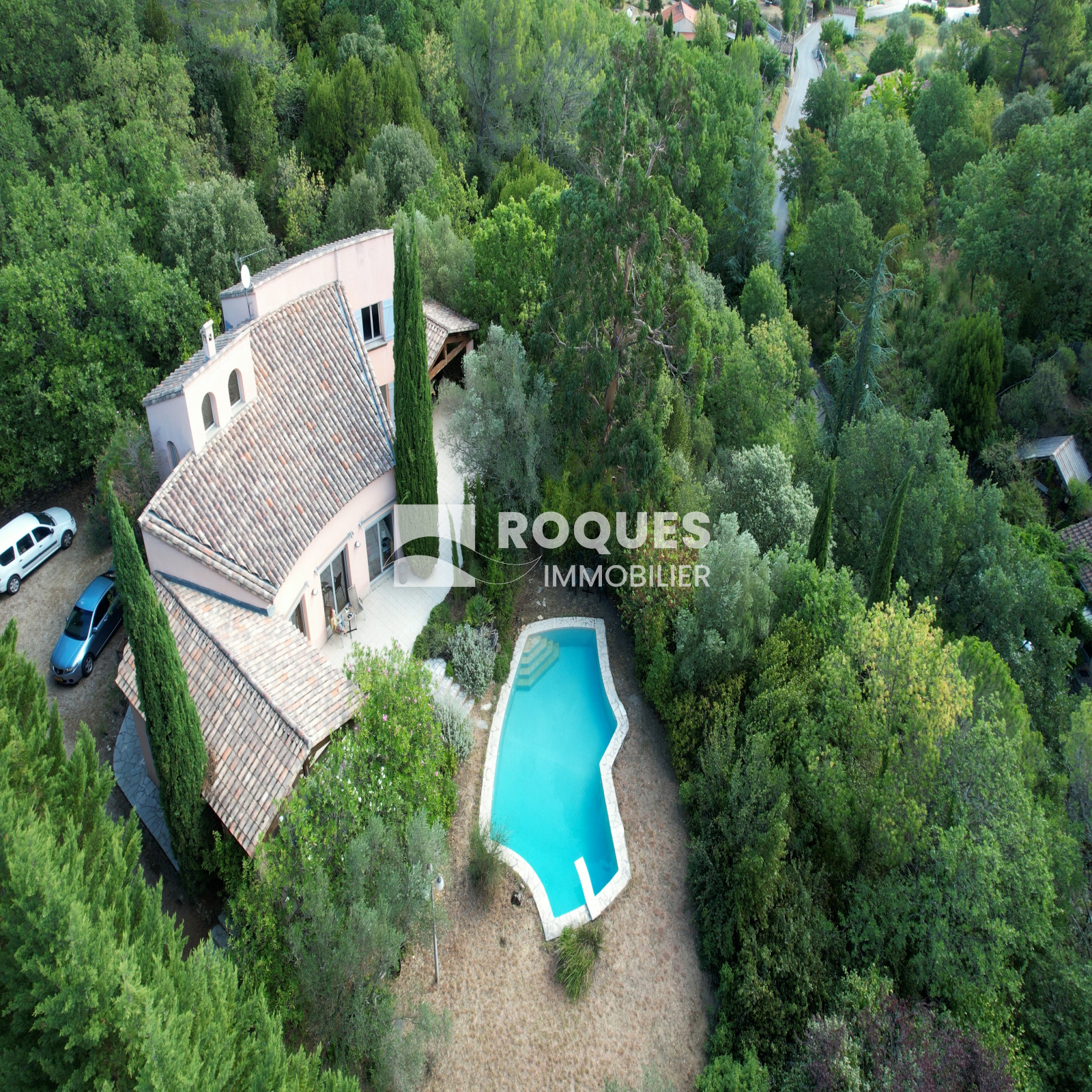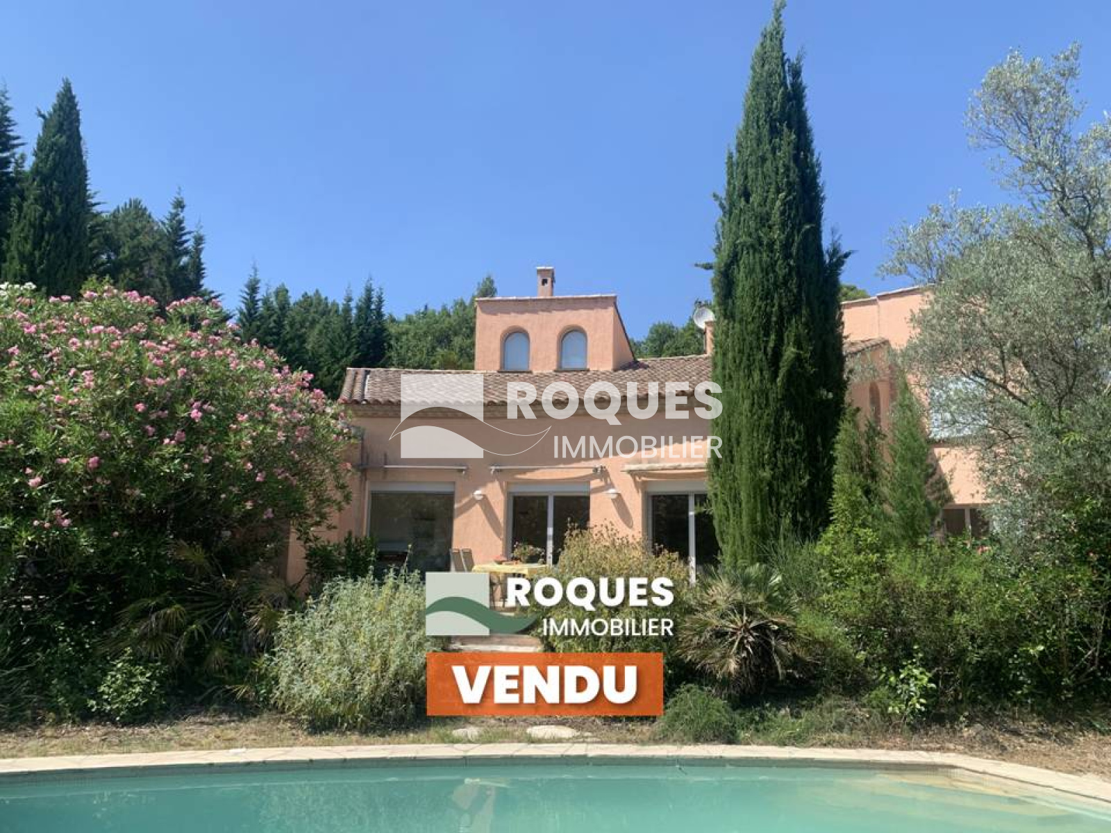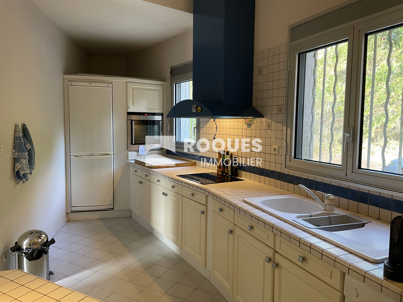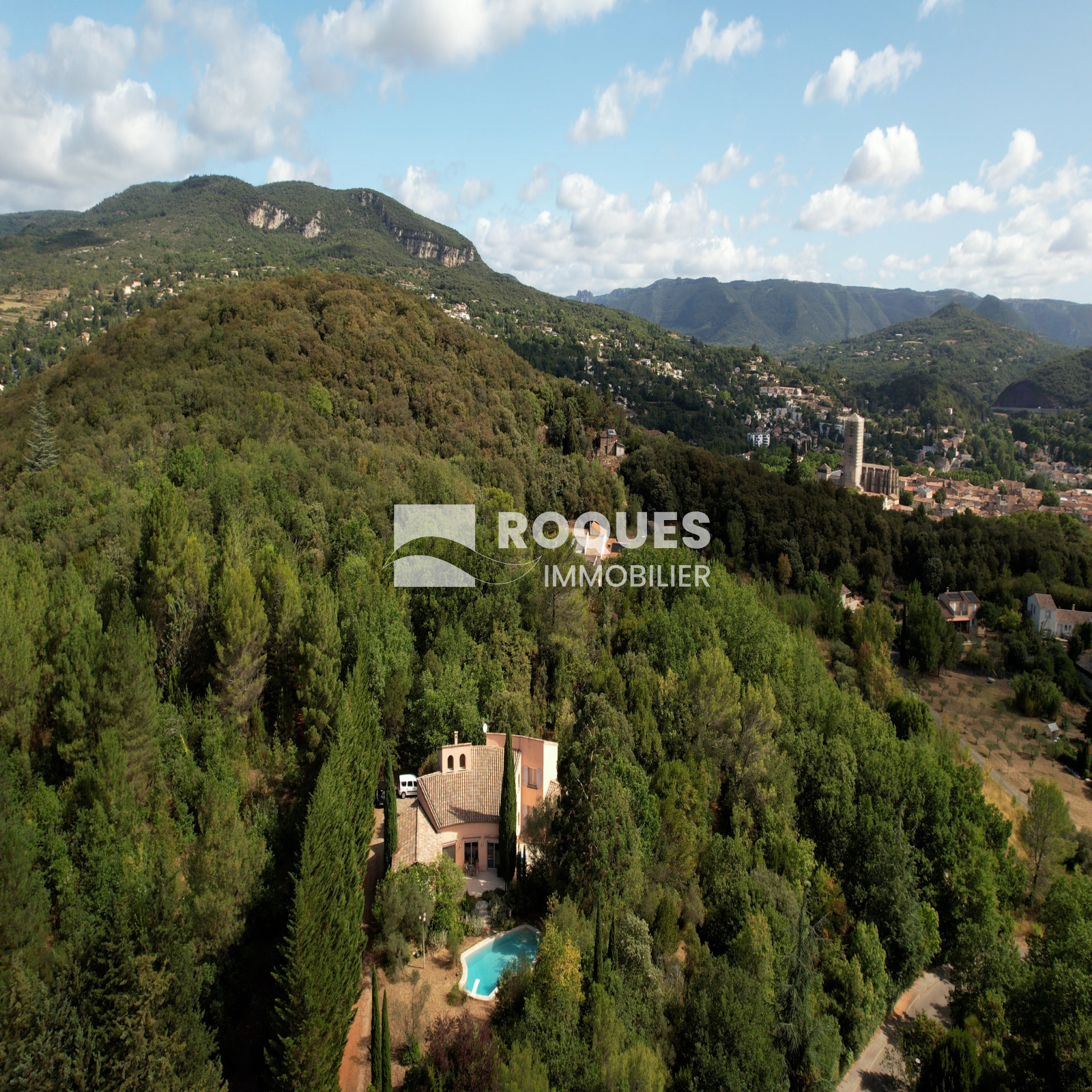 Lodève sur les hauteurs, superbe villa indépendante, cinq pièces, 190 m² habitables plus piscine 10*5, garage et terrasses, le tout sur 7233 m² de terrain arboré, bon état général et comprenant :