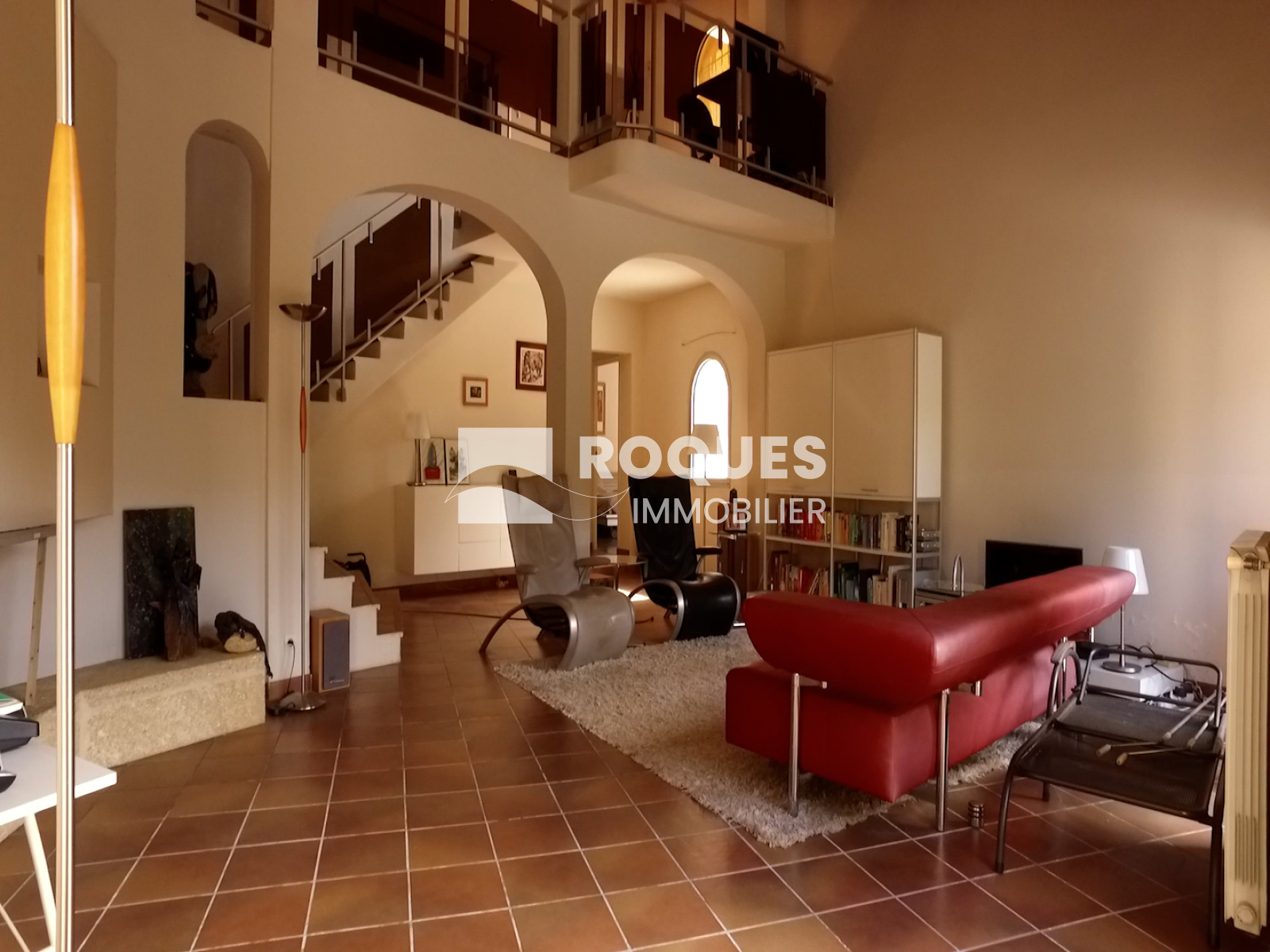 En rez de chaussée : Hall d'entrée 10.35 m², séjour cathédrale 48 m², cuisine équipée 16 m², salle à manger 16.56 m², dégagement 5 m², une chambre 18.50 m², salle de bains 11.56 m², dressing 4.86 m², toilettes 1.54 m²