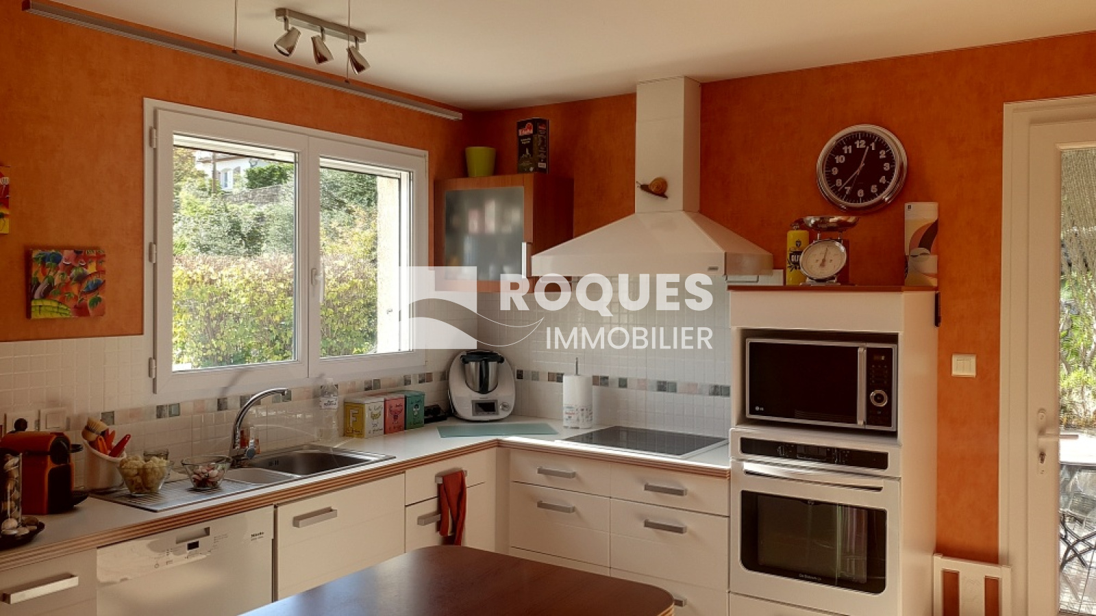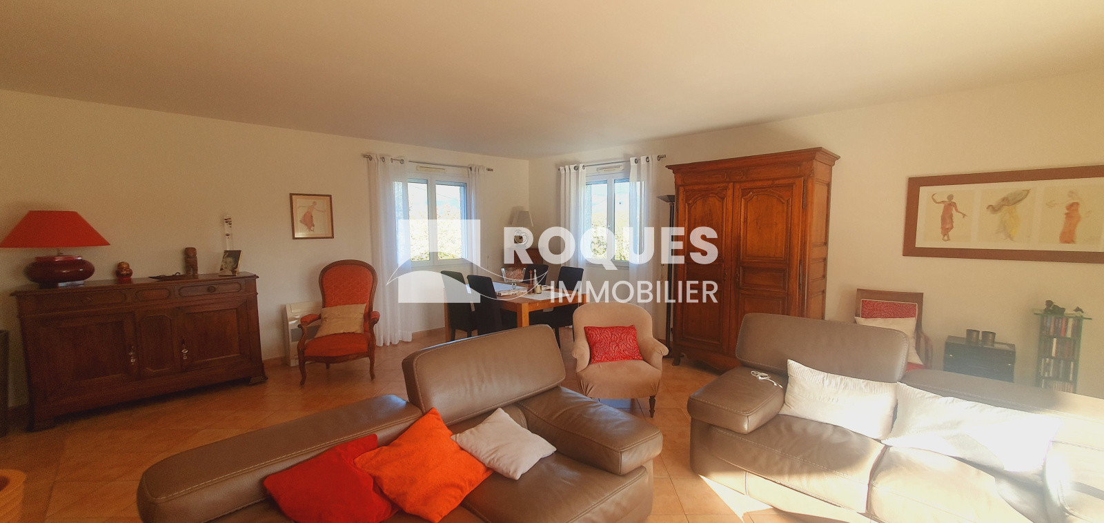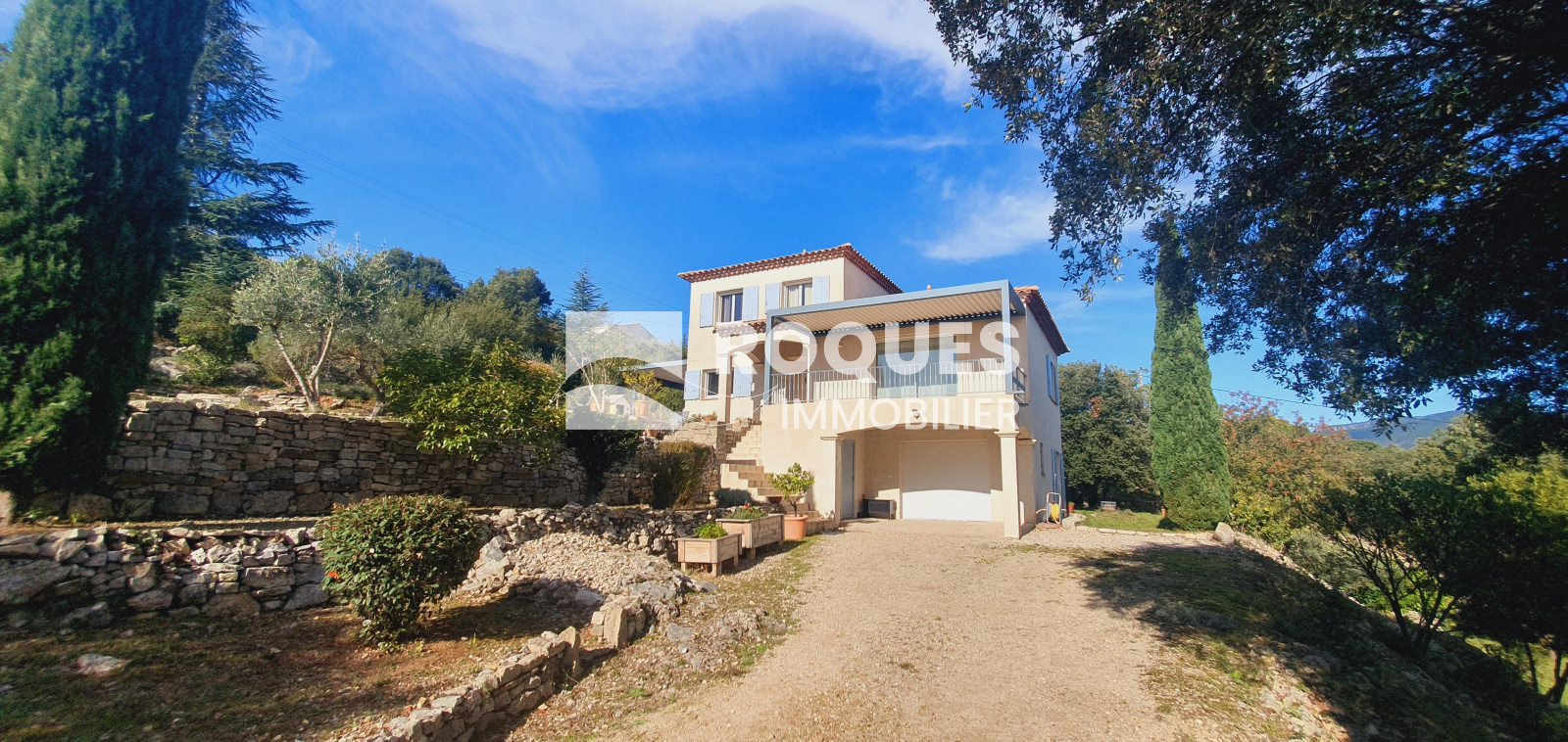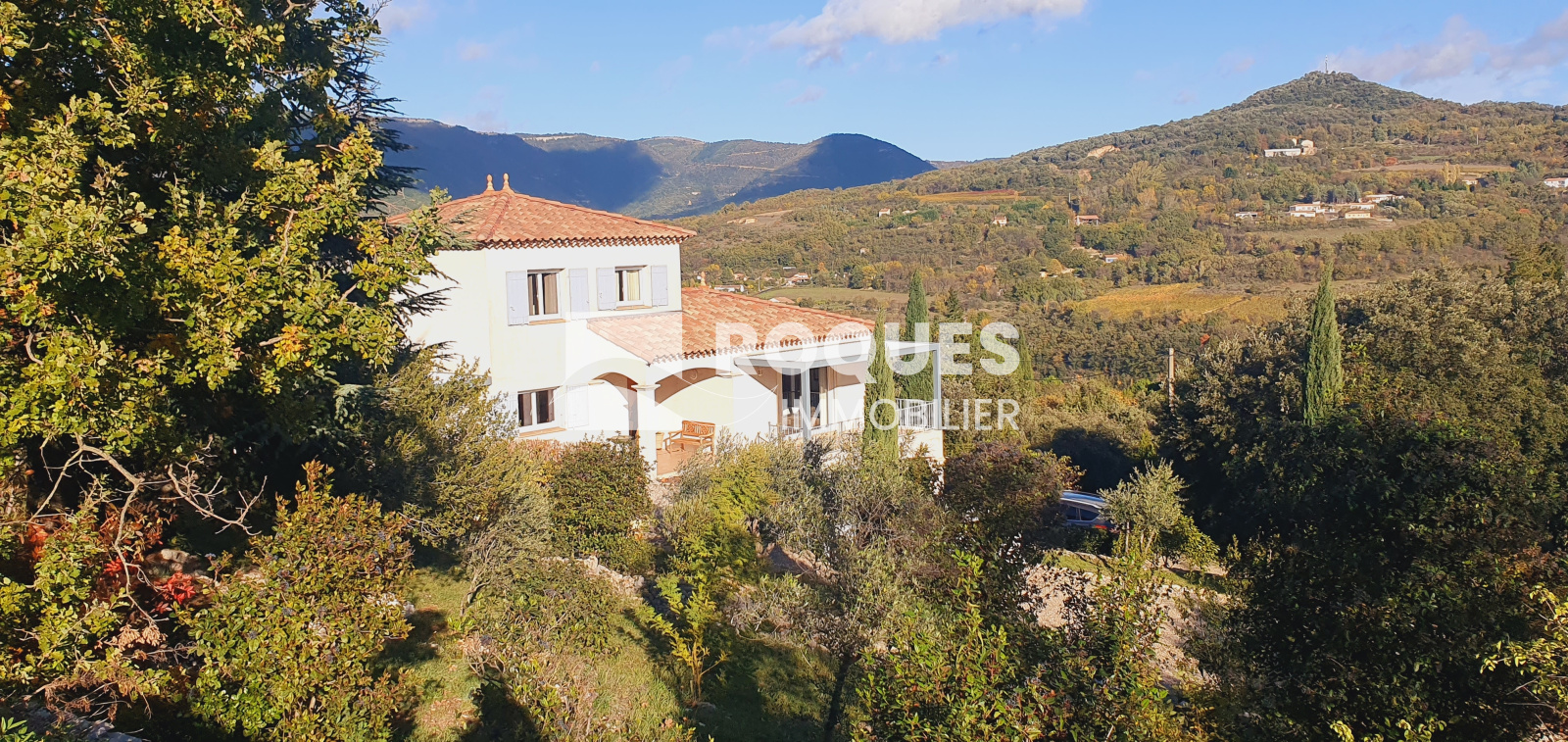 Sur les hauteurs de LODEVE, superbe villa indépendante, cinq pièces, 159 m² habitables, sur environ 3591 m² de terrain attenant arboré et constructible, très belles prestations et comprenant :