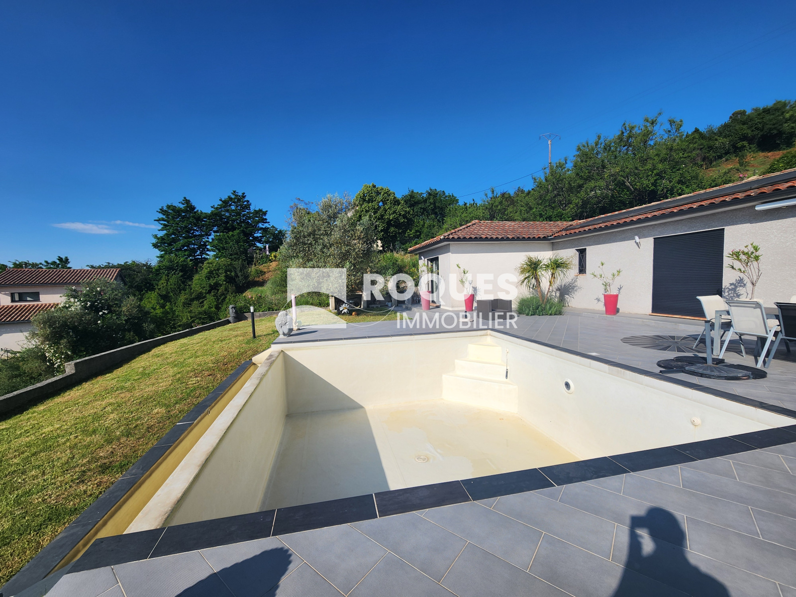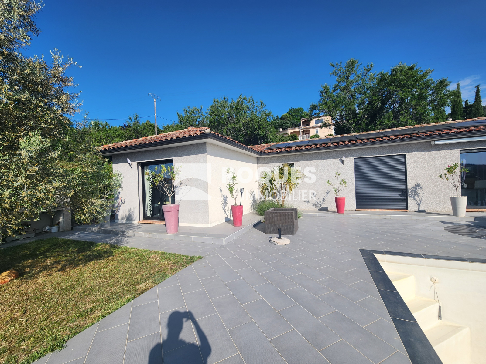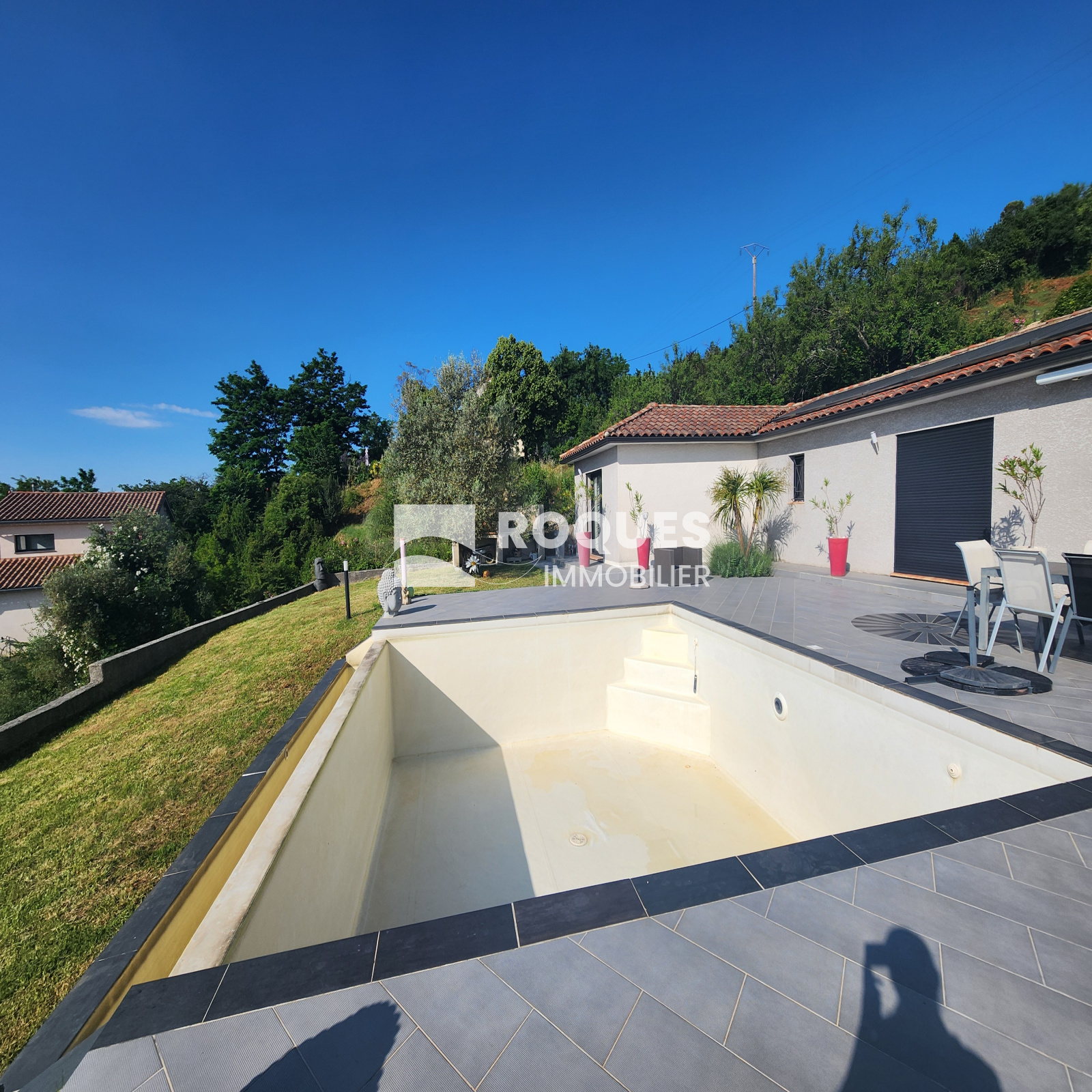 Sur les hauteurs de Lodève, superbe villa indépendante de plain pied, 145 m² habitablesplus piscine, garage et terrasse, le tout sur terrain de 1332 m², belles prestations et comprenant :