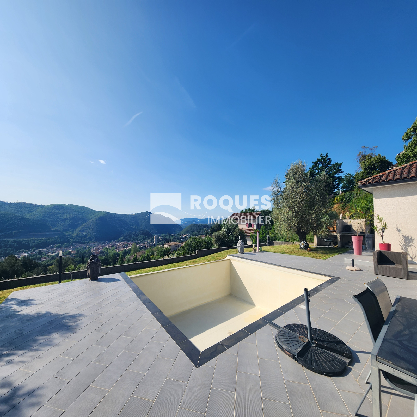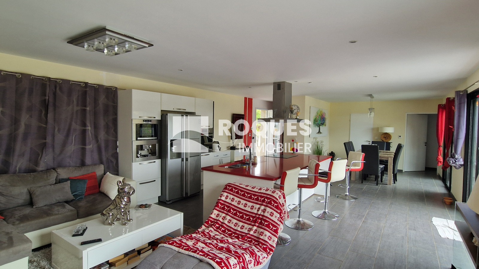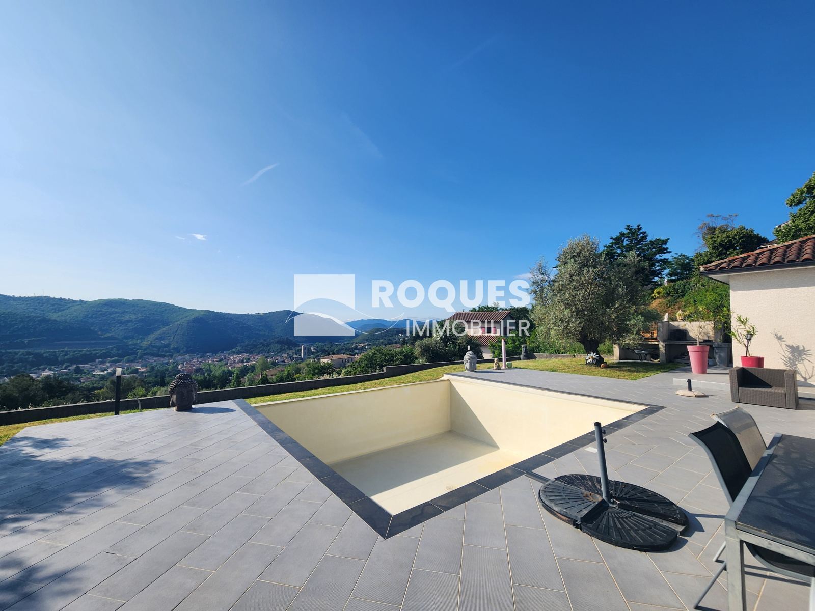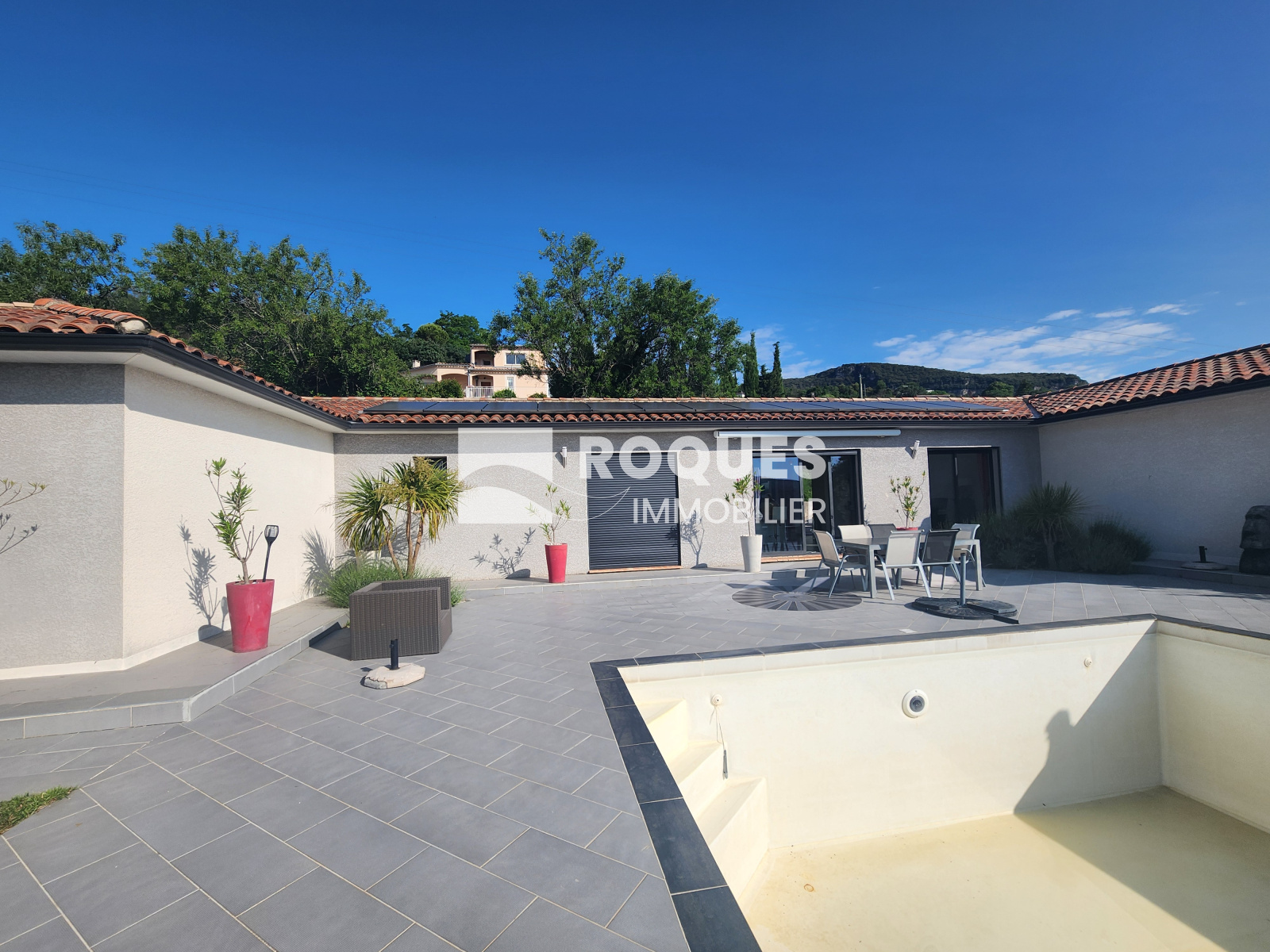 Sur les hauteurs de Lodève, superbe villa indépendante de plain pied, 145 m² habitablesplus piscine, garage et terrasse, le tout sur terrain de 1332 m², belles prestations et comprenant :