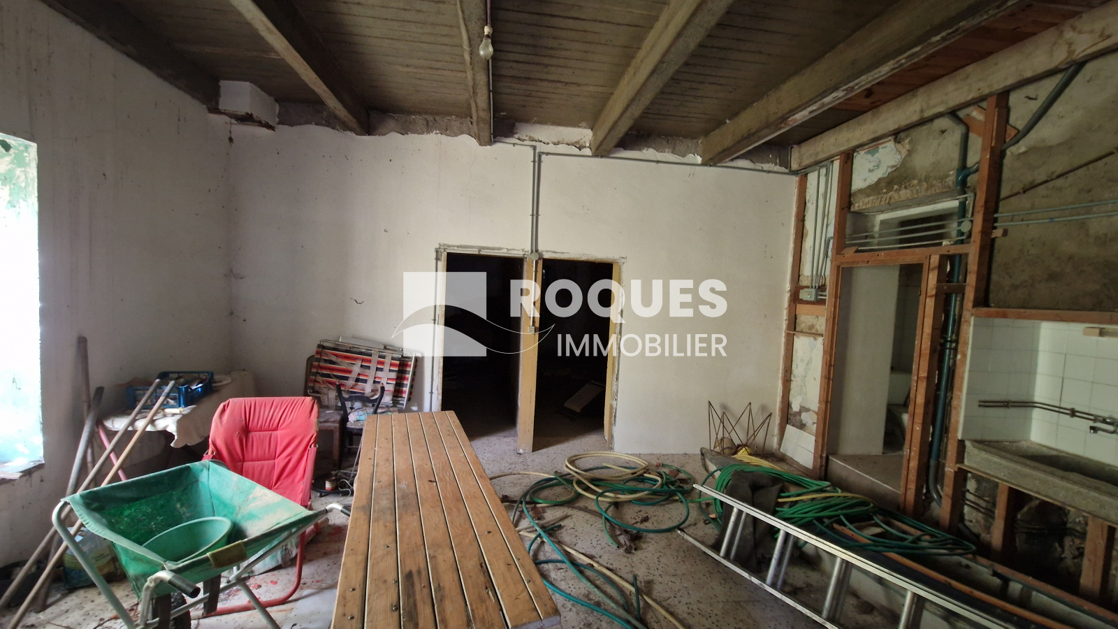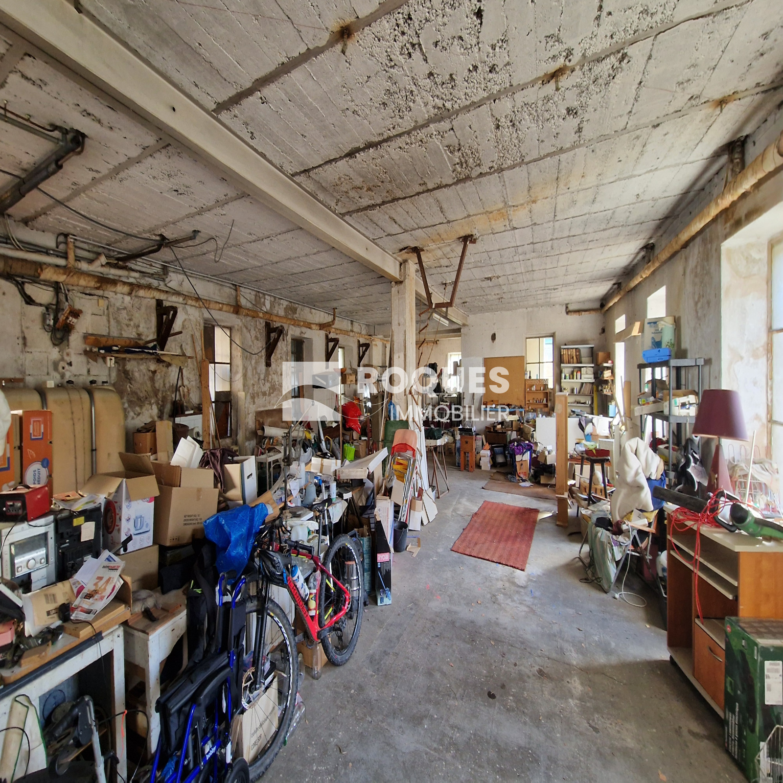 Annexes : garage environ 20 m² et une maison d'habitation élevée de deux niveaux de 60 m² chacun, attenante au bâtiment principal et à rénover entièrement