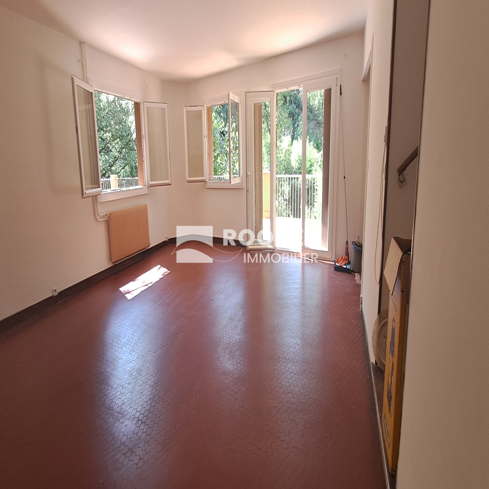 En rez de jardin, un studio de 40 m² avec de grandes baiens vitrées, très lumineux (quelques finitions à apporter)...