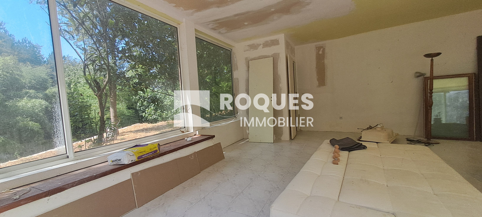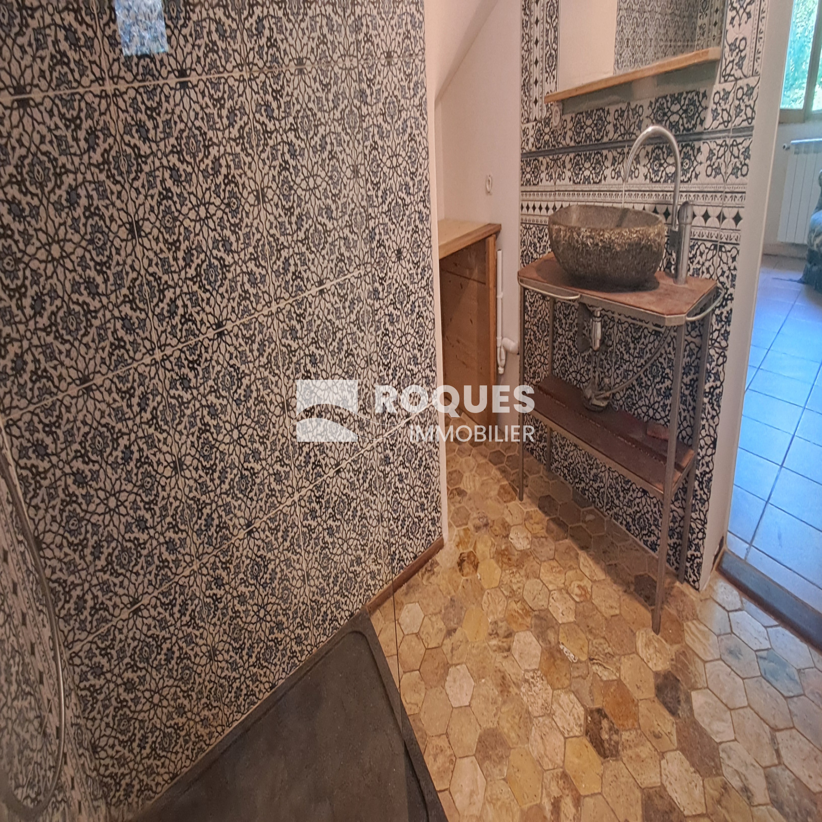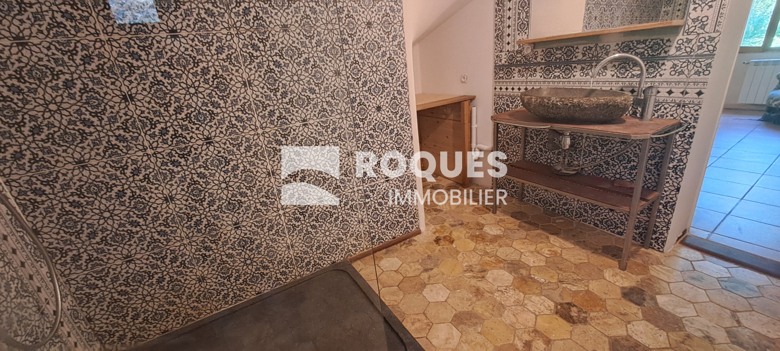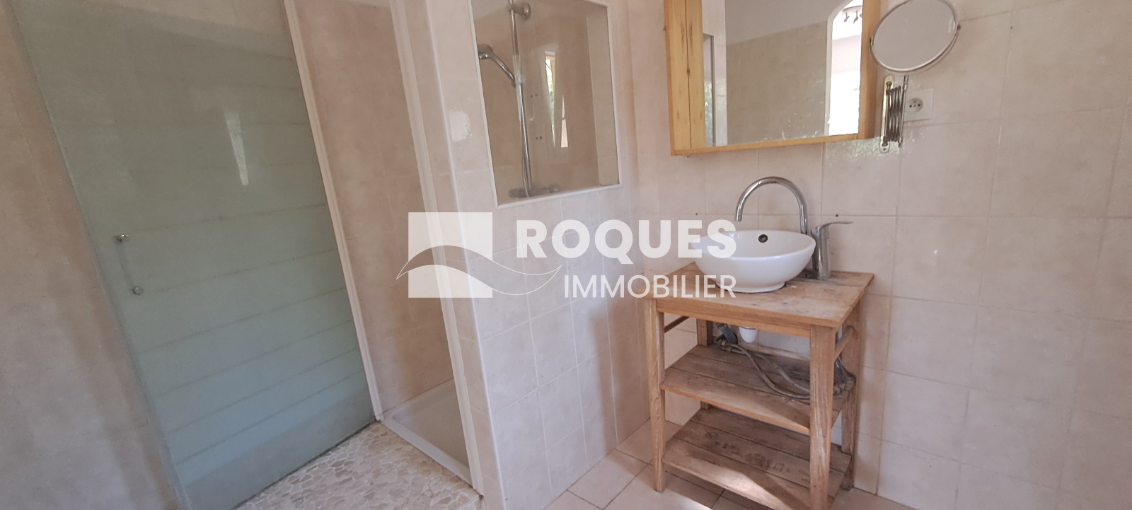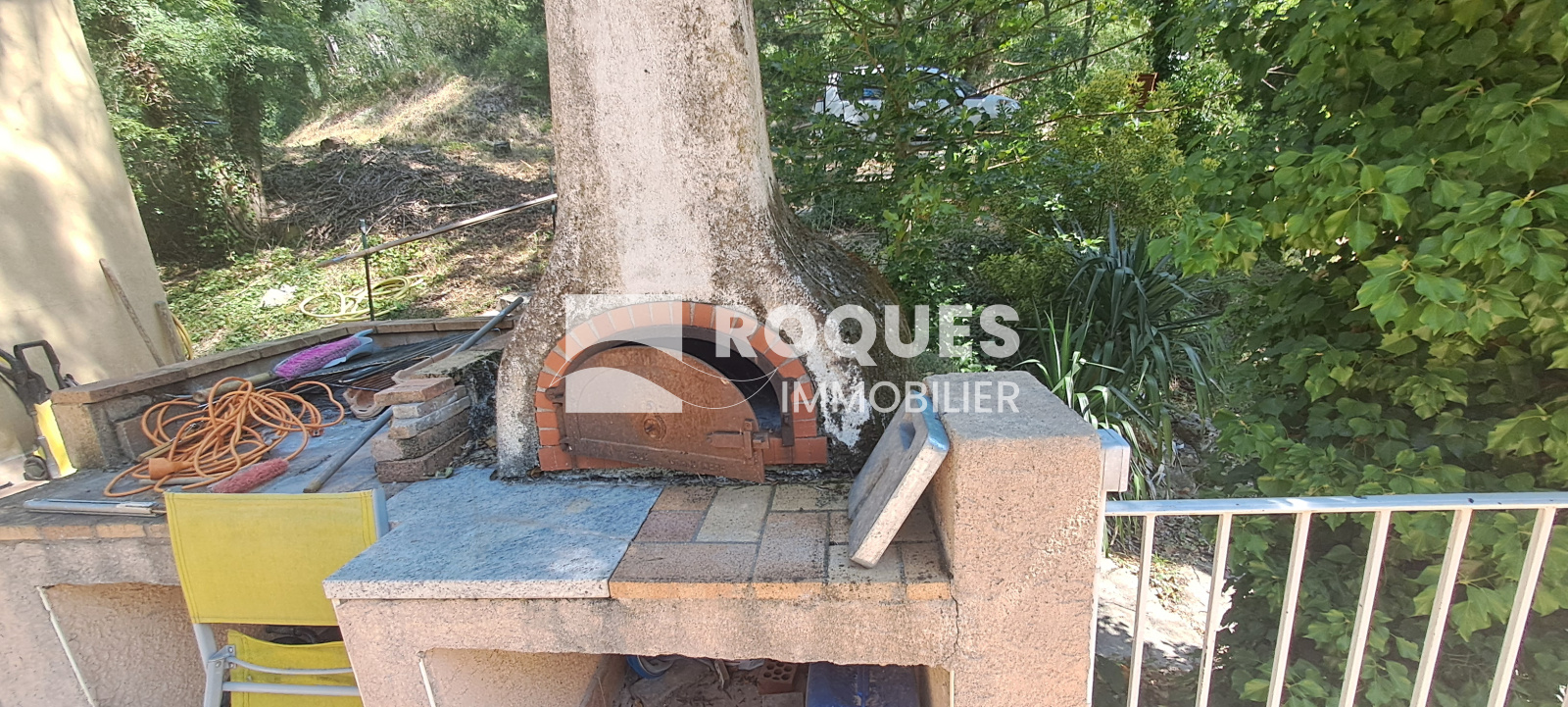 Une terrasse de 65 m² vous accueille avec une très belle exposition,un barbecue et un four à pizza. Ensuite entrée sur une grande pièce à vivre de 36,49 avec un insert, cuisine semi-ouverte de 8,74m². Un wc indépendant, une salle d'eau de 5,59m², un salon de 24 m² avec soleil couchant, une chambre de 15,47 m², et un petit hall de 3,95m².