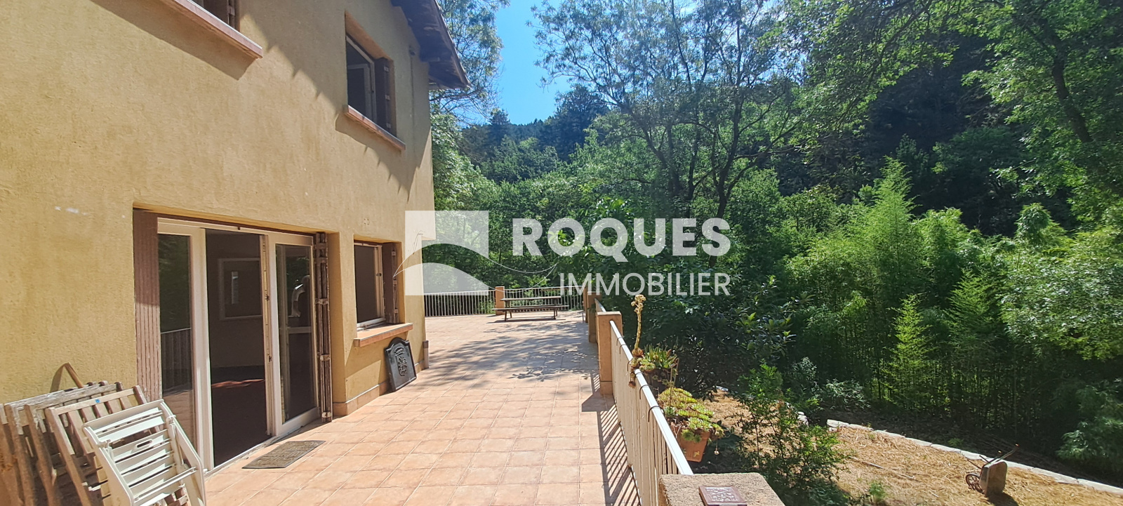 A 5 minutes de Lodève, nichée au coeur de la nature, entre ruisseau et petite rivière, sur 6 002m² de terrain, grande maison de 159m², avec son appartement indépendant de 40 m²en rez de jardin, pour les amoureux de la nature.