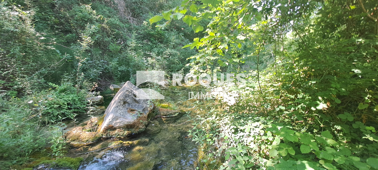 Divers espaces dans la nature, potager à créer, arbres fruitiers avec source, ruine, espace piscine, baignade dans la rivière etc...