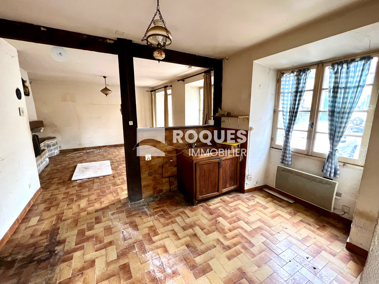 RDC : Pièce à vivre 31 m² avec cheminée, plus montée d'escalier.
