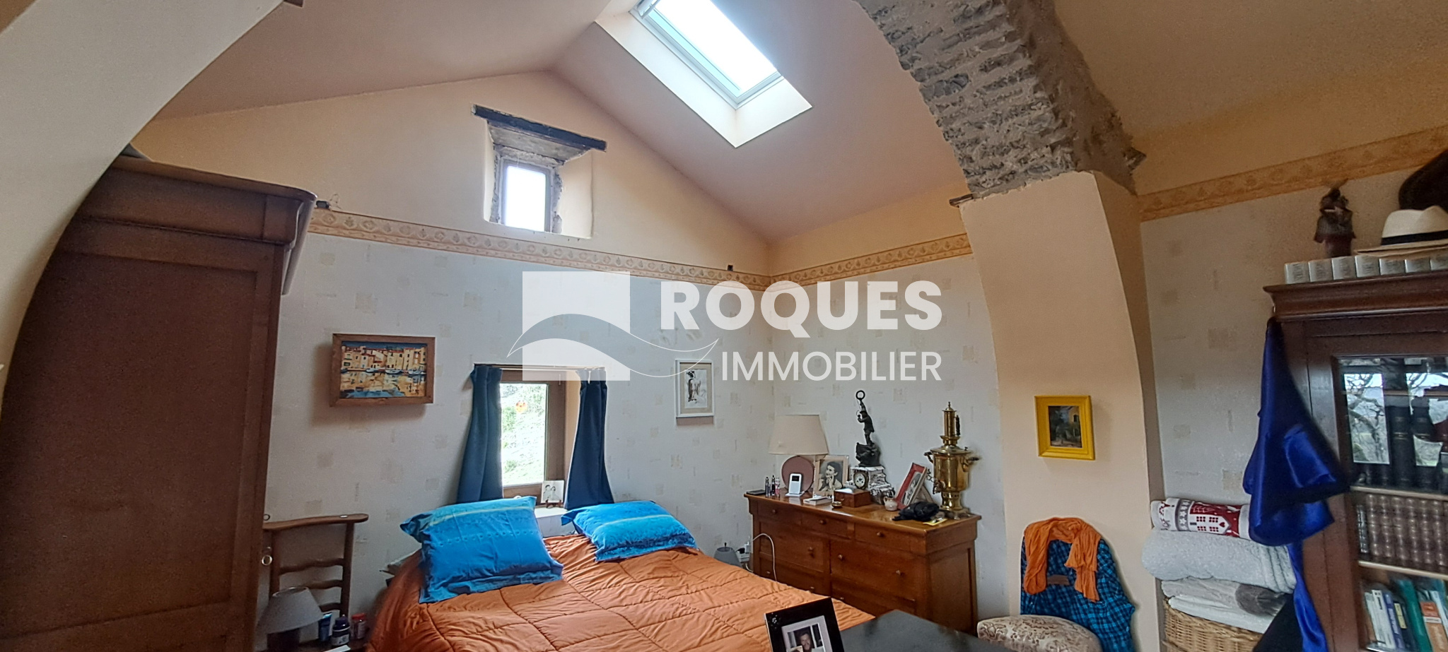R+1: salon de 17,42m² avec haut plafond, cuisine de 18,33m², petite veranda de 7,20m², chambre parentale voûtée de 18,56 m², petit dégagement de 1,52m², wc de 1,50 m², salle de bain de 3,15 m², chambre de 14,70m² + mezzanine de 5,25m²
