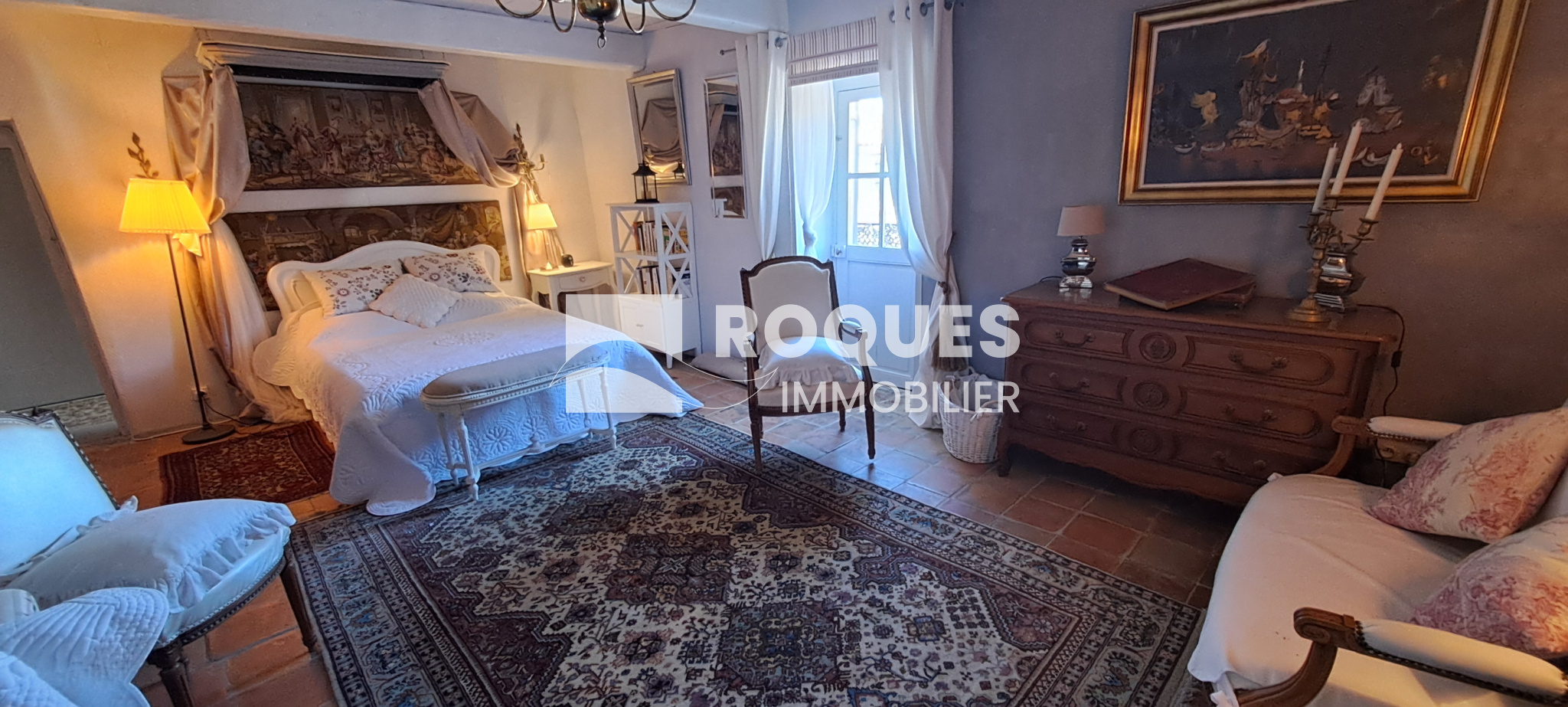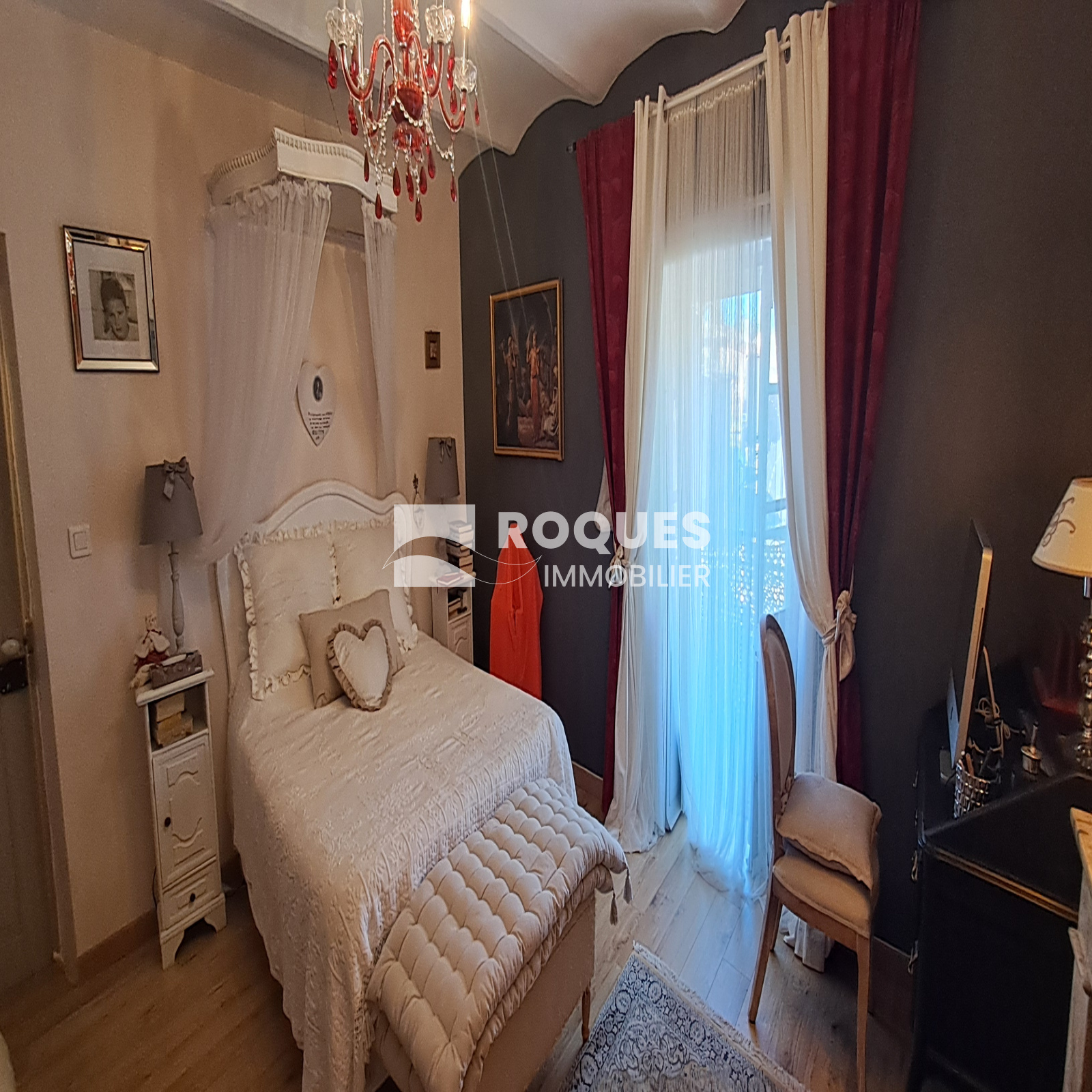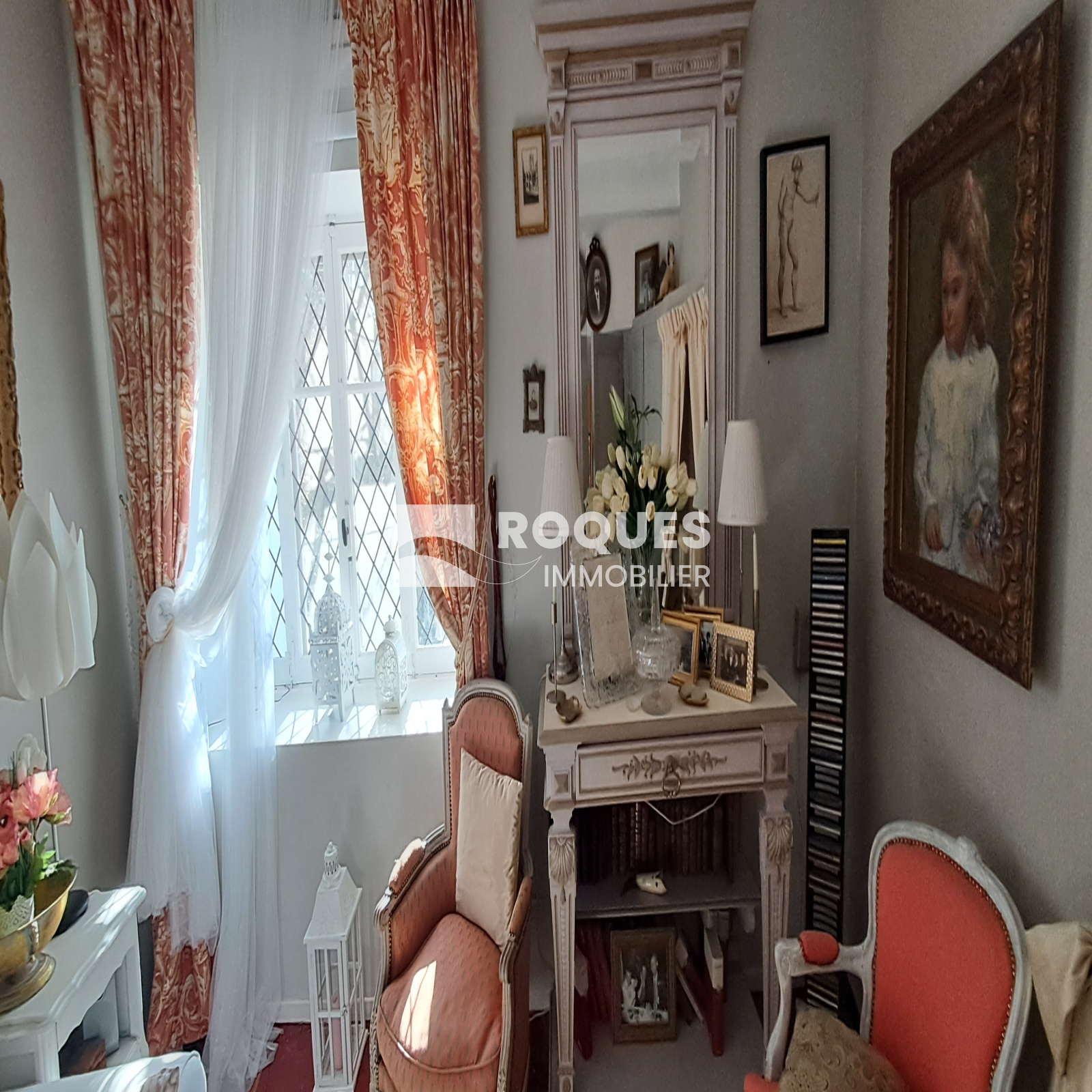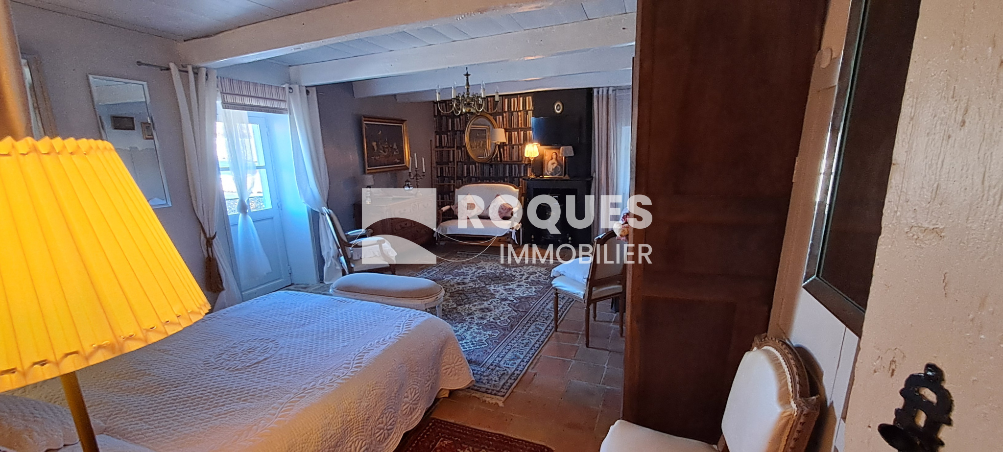 A l'étage, le palier dessert une grande cuisine de 16,35 m² avec sa petite souillarde et sa cheminée. Vous trouverez une grande chambre romantique de 16,15 m² avec sa salle de bain privative de 6m², puis un salon cosy de 11,95m², avec en enfilade une chambre supplémentaire, qui par une porte dérobée permet l'accès à une terrasse ombragée surplombant le jardin.