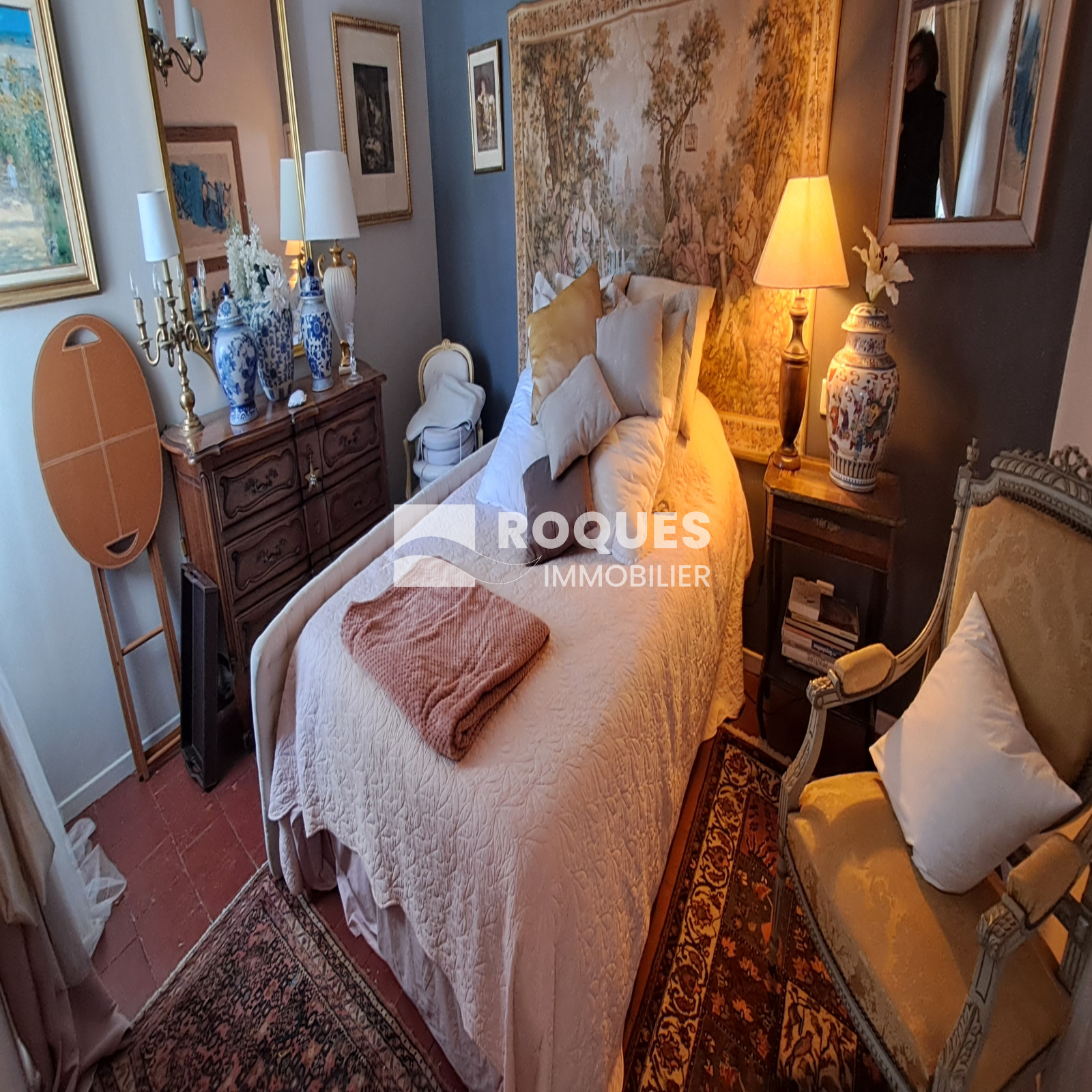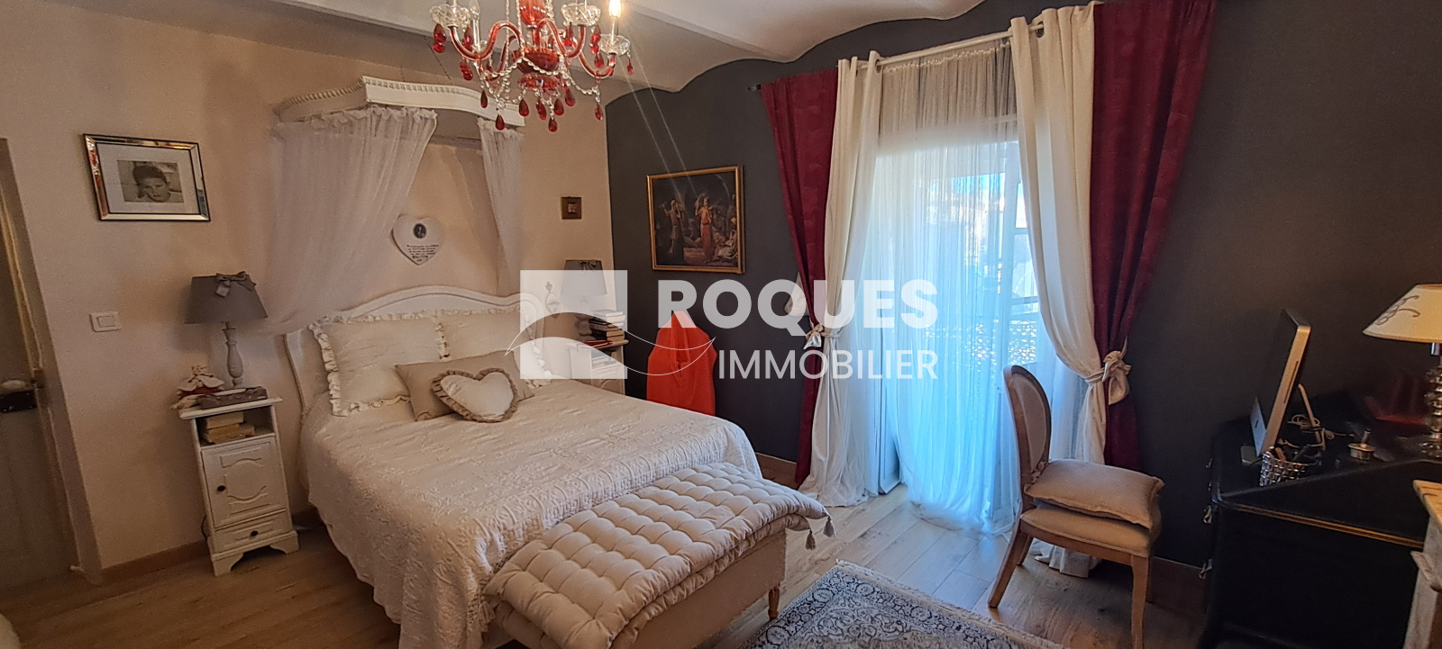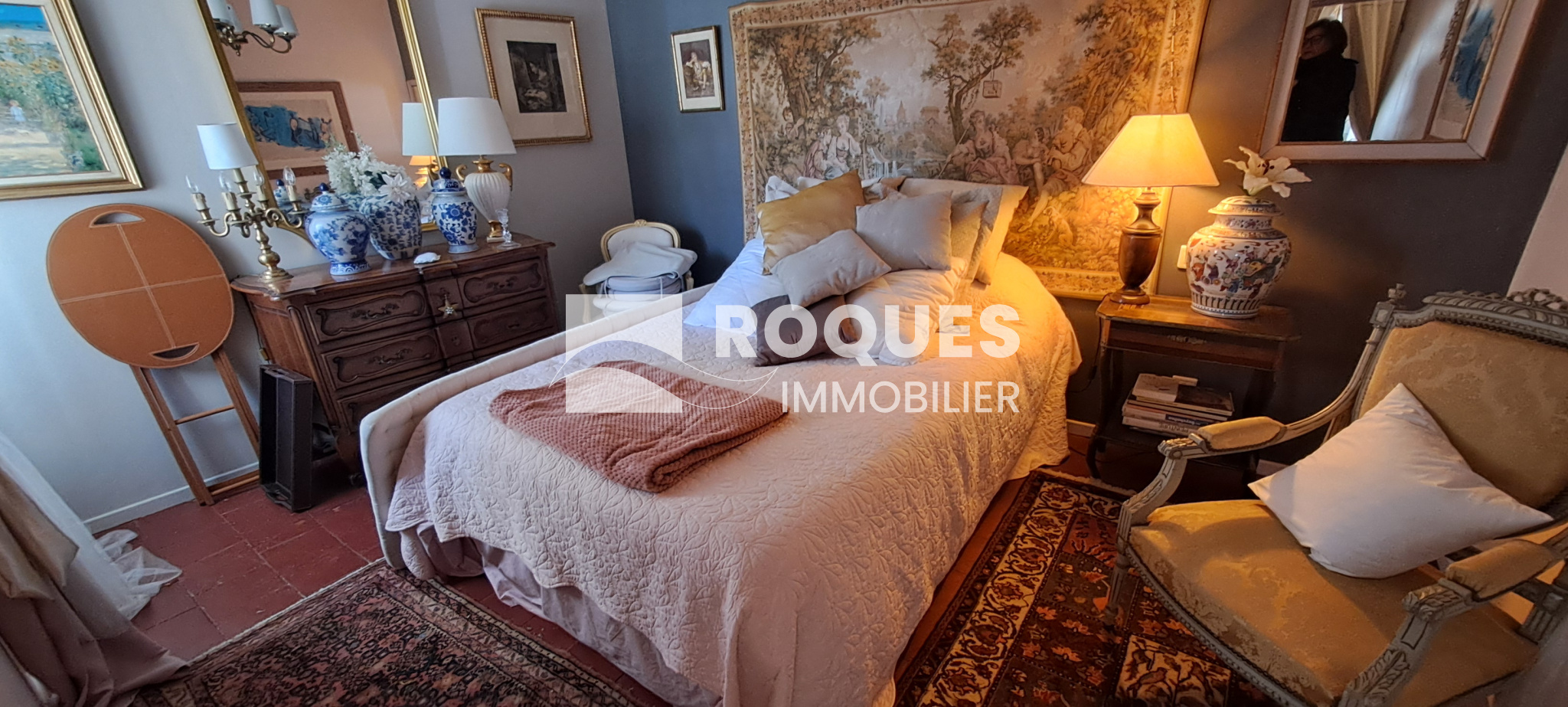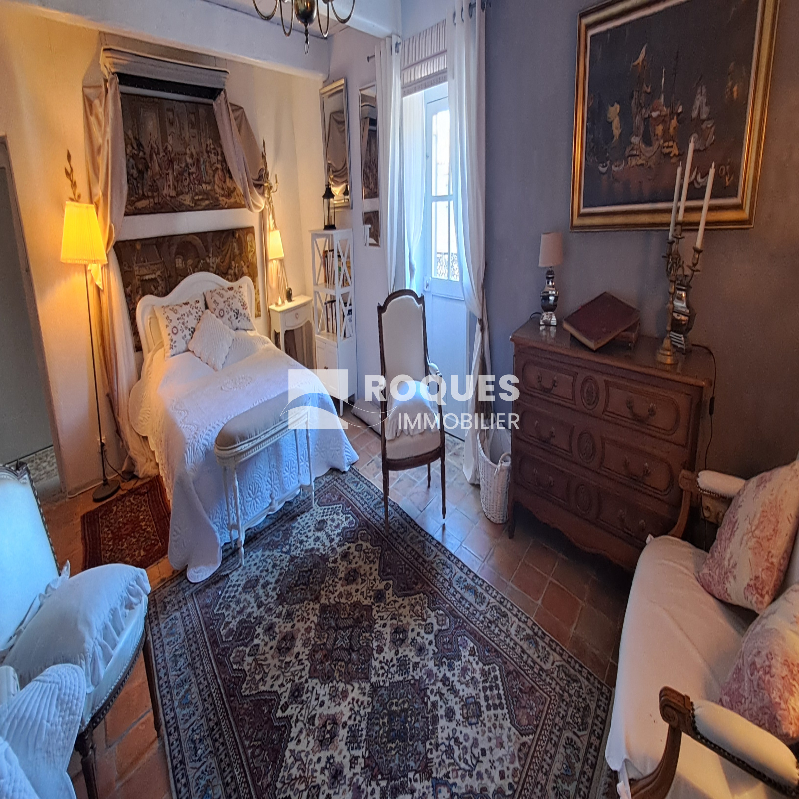A l'étage, le palier dessert une grande cuisine de 16,35 m² avec sa petite souillarde et sa cheminée. Vous trouverez une grande chambre romantique de 16,15 m² avec sa salle de bain privative de 6m², puis un salon cosy de 11,95m², avec en enfilade une chambre supplémentaire, qui par une porte dérobée permet l'accès à une terrasse ombragée surplombant le jardin.