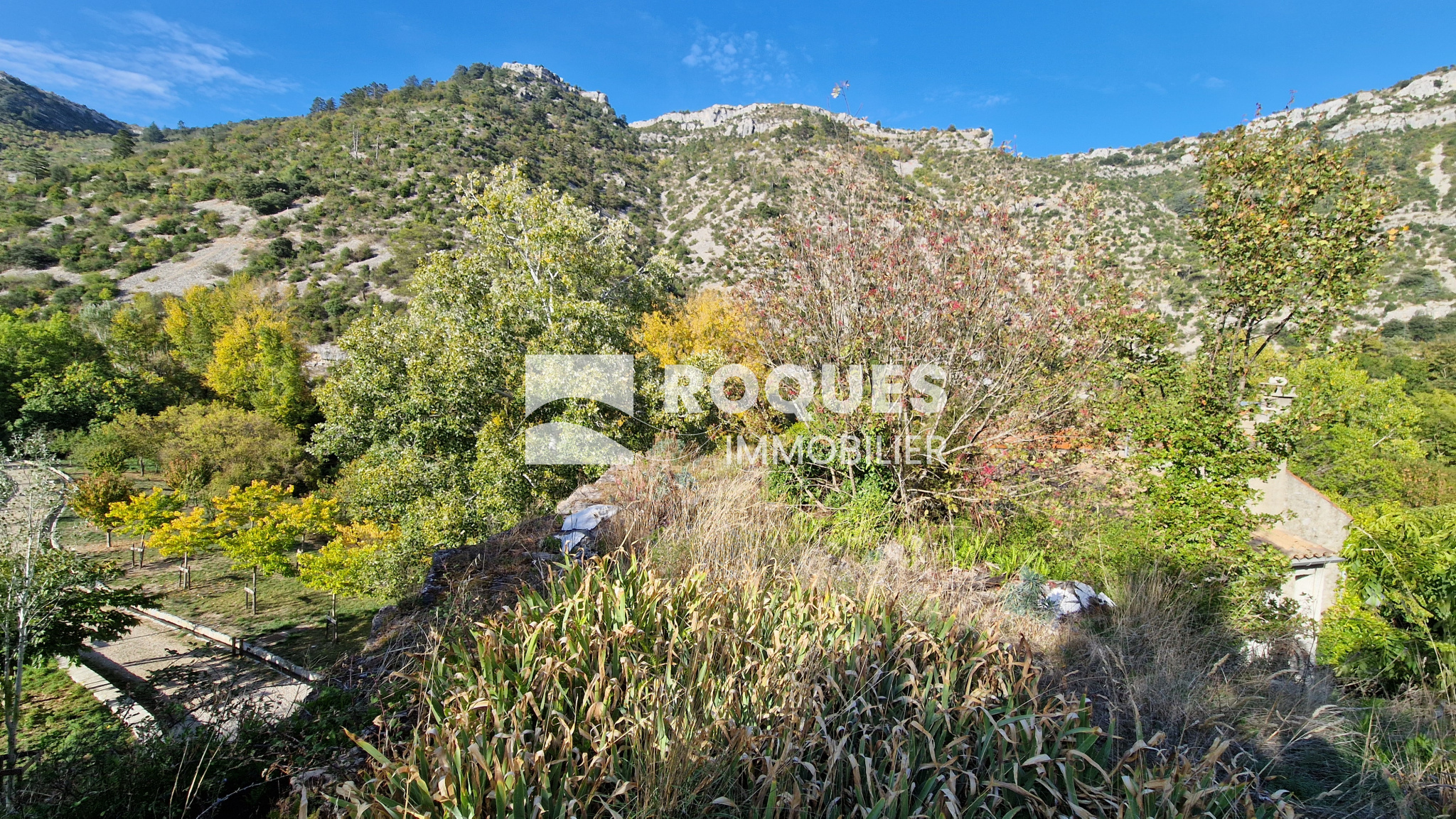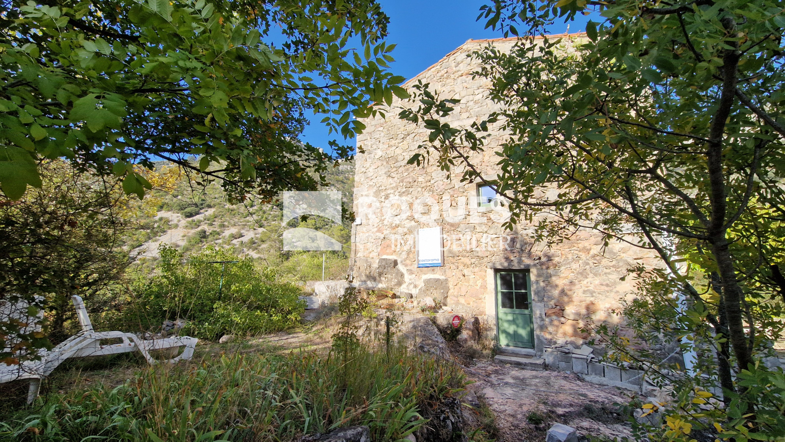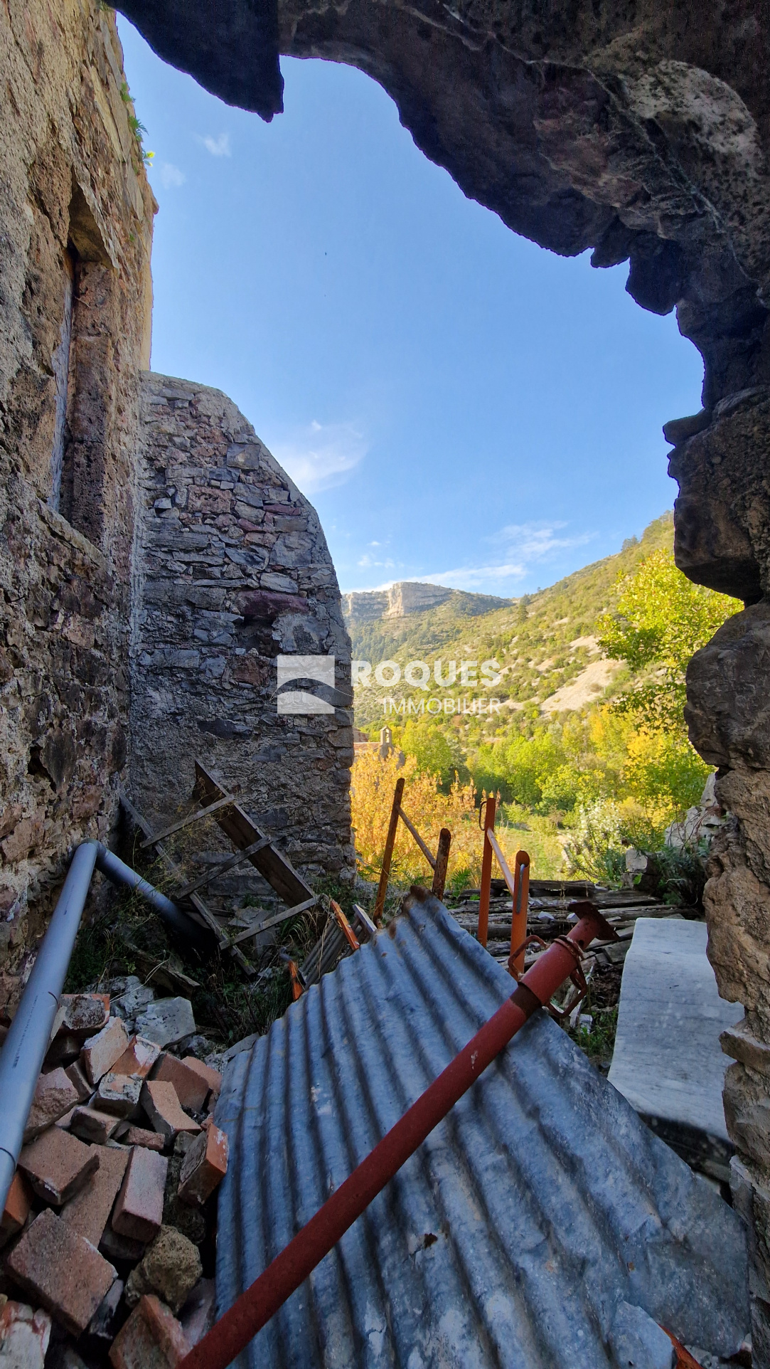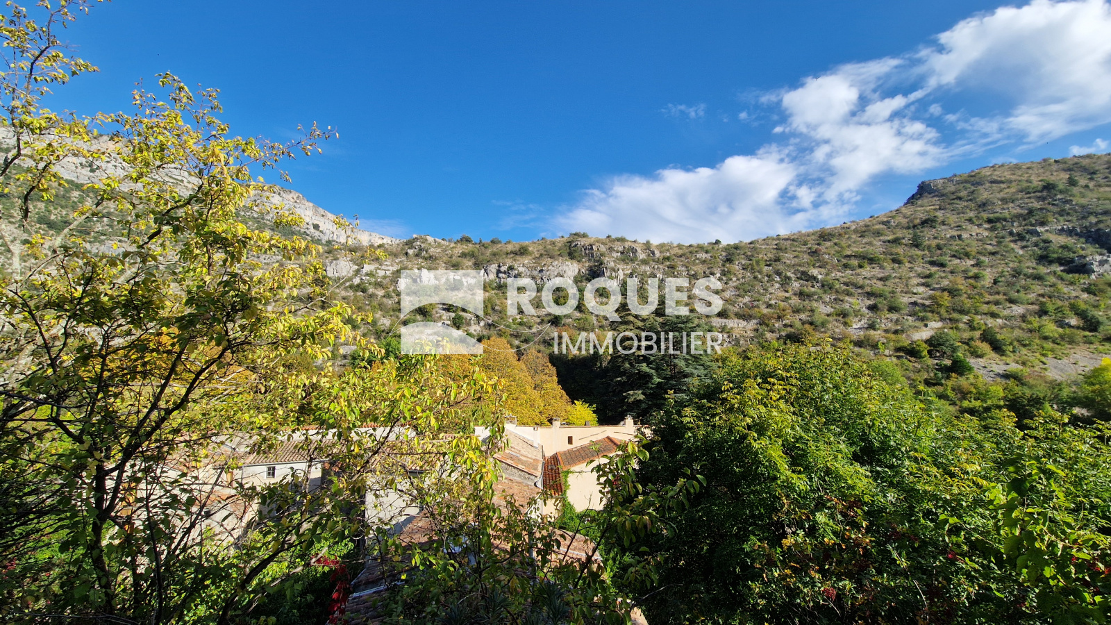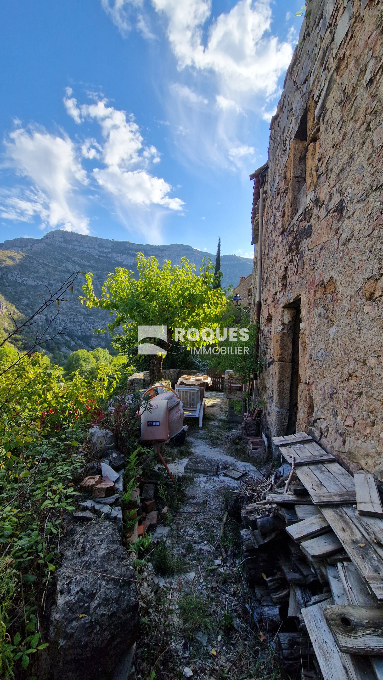 Au coeur du cirque de Navacelles avec situation et vue exceptionnelle, Maison de village de type 5, 82 m² habitables plus dépmendances, le tout sur terrain attenant de 683 m² et non attenant de 9 226 m², bon état général et comprenant :
