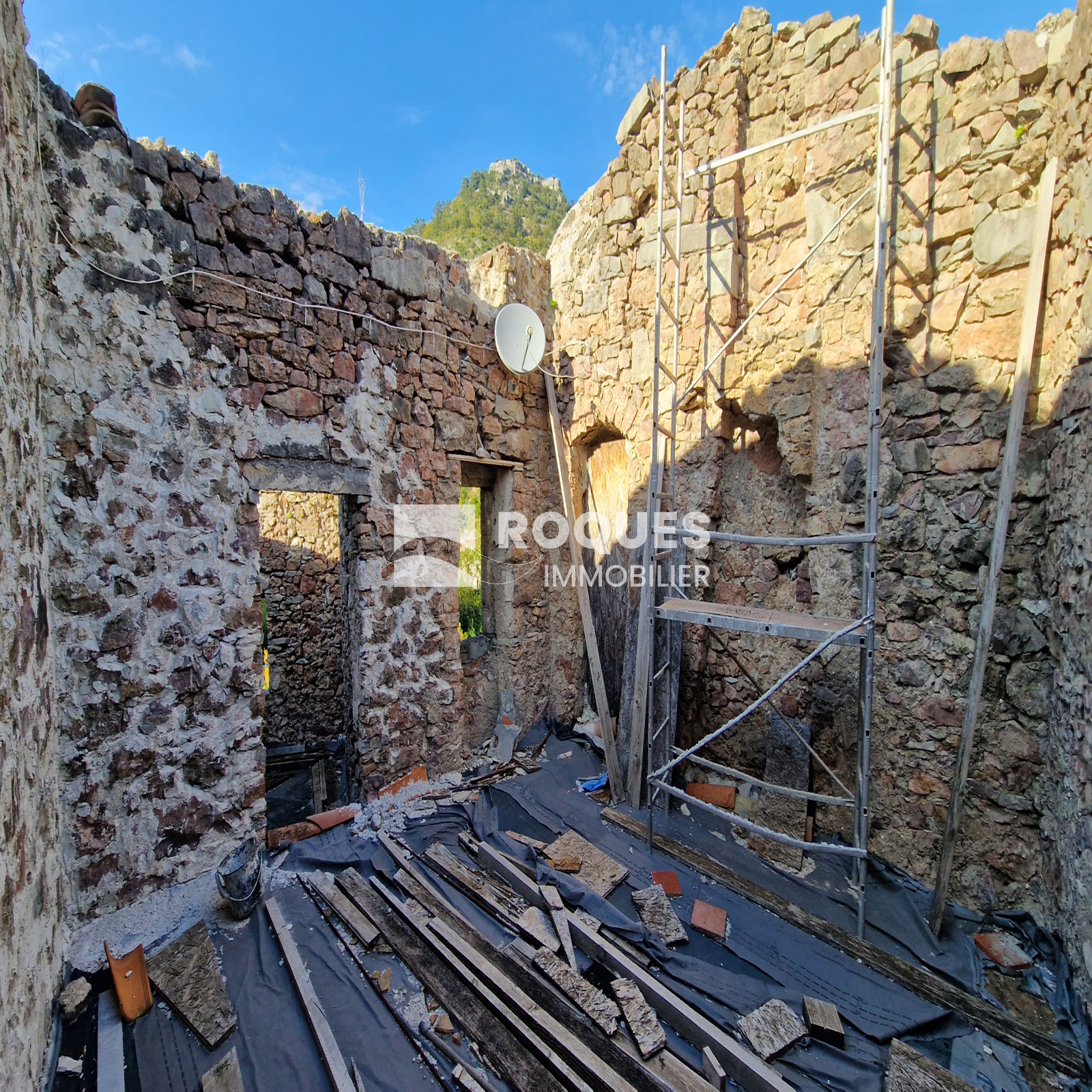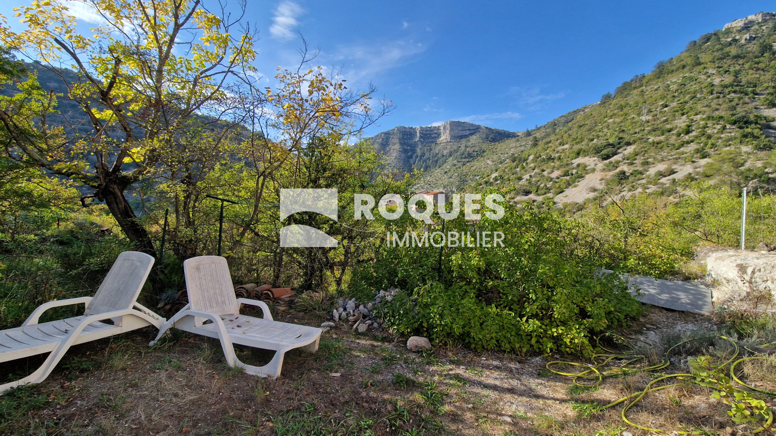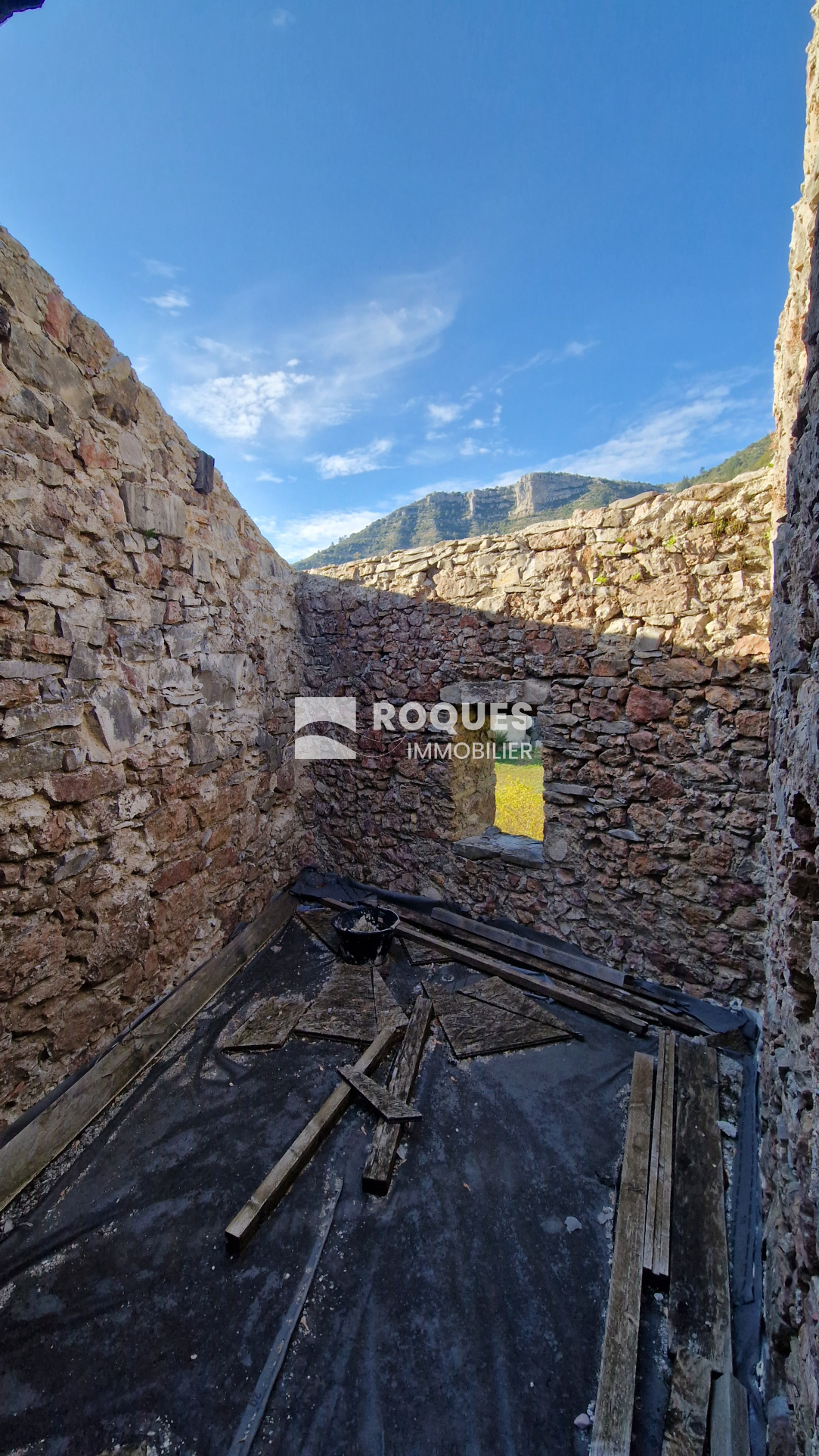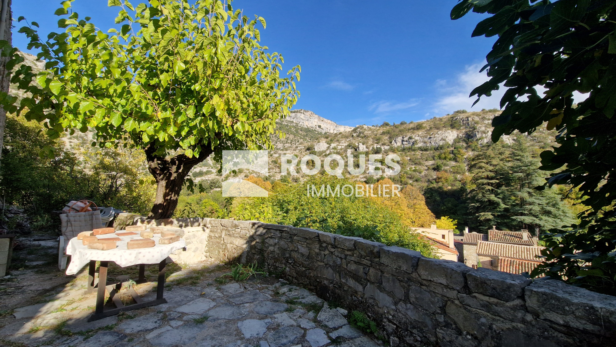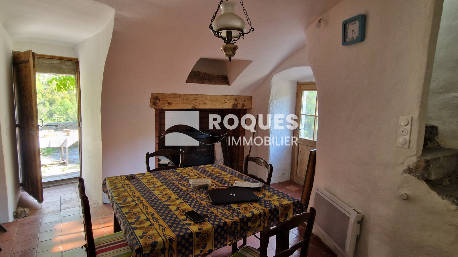 Au coeur du cirque de Navacelles avec situation et vue exceptionnelle, Maison de village de type 5, 82 m² habitables plus dépmendances, le tout sur terrain attenant de 683 m² et non attenant de 9 226 m², bon état général et comprenant :