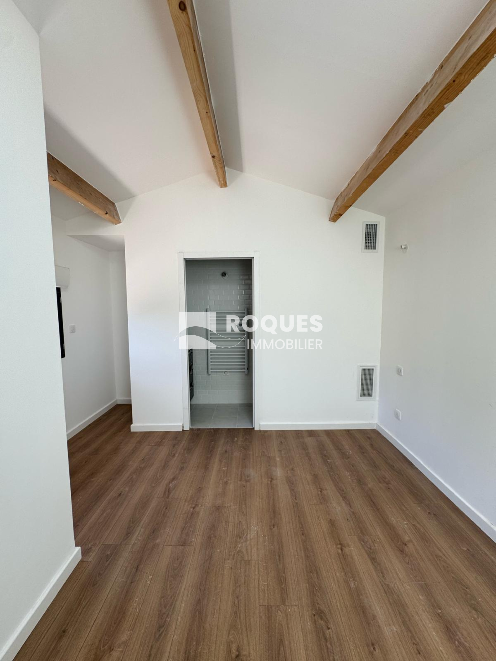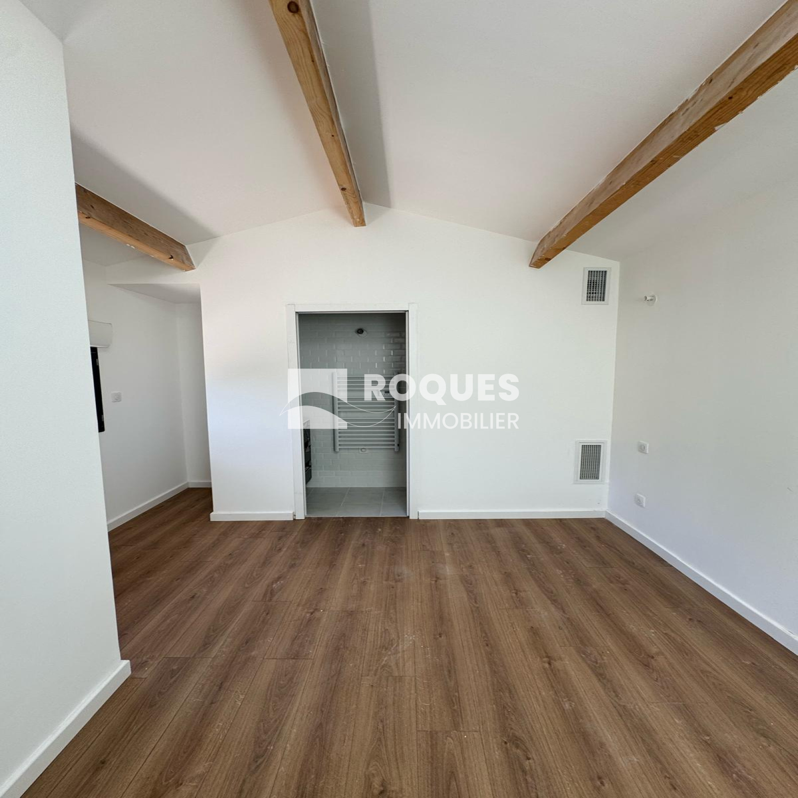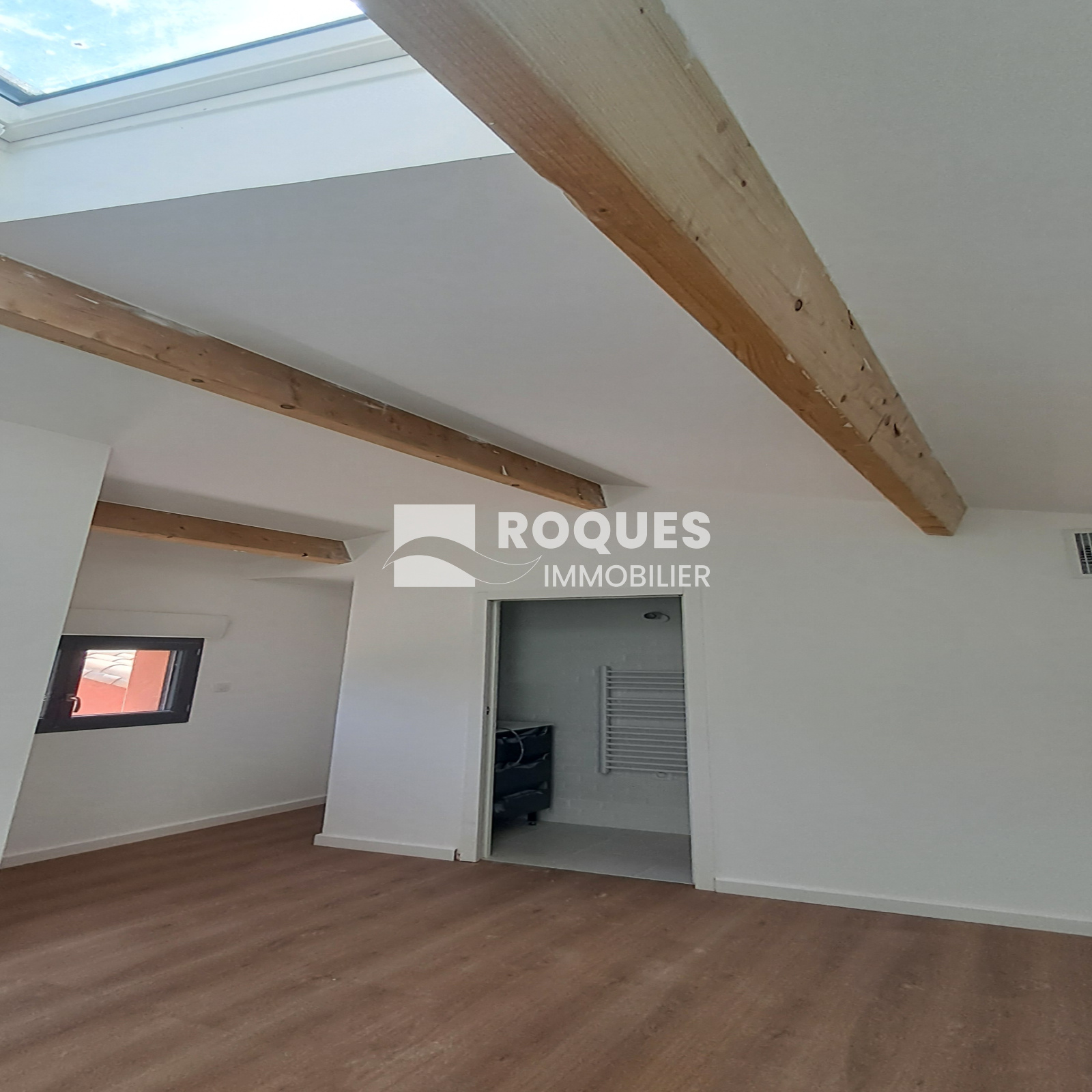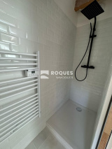 L'entrée s'effectue par un bel espace de 14 m² offrant une belle distribution des pièces. un point toilette, lavabo et placcard vous accueille, Vous entrez ensuite dans la grande pièce à vivre de 35,48 m² très ajourée, avec un accès direct à la terrasse extérieure. Cette pièce est separée de la cuisine de 20 m² par une grande verrière moderne. A l'arrière une grande chambre parentale de 14,22 m² vous propose un dressing de 5 m² et une jolie salle d'eau de 5,83 m². Une seconde chambre de 12,74 m² possède également sa propore salle d'eau de 2,44 m². De retour dans l'entrée on a sur le côté une buanderie de 5,60 m² avec un accès extérieur, et l'escalier qui déssert l'étage. A l'étage, sous les vélux et les poutres apparentes, on découvre un joli espace intimiste d'environ 9 m² avec sa petite salle d'eau de 1,89 m², pouvant faire office de troisième chambre.