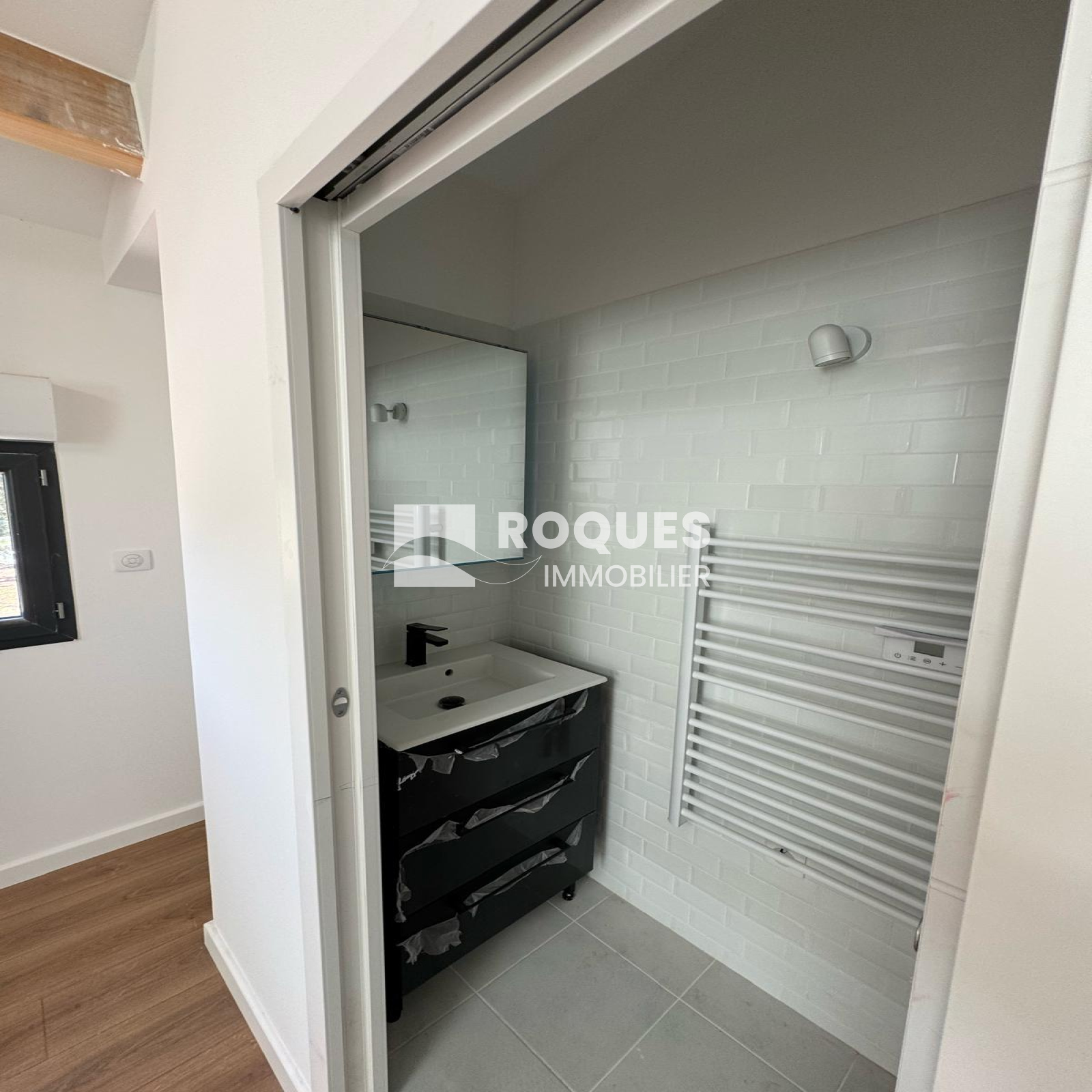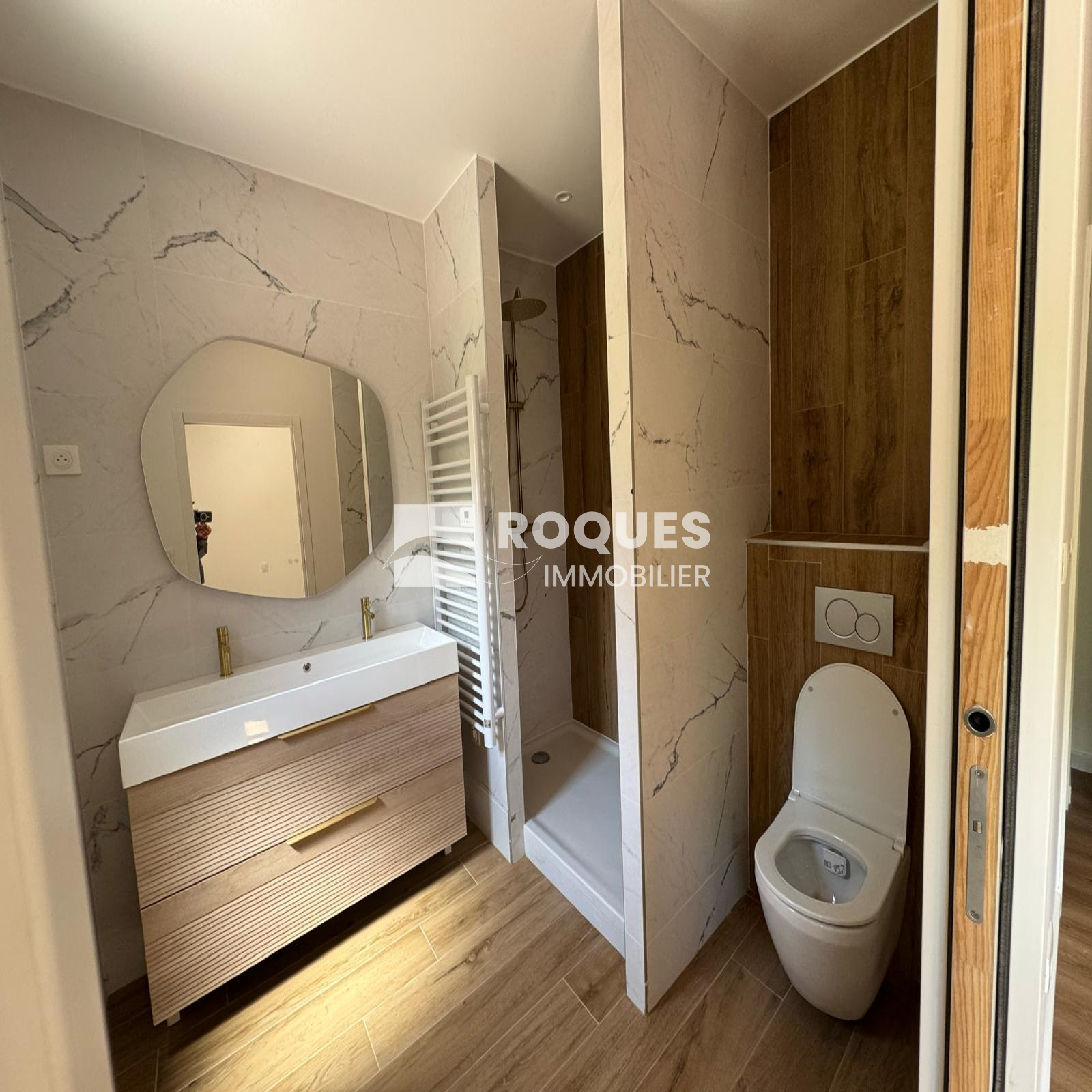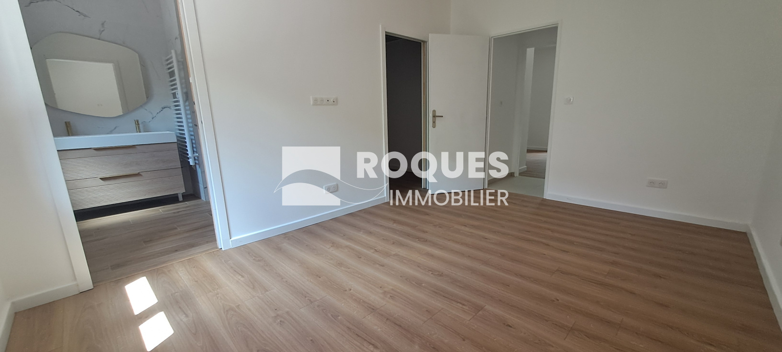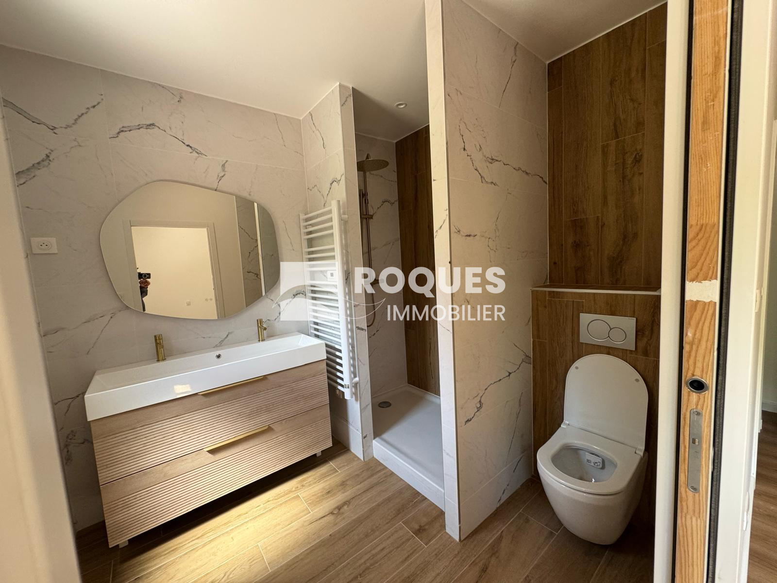 L'entrée s'effectue par un bel espace de 14 m² offrant une belle distribution des pièces. un point toilette, lavabo et placcard vous accueille, Vous entrez ensuite dans la grande pièce à vivre de 35,48 m² très ajourée, avec un accès direct à la terrasse extérieure. Cette pièce est separée de la cuisine de 20 m² par une grande verrière moderne. A l'arrière une grande chambre parentale de 14,22 m² vous propose un dressing de 5 m² et une jolie salle d'eau de 5,83 m². Une seconde chambre de 12,74 m² possède également sa propore salle d'eau de 2,44 m². De retour dans l'entrée on a sur le côté une buanderie de 5,60 m² avec un accès extérieur, et l'escalier qui déssert l'étage. A l'étage, sous les vélux et les poutres apparentes, on découvre un joli espace intimiste d'environ 9 m² avec sa petite salle d'eau de 1,89 m², pouvant faire office de troisième chambre.