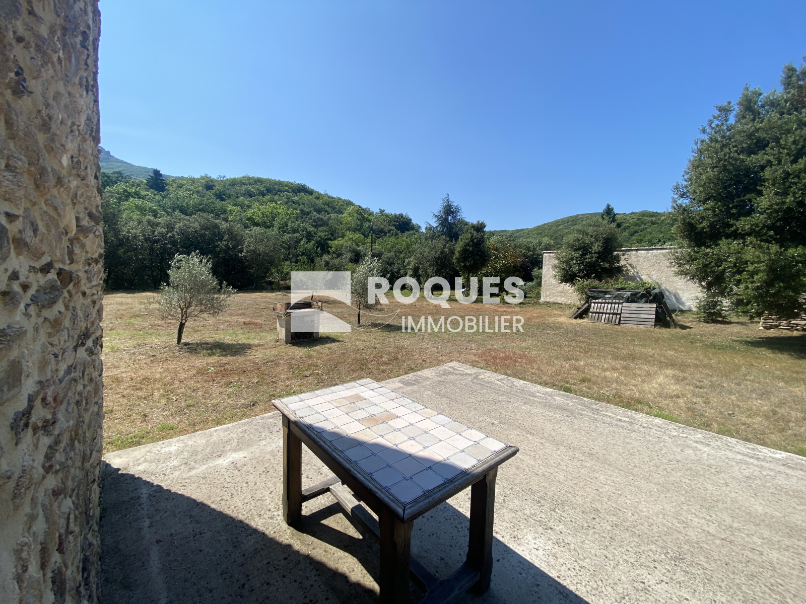 Il bénéficie d'une terrasse bétonnée de 30m², un garage indépendant de 17m² et un abri jardin de 8m².