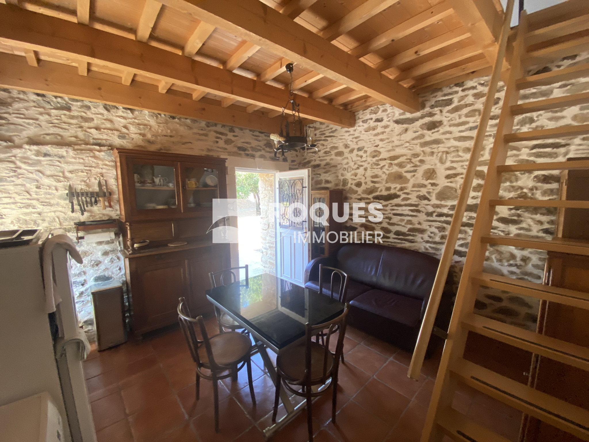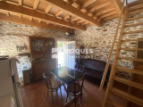 Le mazet comprend une cuisine / Séjour avec son poêle au rez-de-chaussée et une chambre avec salle d'eau et toilette à l'étage.
