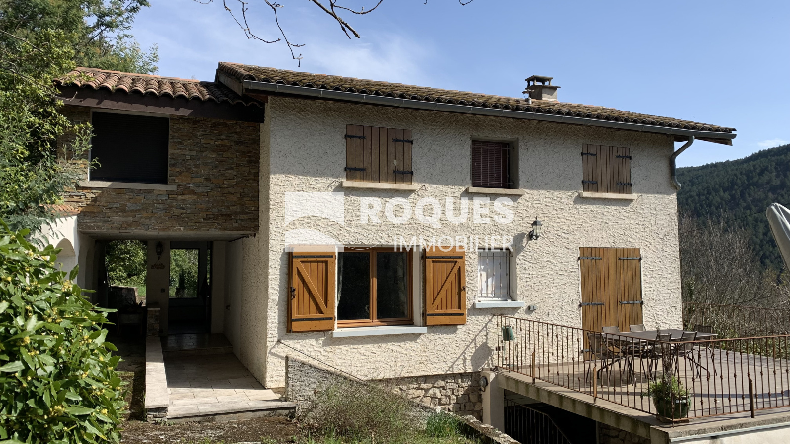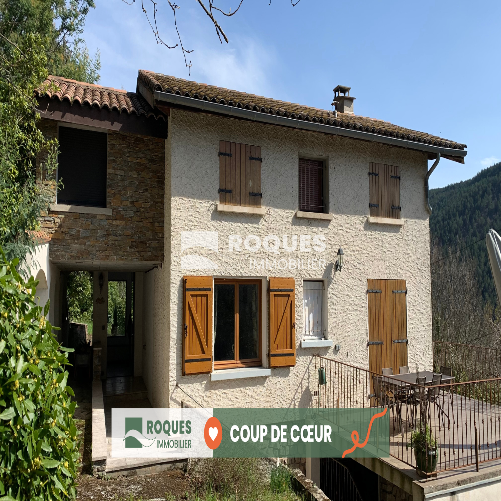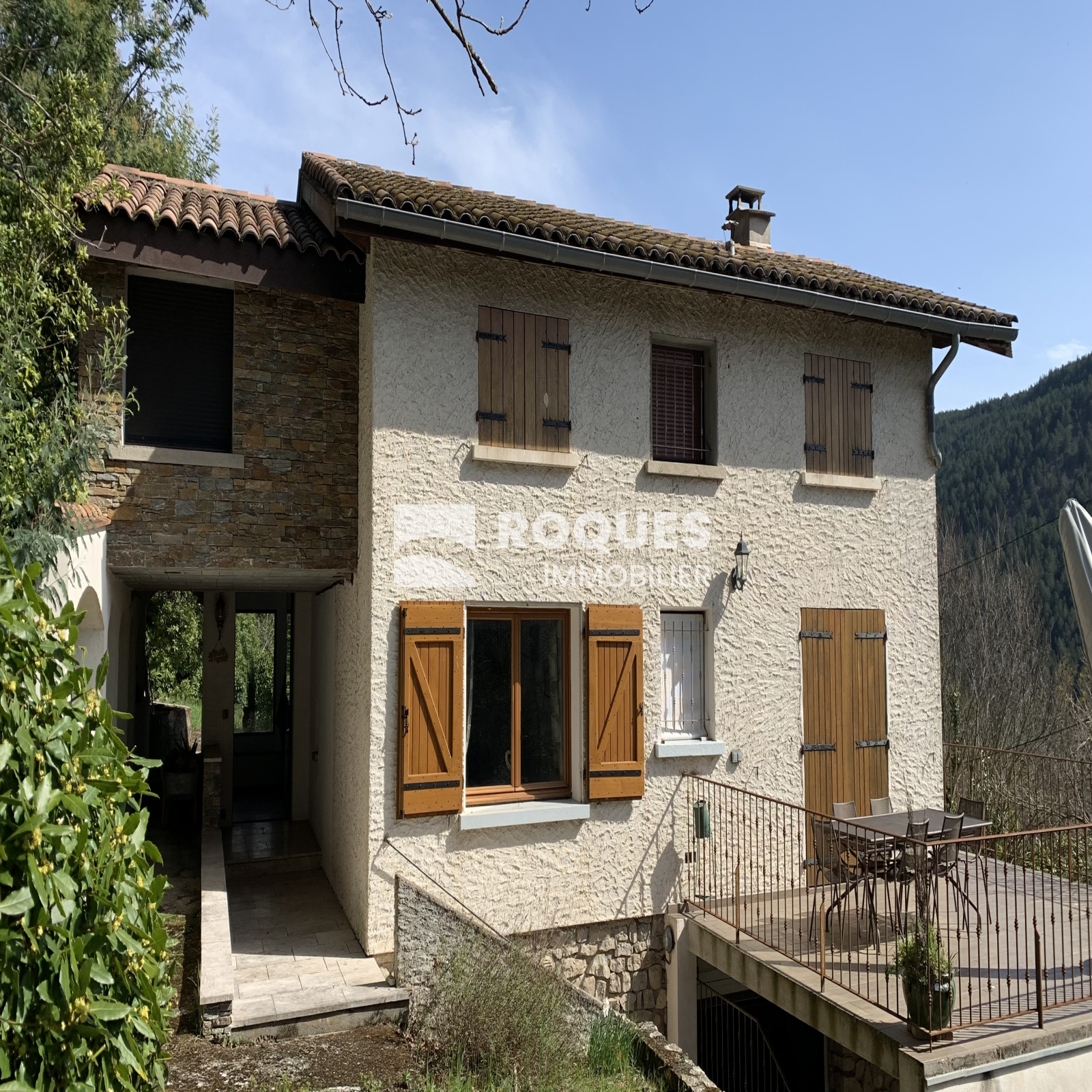 Dans un cadre verdoyant avec une vue sur la vallée, très belle villa de 140 m² entièrement restaurée depuis 10 ans avec matériaux de qualité.
