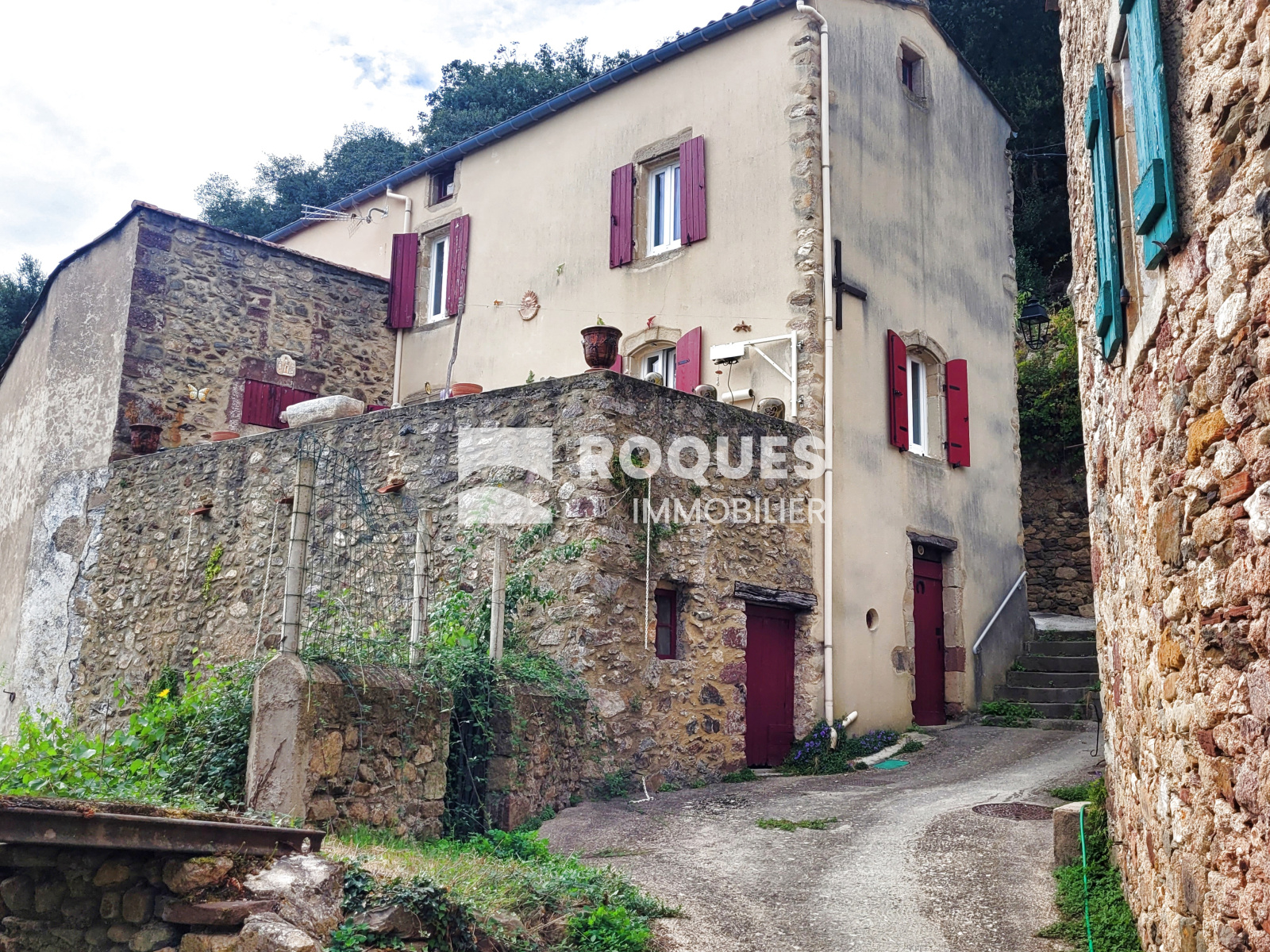 Le Bousquet d'orb, hameau de Cazilhac, maison de village de 75m² habitables, surélevée de 2 étages au dessus de caves voutées.