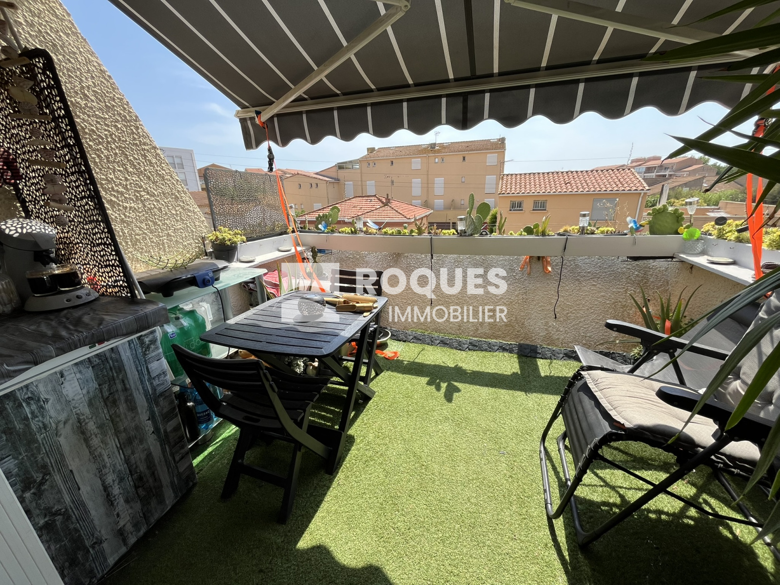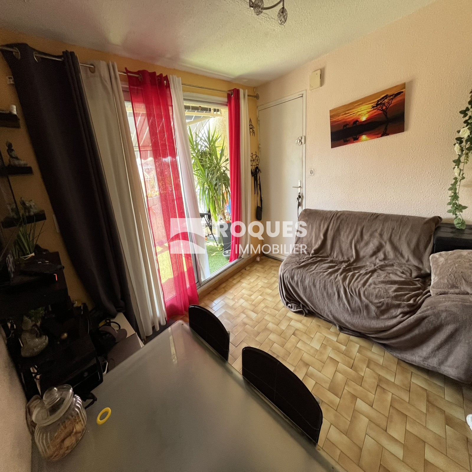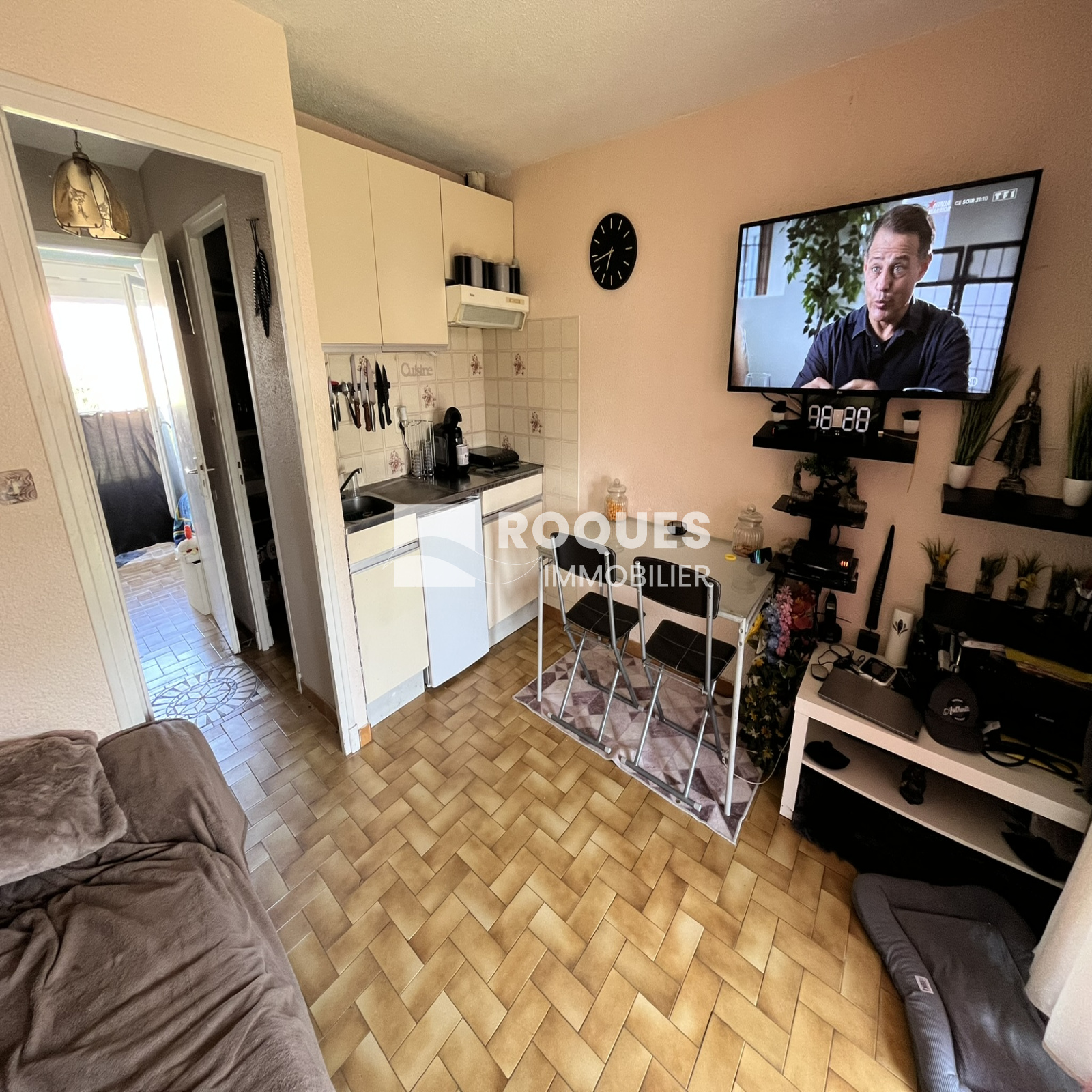 Valras-Plage, en front de mer, à vendre bel appartement T2 de 23.28 m² composé d'un séjour avec coin cuisine, un dégagement, un placard, une chambre, une salle d'eau avec toilette et une terrasse.