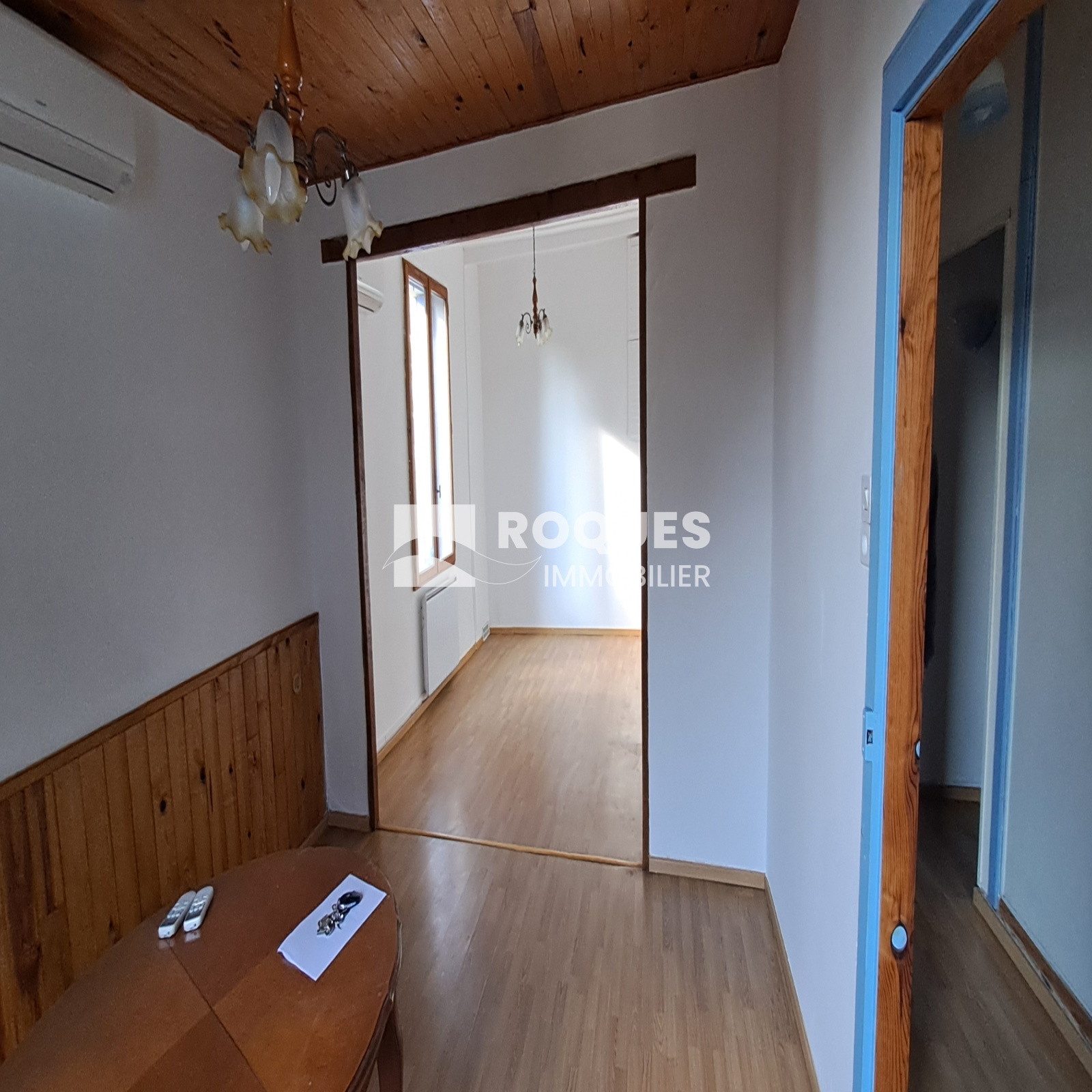 Un couloir dessert un salon / salle à manger de 32 m², une cuisine renovée et fonctionnelle de 9m², deux chambres de 16m² et 9 m² et une salle d'eau de 9m², plus un wc indépendant.. L'entée est abritée par une petite véranda de 3 m².