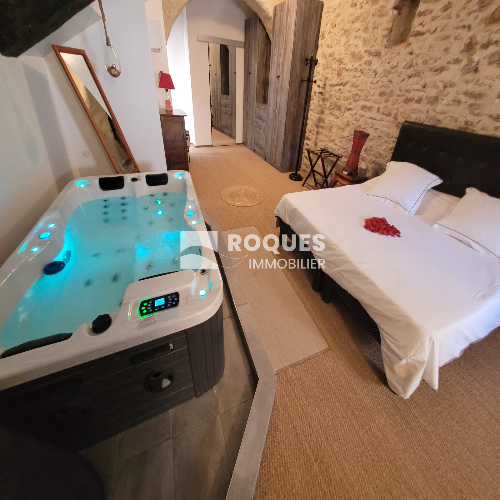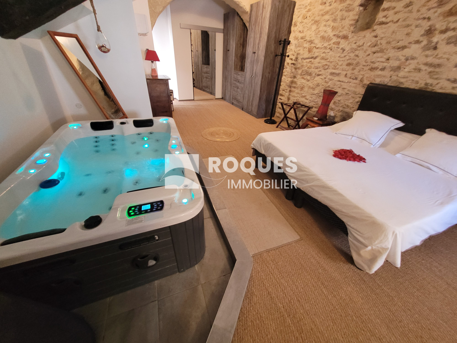 1er etage: Bureau-chambre 20 m², salon -salle à manger 40 m², WC 2 m², Grande chambre parentale avec jacuzzi 40 m², salle d'eau attenante 6 m², piece avec sauna 6 m², terrasse extérieure 8 m².