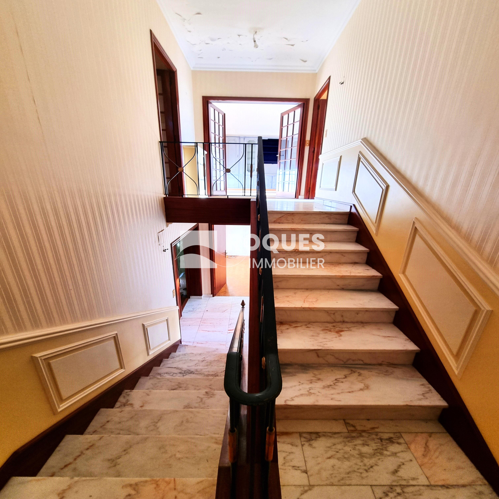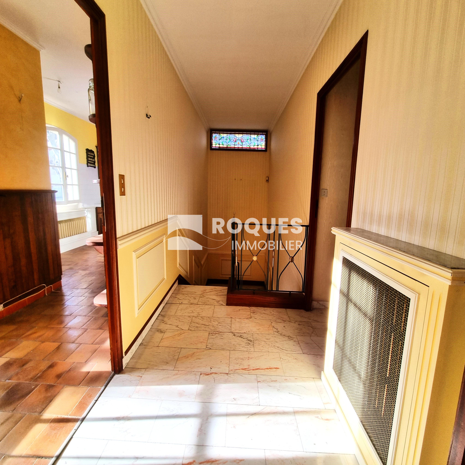 Idéalement située en plein centre-ville, cette maison de 145m² habitables construite dans les années 70 séduit par son charme d’époque et offre l’opportunité unique de marier le caractère ancien à un aménagement moderne. Ses volumes généreux, ses matériaux nobles comme le marbre et le parquet en chêne massif, ainsi que ses détails originaux tels que les moulures au plafond, la rampe en fer forgé et le vitrail surplombant l'escalier, permettent de préserver l’authenticité des lieux tout en y intégrant une touche contemporaine.