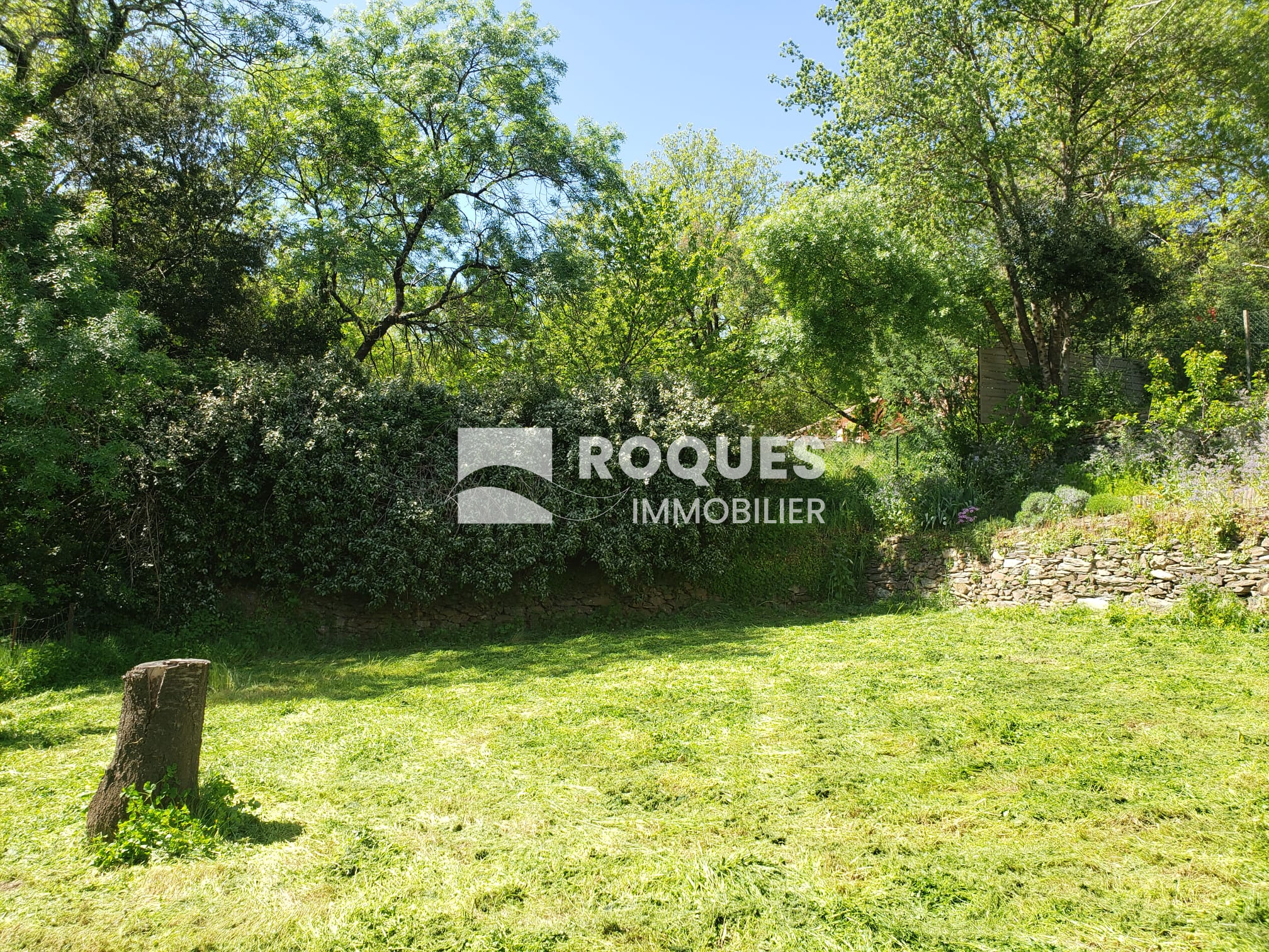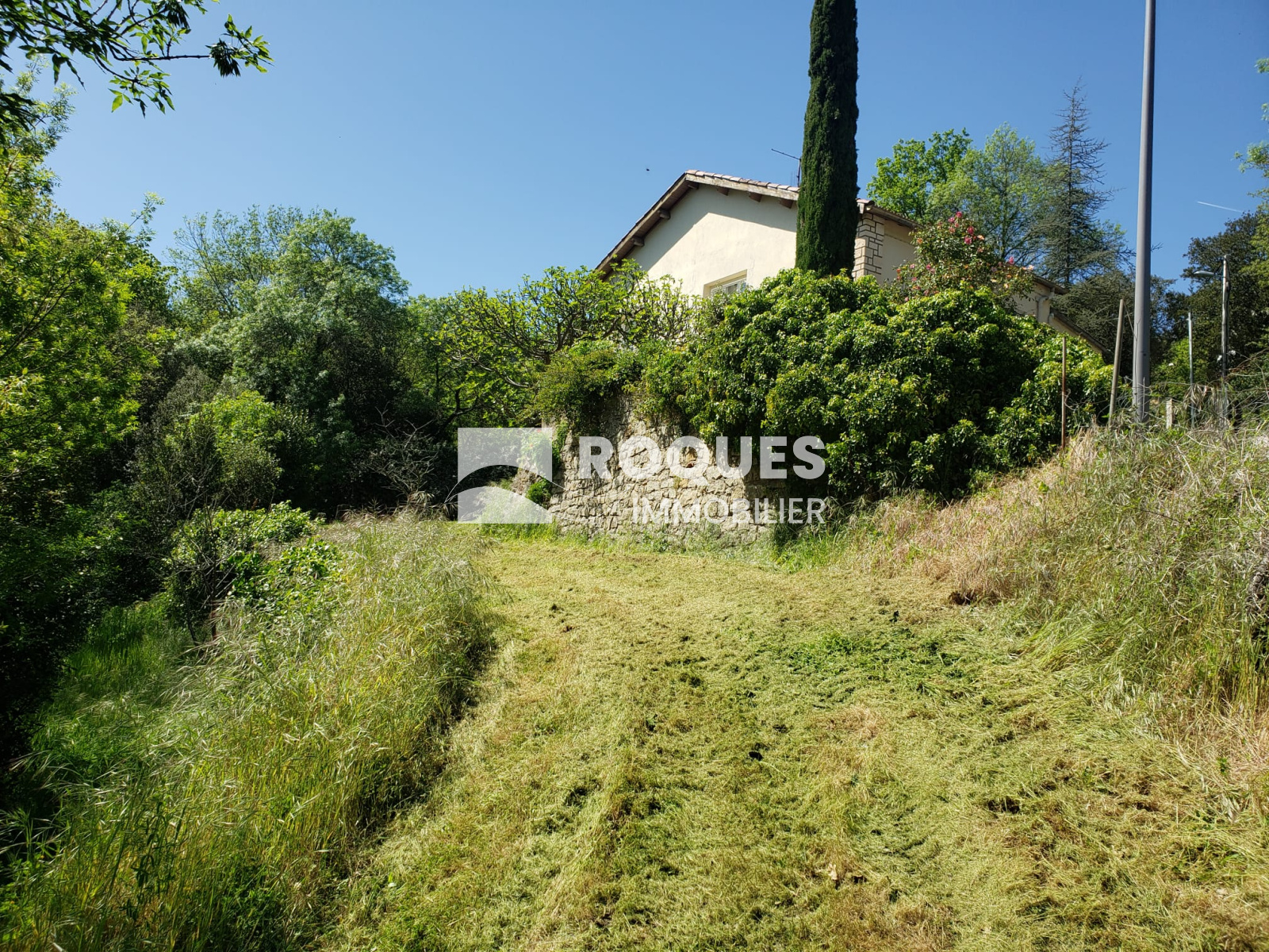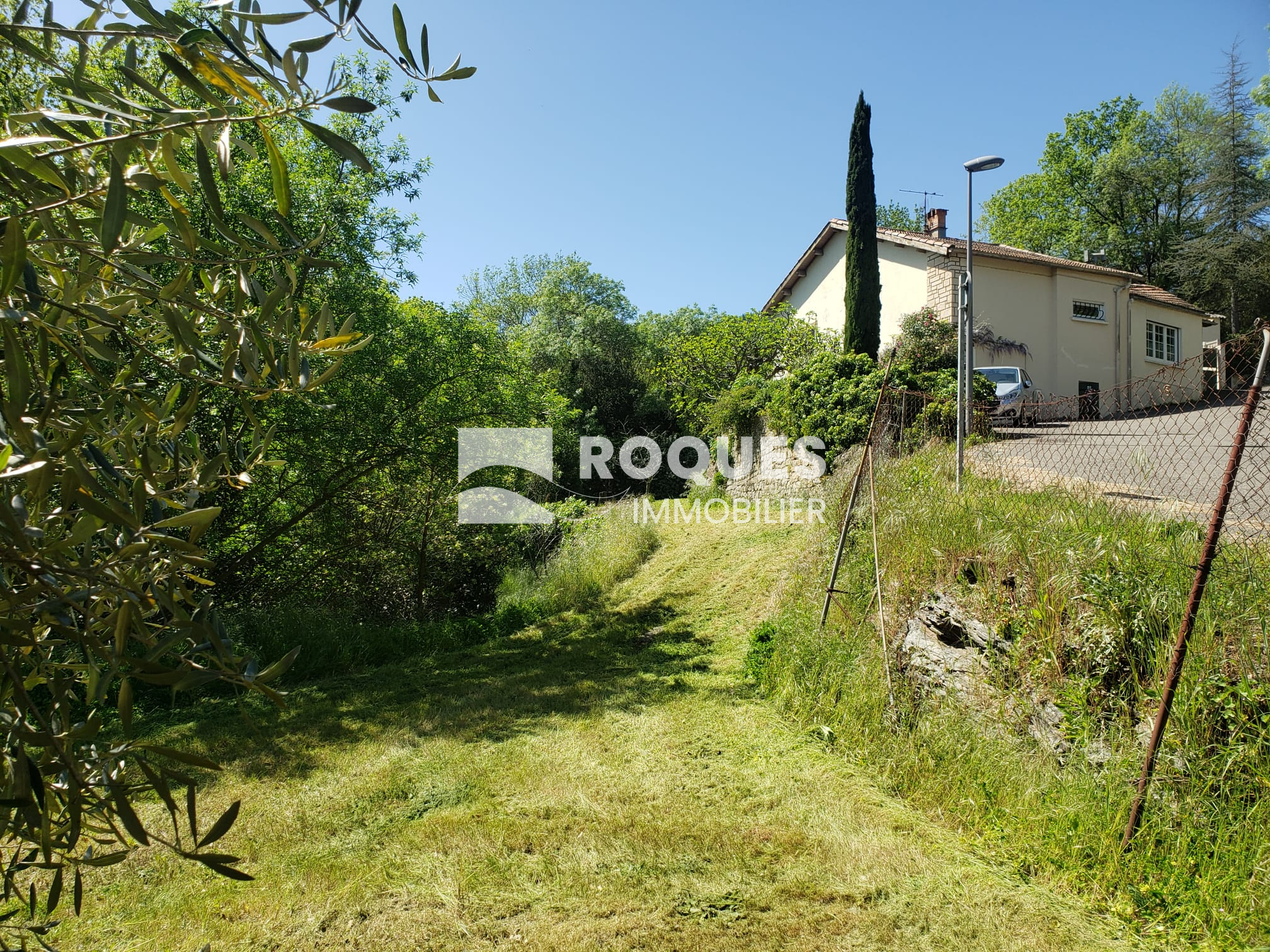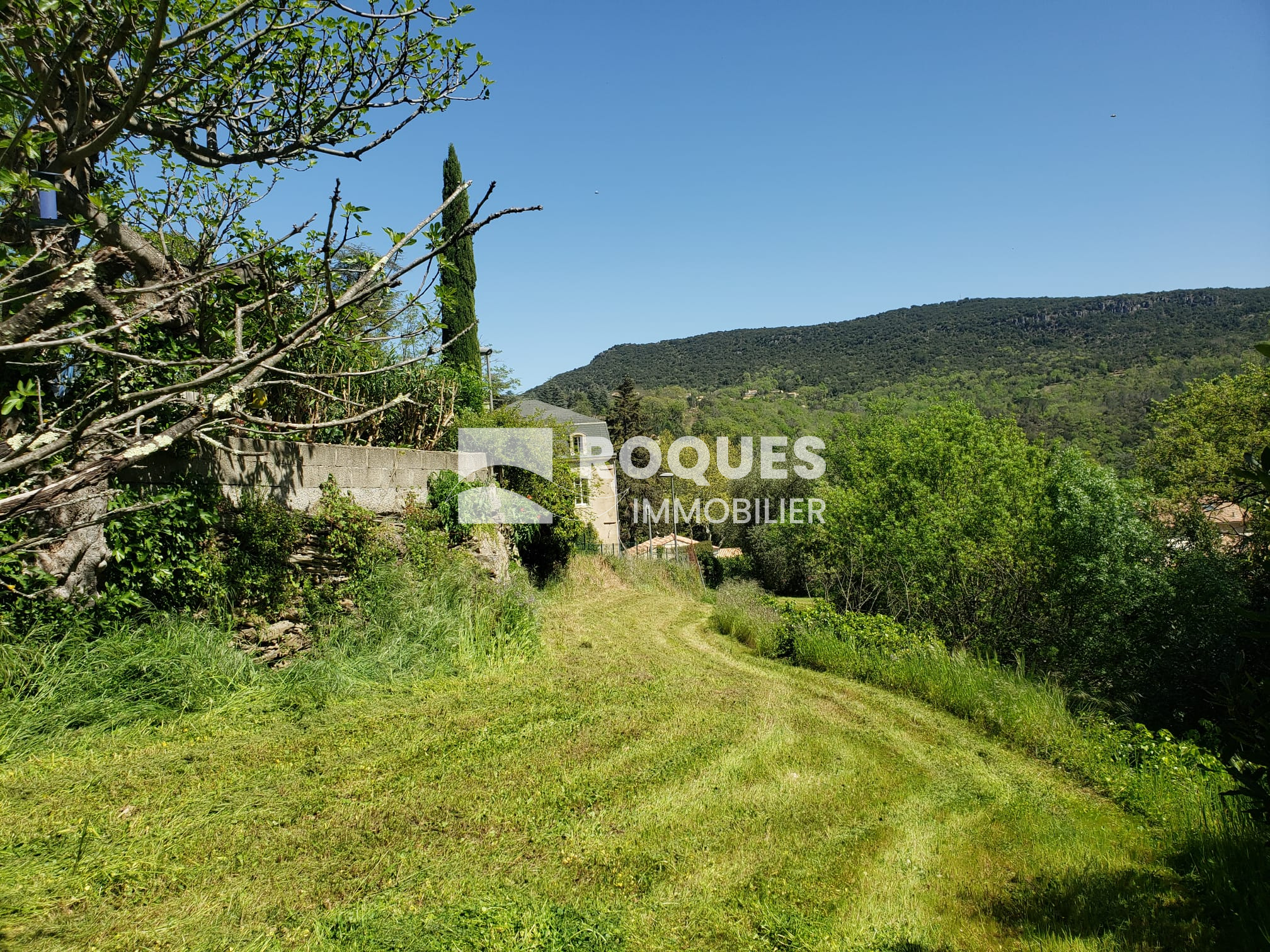 Le terrain arboré est situé dans un quartier calme, en retrait de la route et à 5 min du centre ville de LAMALOU LES BAINS.