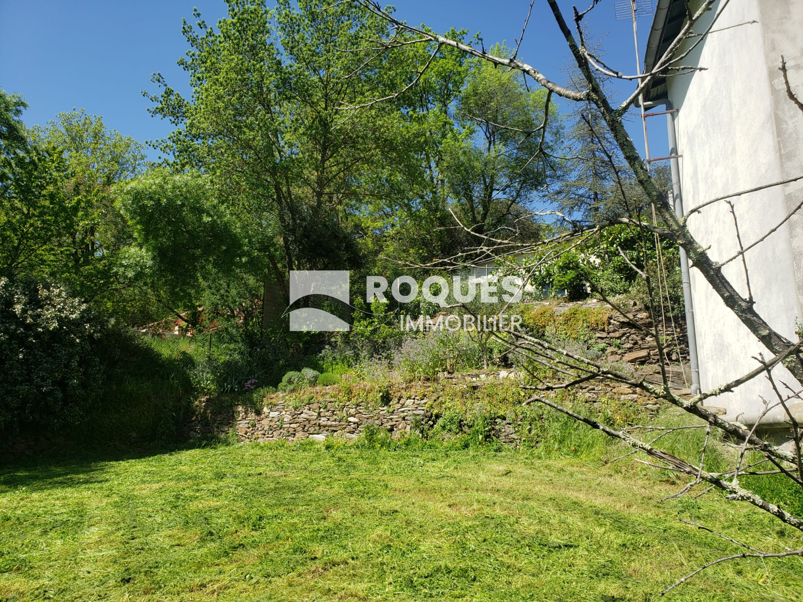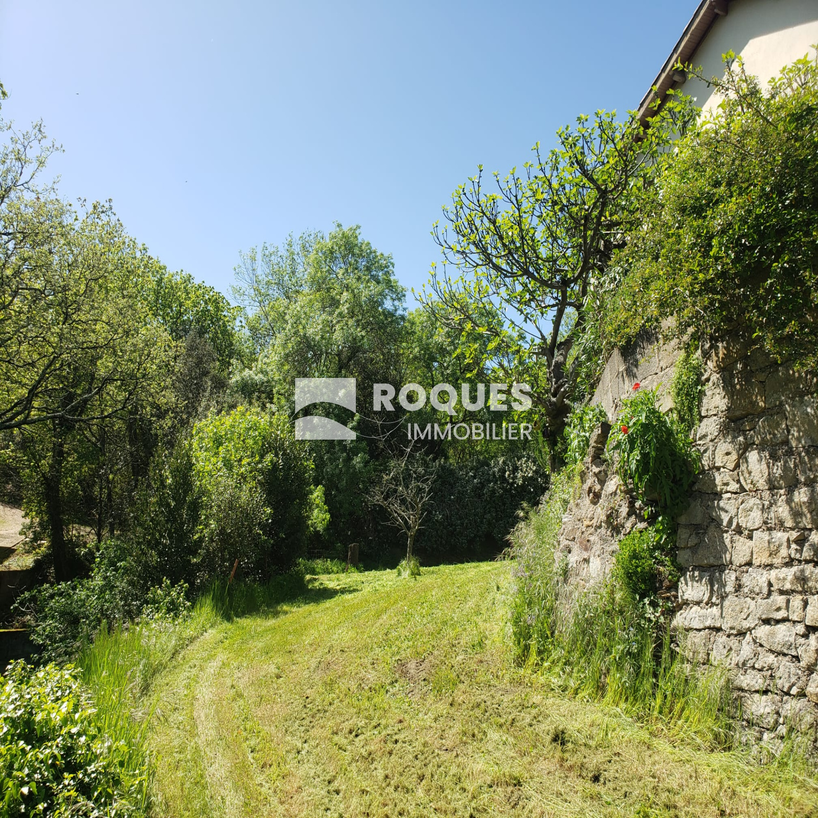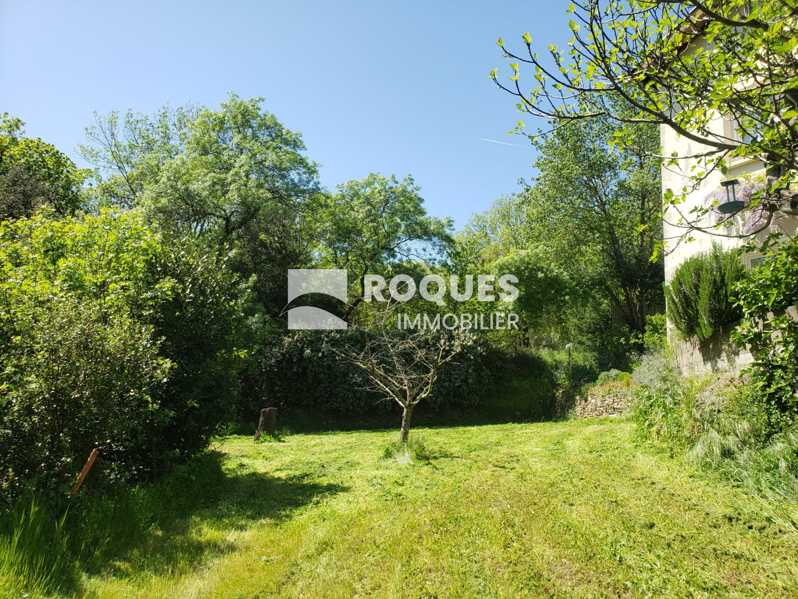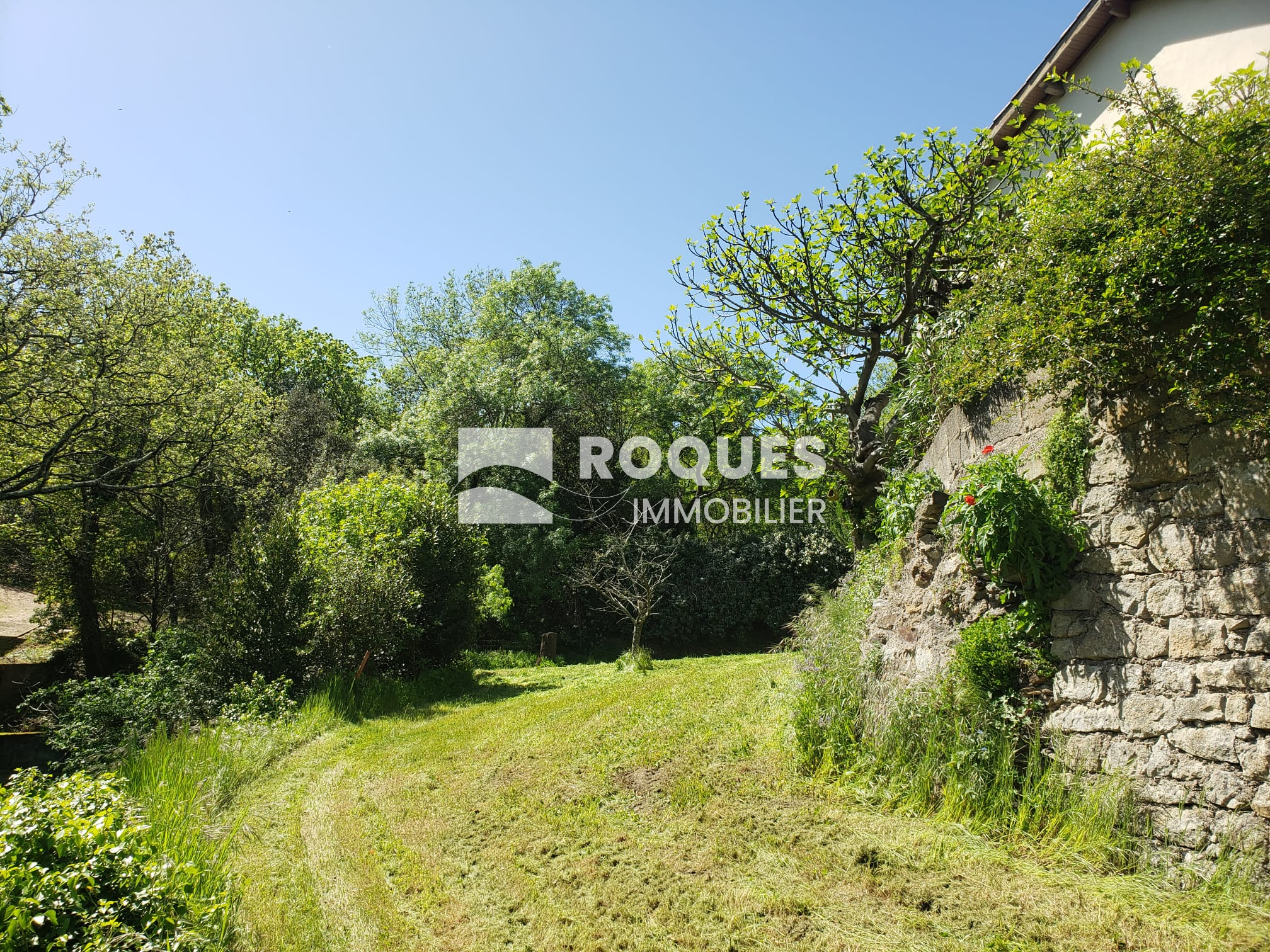 Le terrain arboré est situé dans un quartier calme, en retrait de la route et à 5 min du centre ville de LAMALOU LES BAINS.