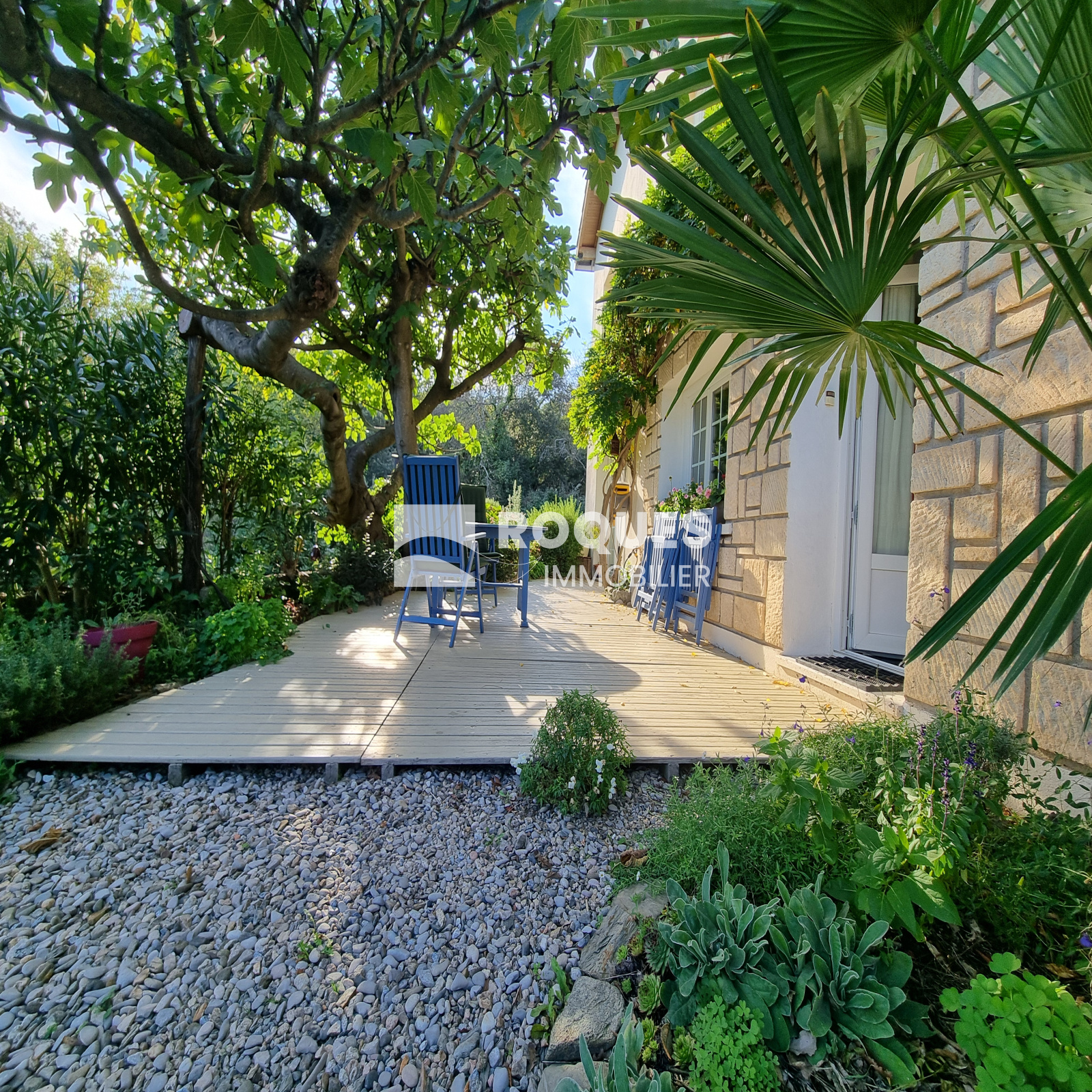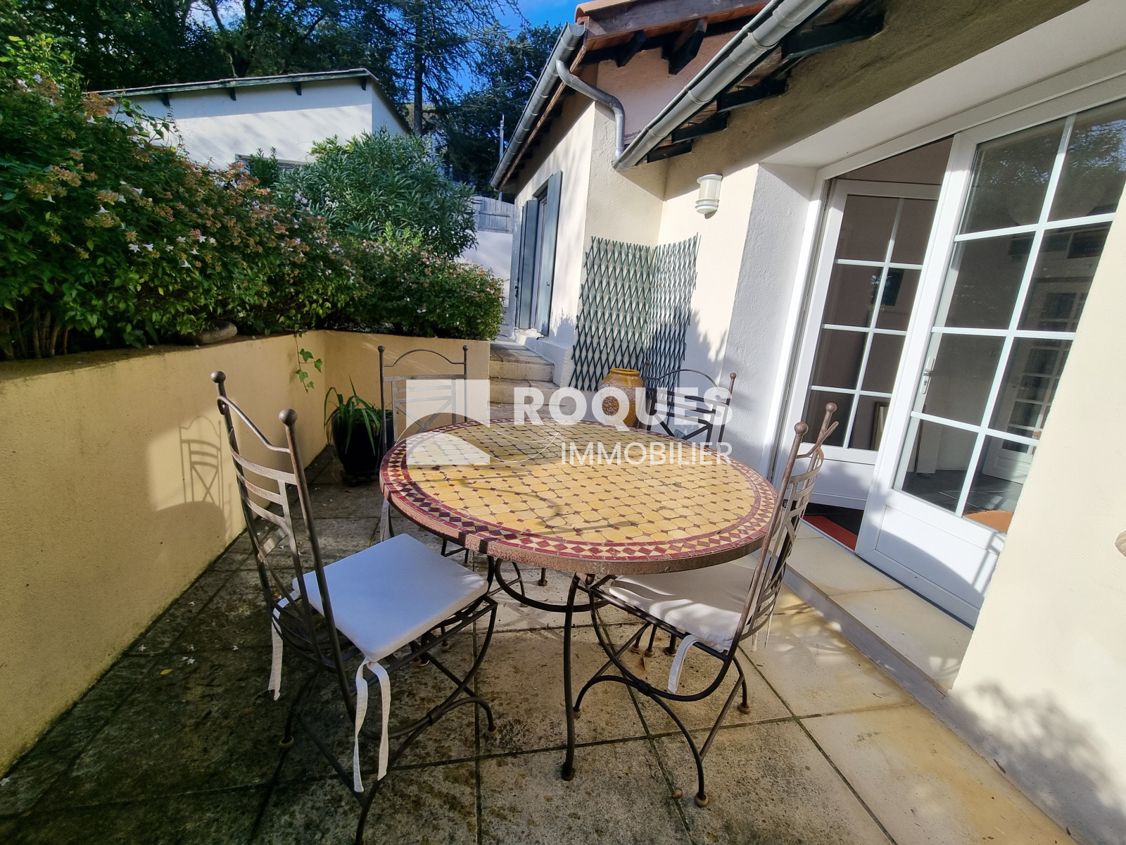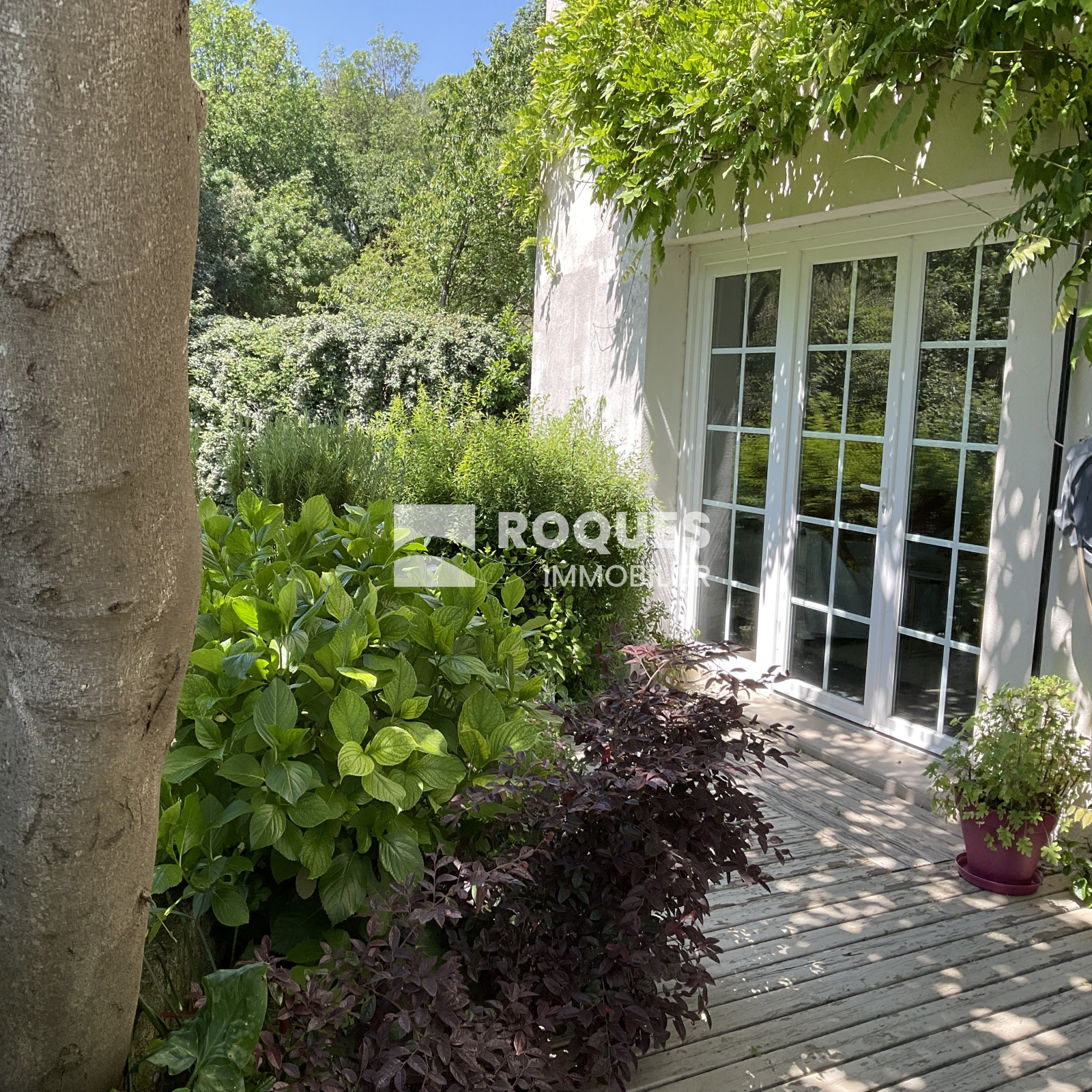 Dès l'accès à la propriété, vous profiterez d'un petit jardin et d’une terrasse sans aucun vis à vis, ombragée et aménagée avec vue sur les montagnes environnantes.