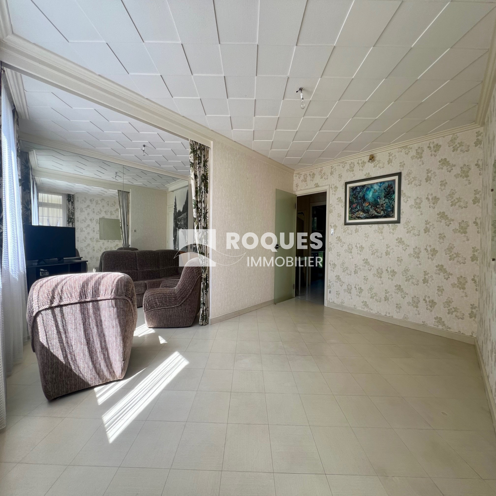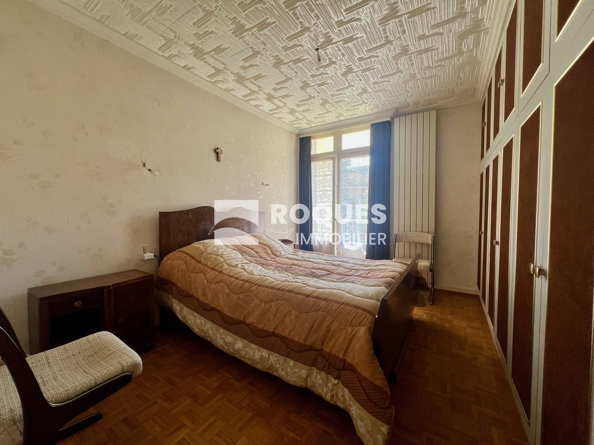 Il se compose d'une entrée avec placards, d'une cuisine équipée donnant sur une loggia, d'un salon/séjour avec accès au balcon, de deux chambres, d'une salle d'eau ainsi que d'un WC séparé. Il dispose également d'une cave au sous-sol.