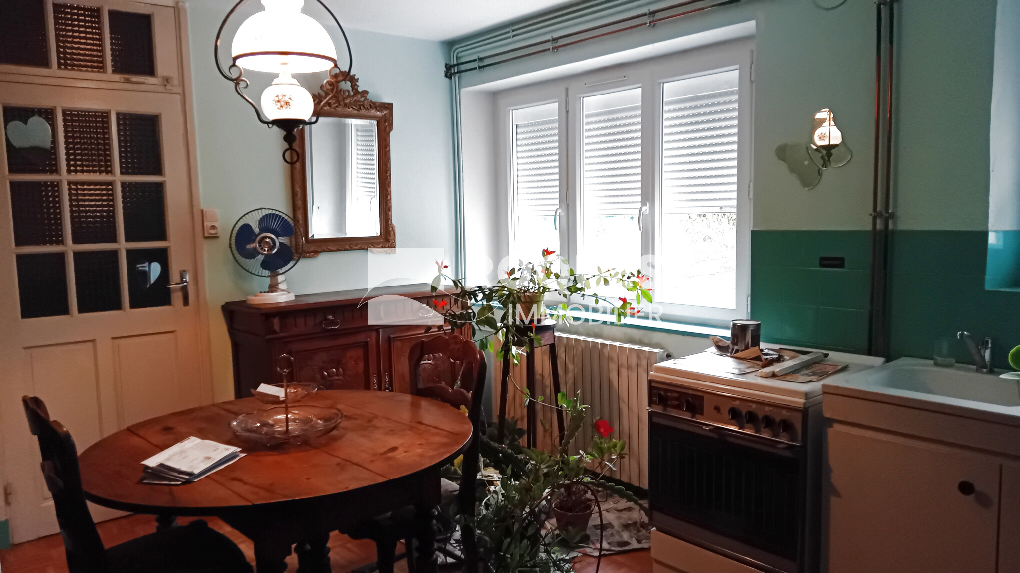 A l'étage, vous trouverez une cuisine ouverte sur le séjour, deux chambres, une salle de bain, un wc et un dégagement.