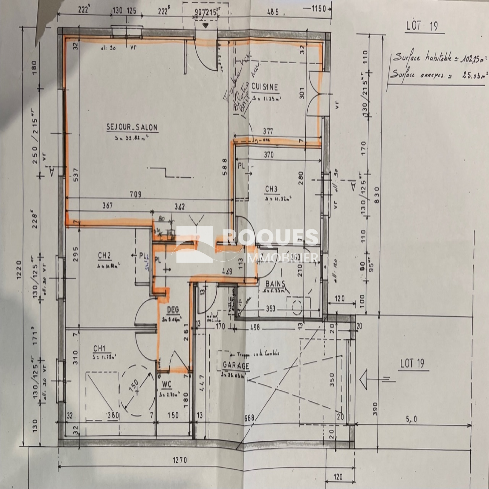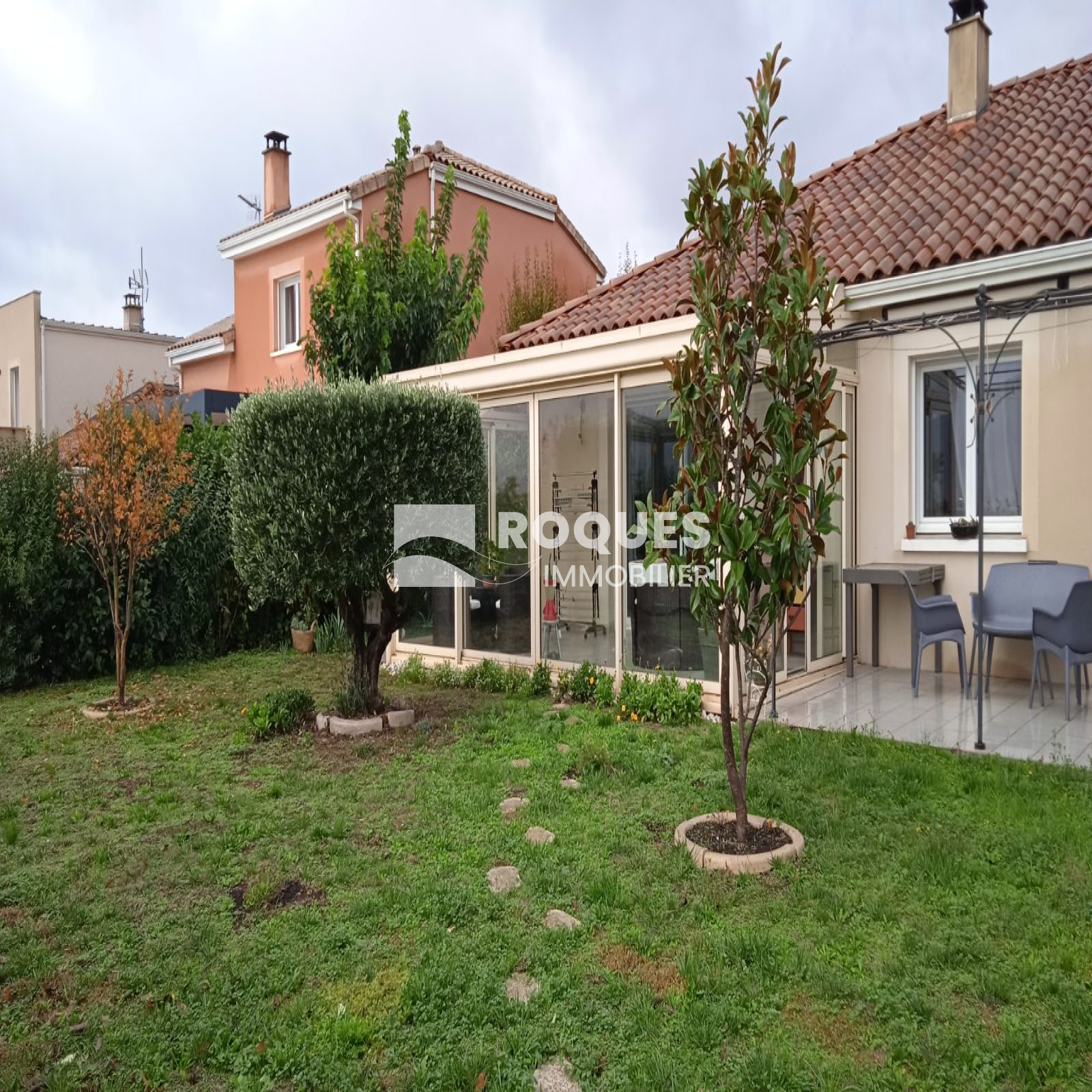 Elle posède un garage voiture de 25 m² et un jardin arboré de 450 m².