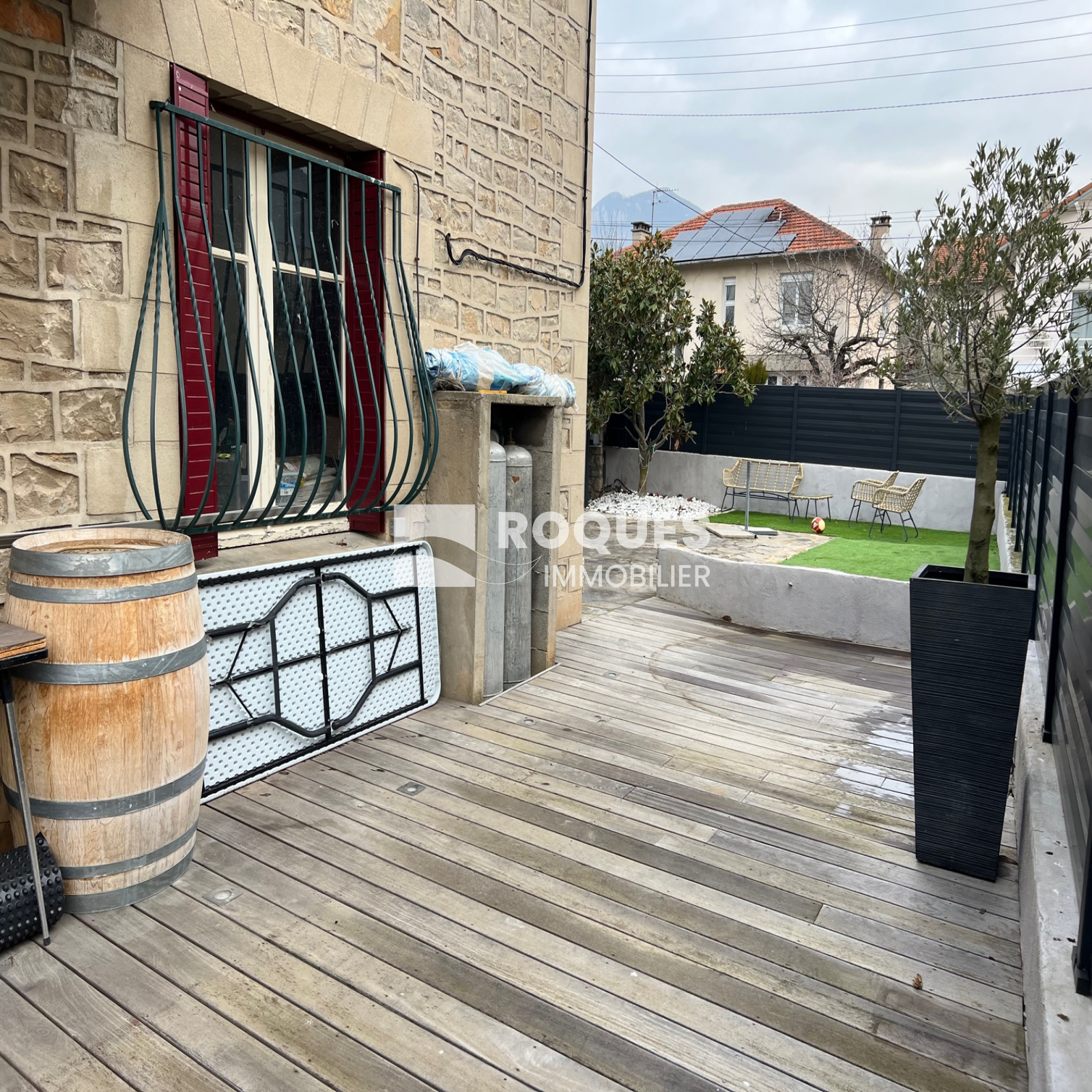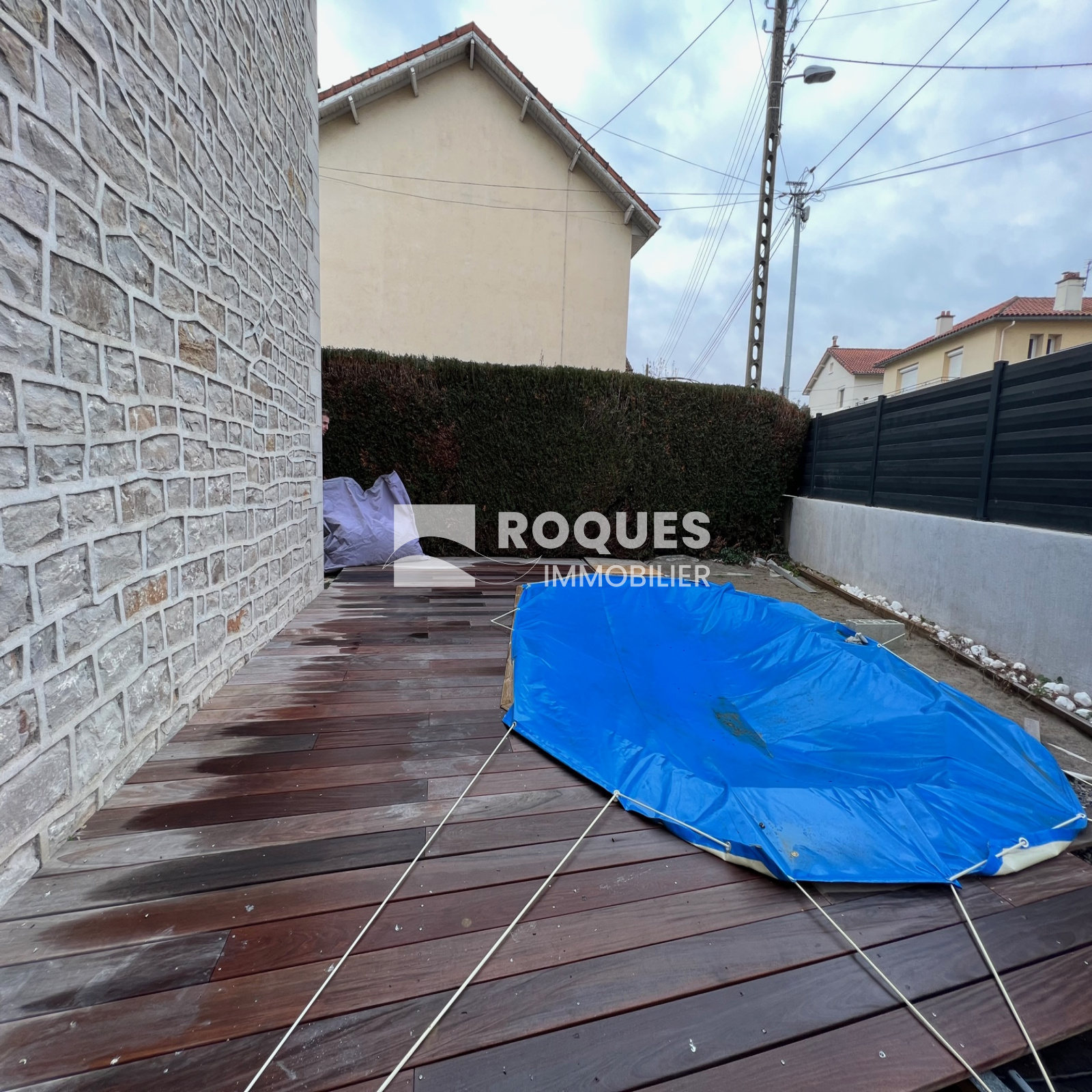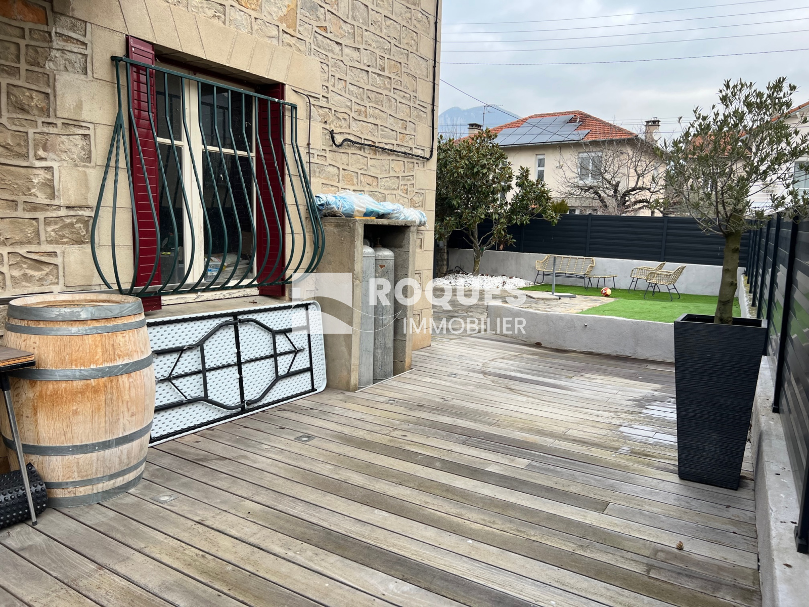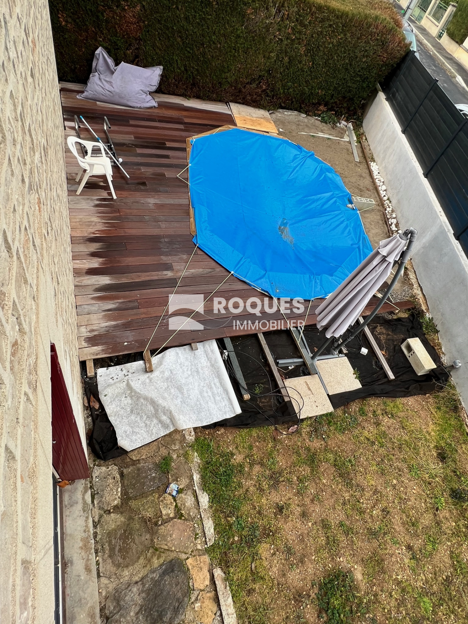 Le tout sur un terrain aménagé avec d'un côté, une piscine et de l'autre une terrasse en bois.