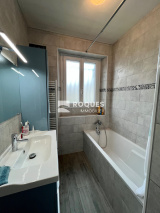 Elle comprend à l'étage, un espace de vie de 34 m² avec cuisine ouverte, 3 chambres, une salle de bain et wc. Les combles sont isolées et aménageable.
