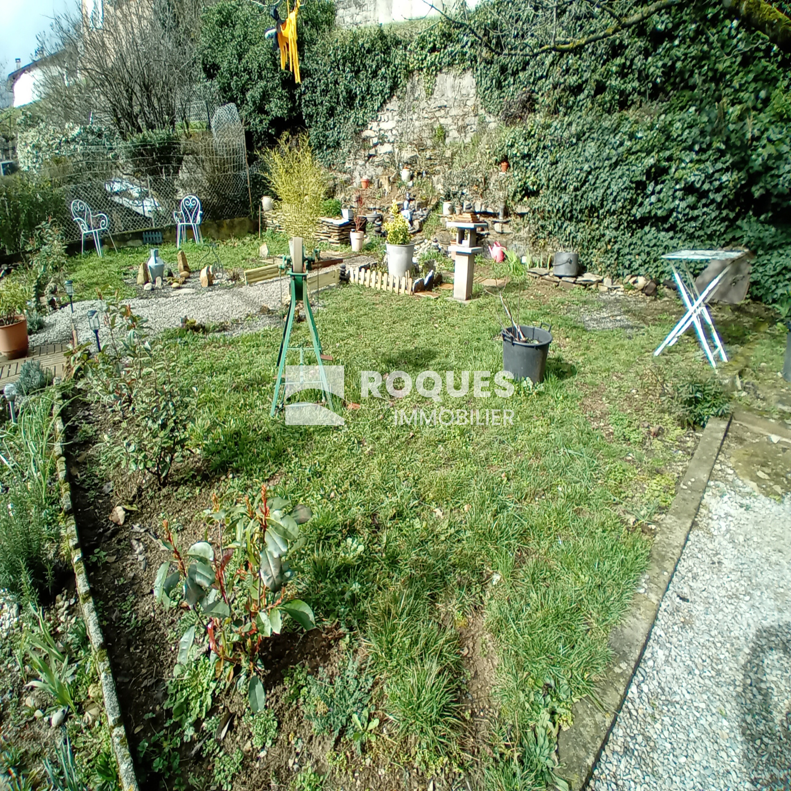 Au rez-de-chaussée, vous trouverez une chambre, une pièce indépendante, une chaufferie-buanderie, un WC ainsi qu'un grand garage.