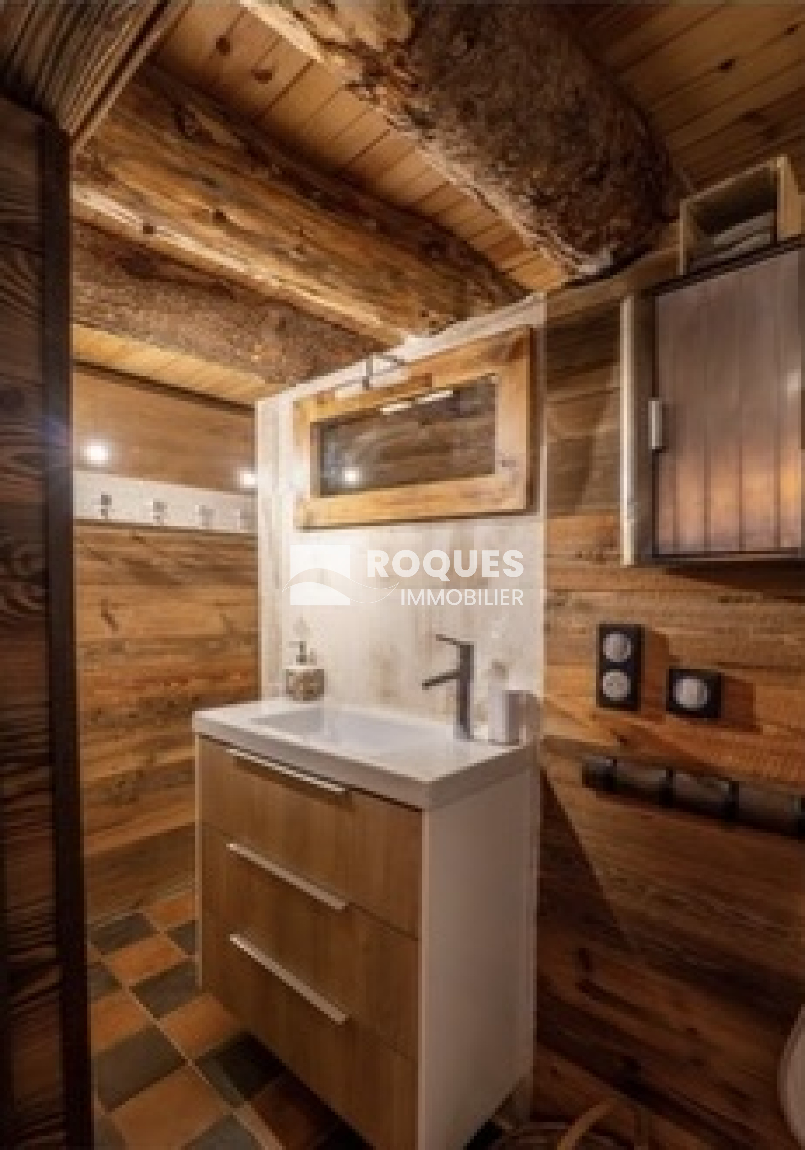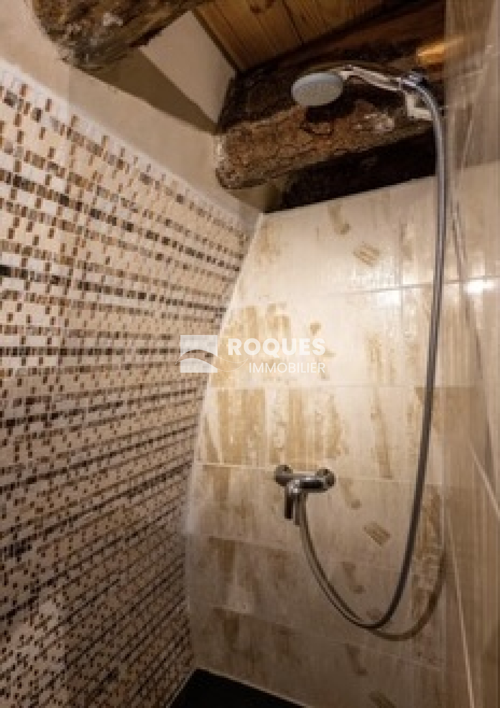 Elle dispose d'une chambre en mezzanine, d'une pièce à vivre spacieuse, d'une salle d'eau moderne avec douche à l'italienne, et d'une cuisine aménagée.