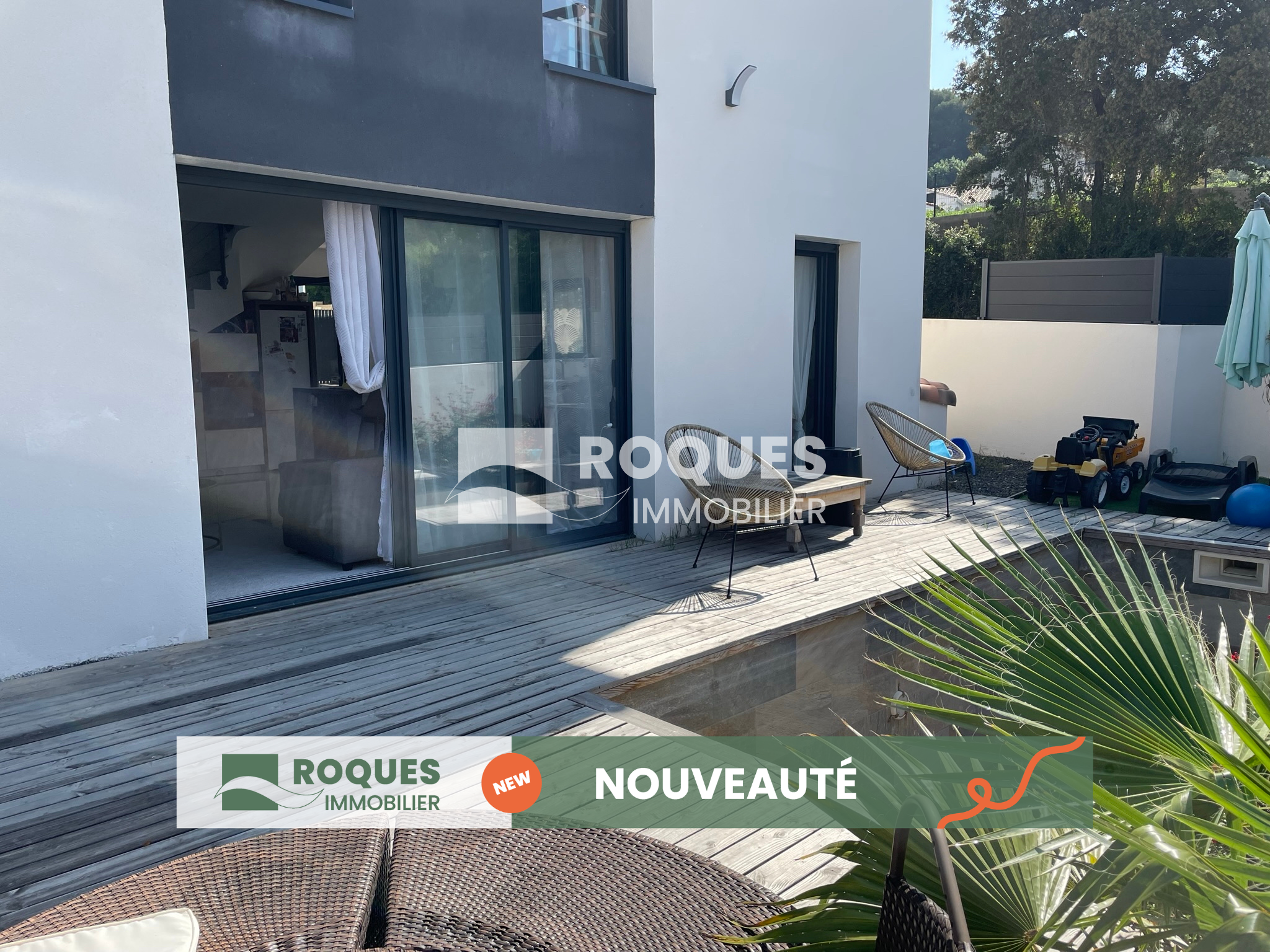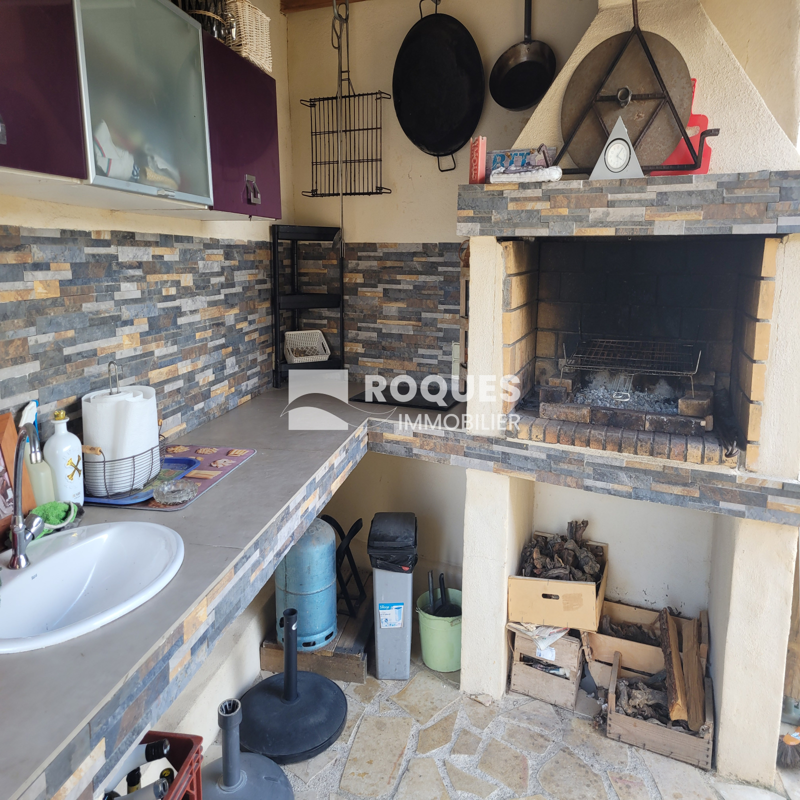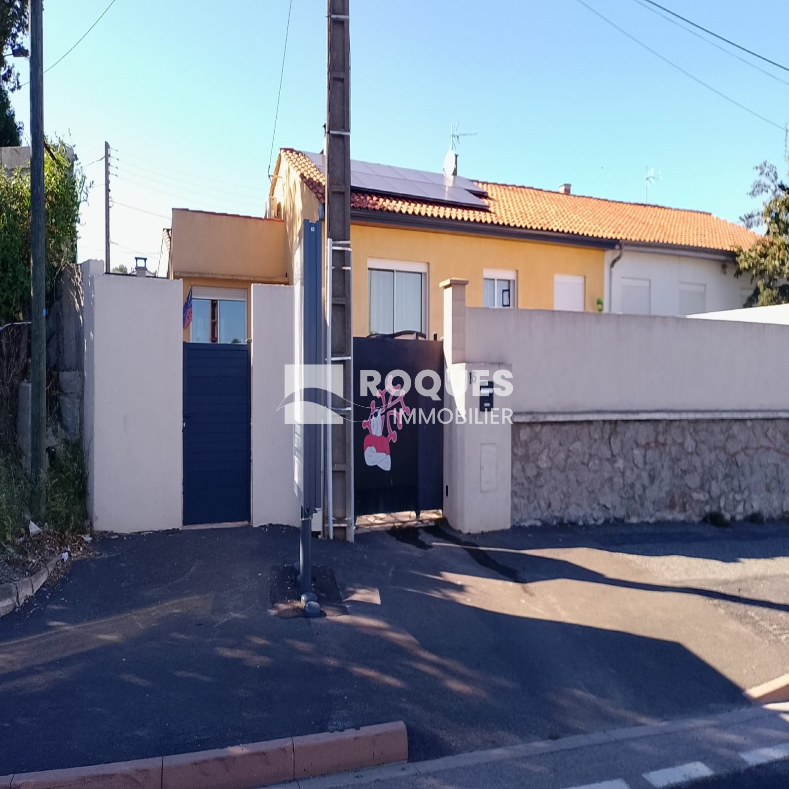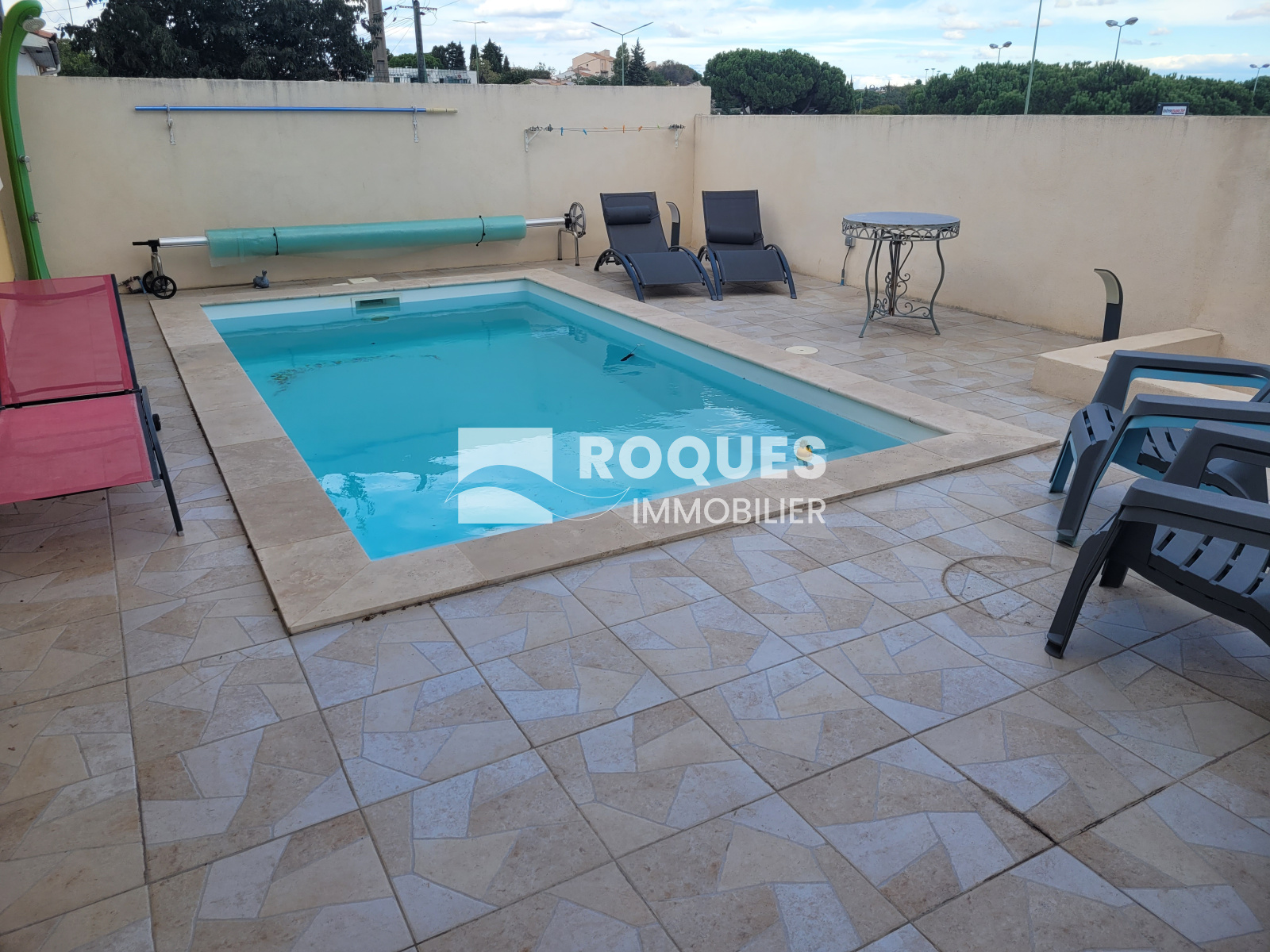A Beziers, belle villa de plain pieds de type pavillon d'environ 90 m² habitables, mitoyenne sur un coté avec piscine , cuisine d'été et terrasses .