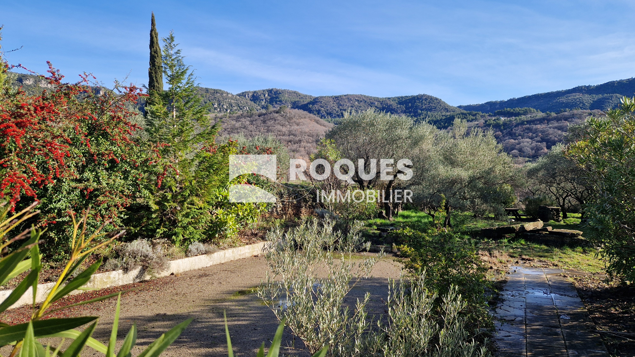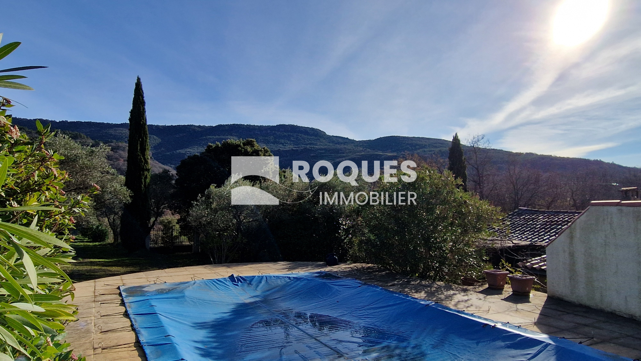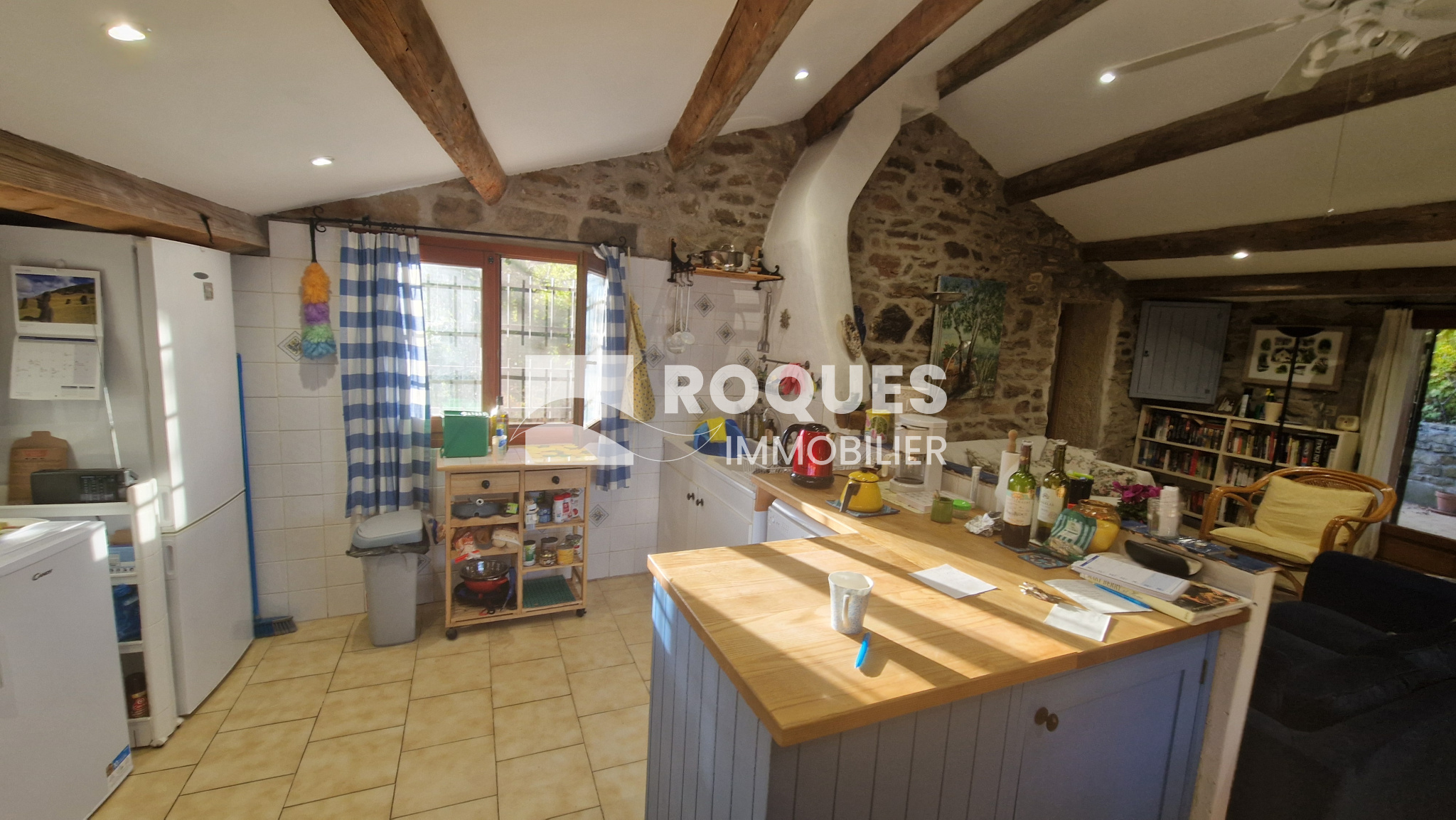 15 minutes Est Lodève, maison en pierre indépendante, 2 niveaux, de type 5, 109 m² habitables, sur terrain attenant et non attenant de 2235 m², le tout en bon état et comprenant :
